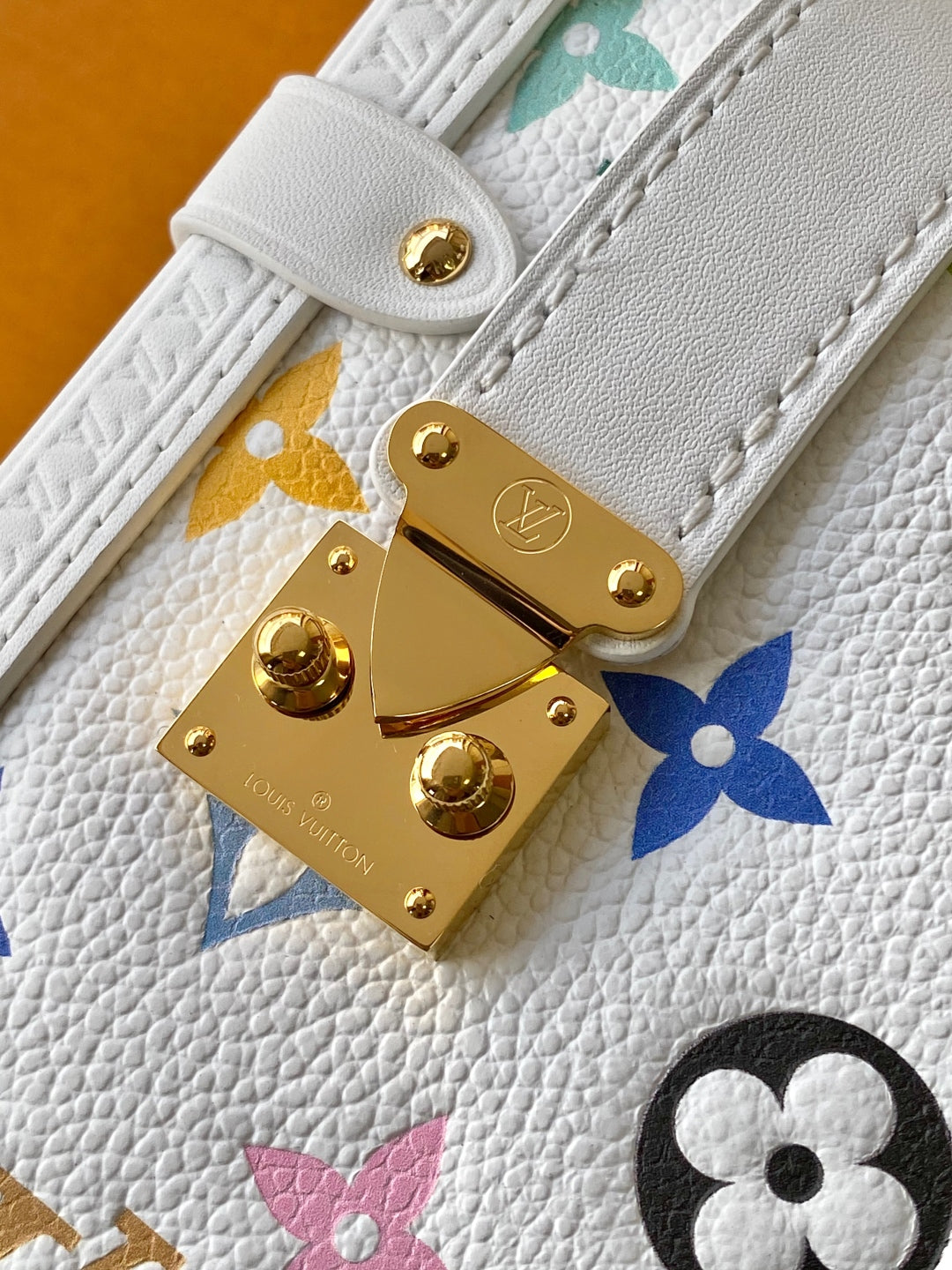 LV 25S SIDE TRUNK MM BAG 23 IN WHITE CALFSKIN GOLD HARDWARE