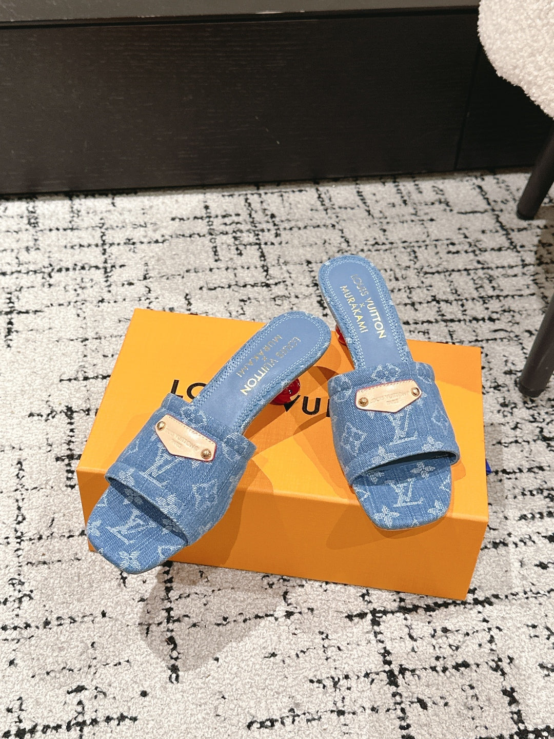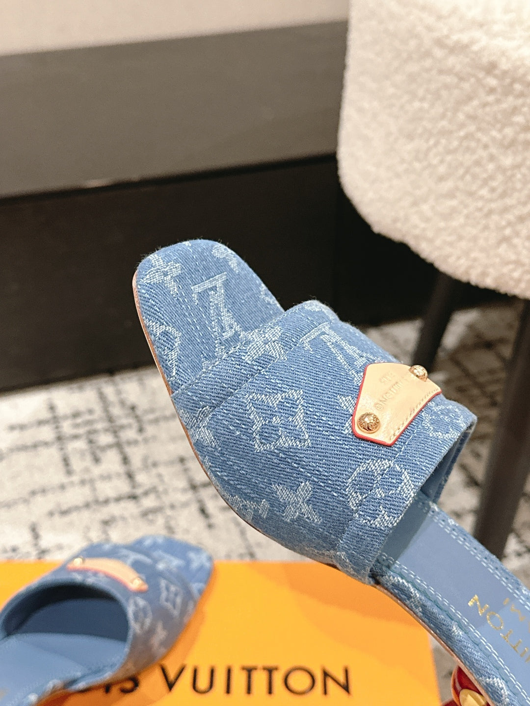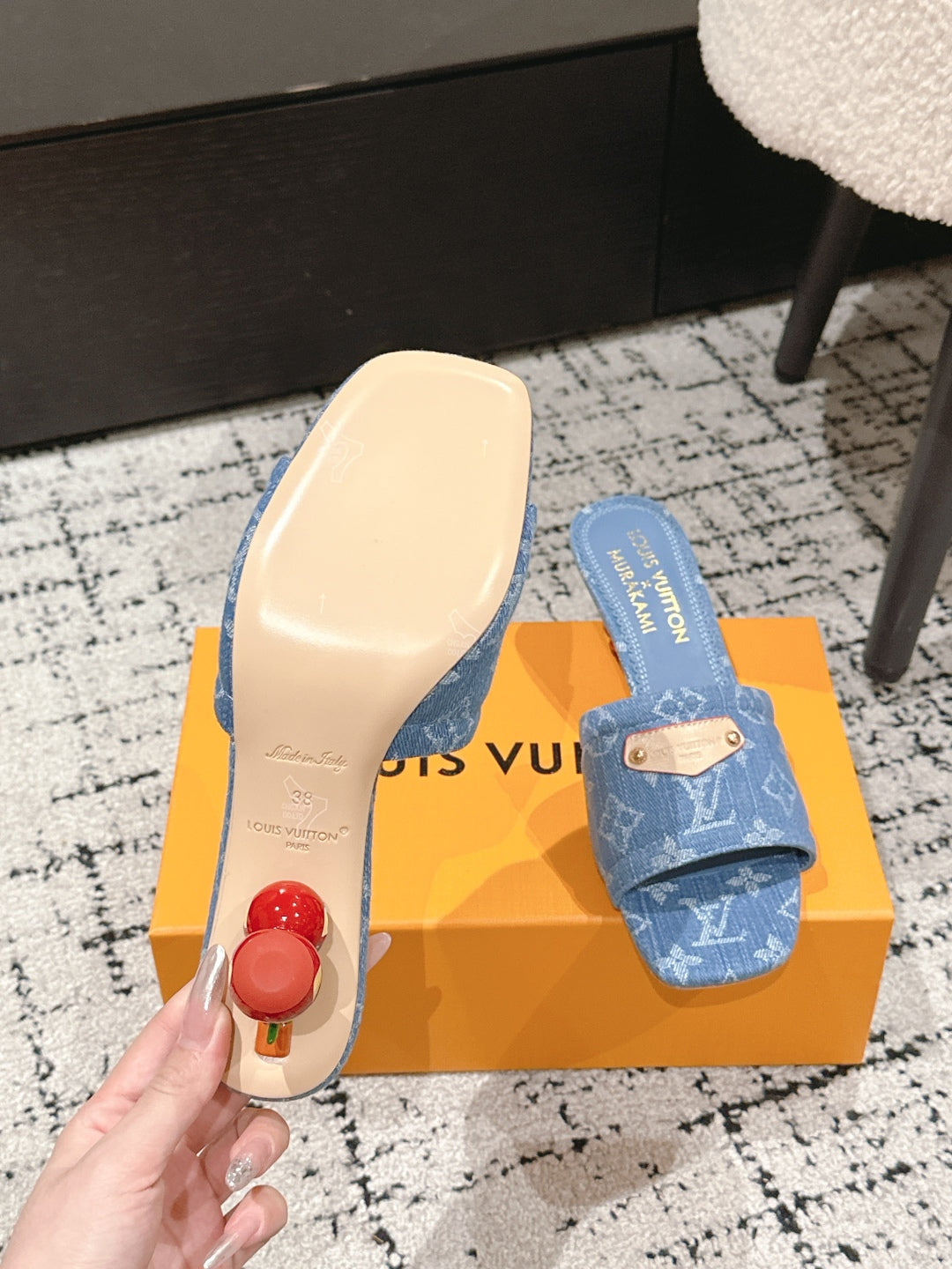 LV CHERRY HIGH HEELS 25S 55 MM IN BLUE DENIM STYLE 5