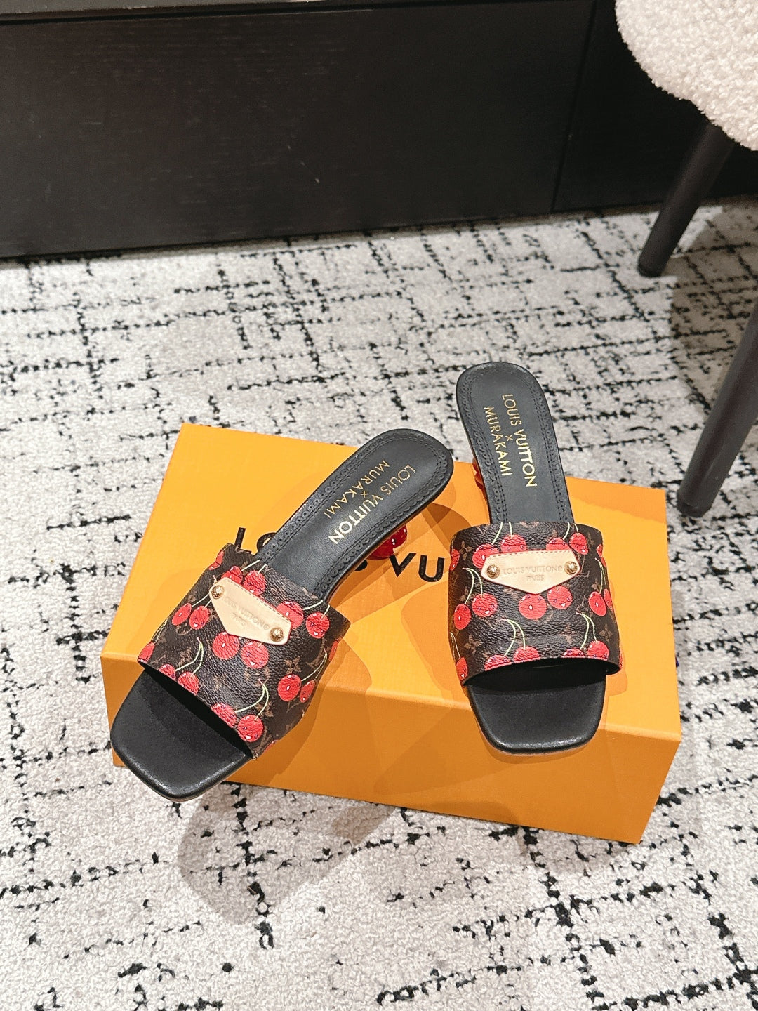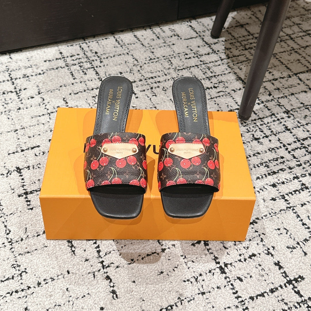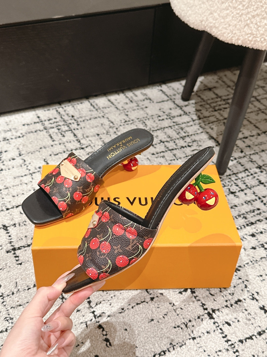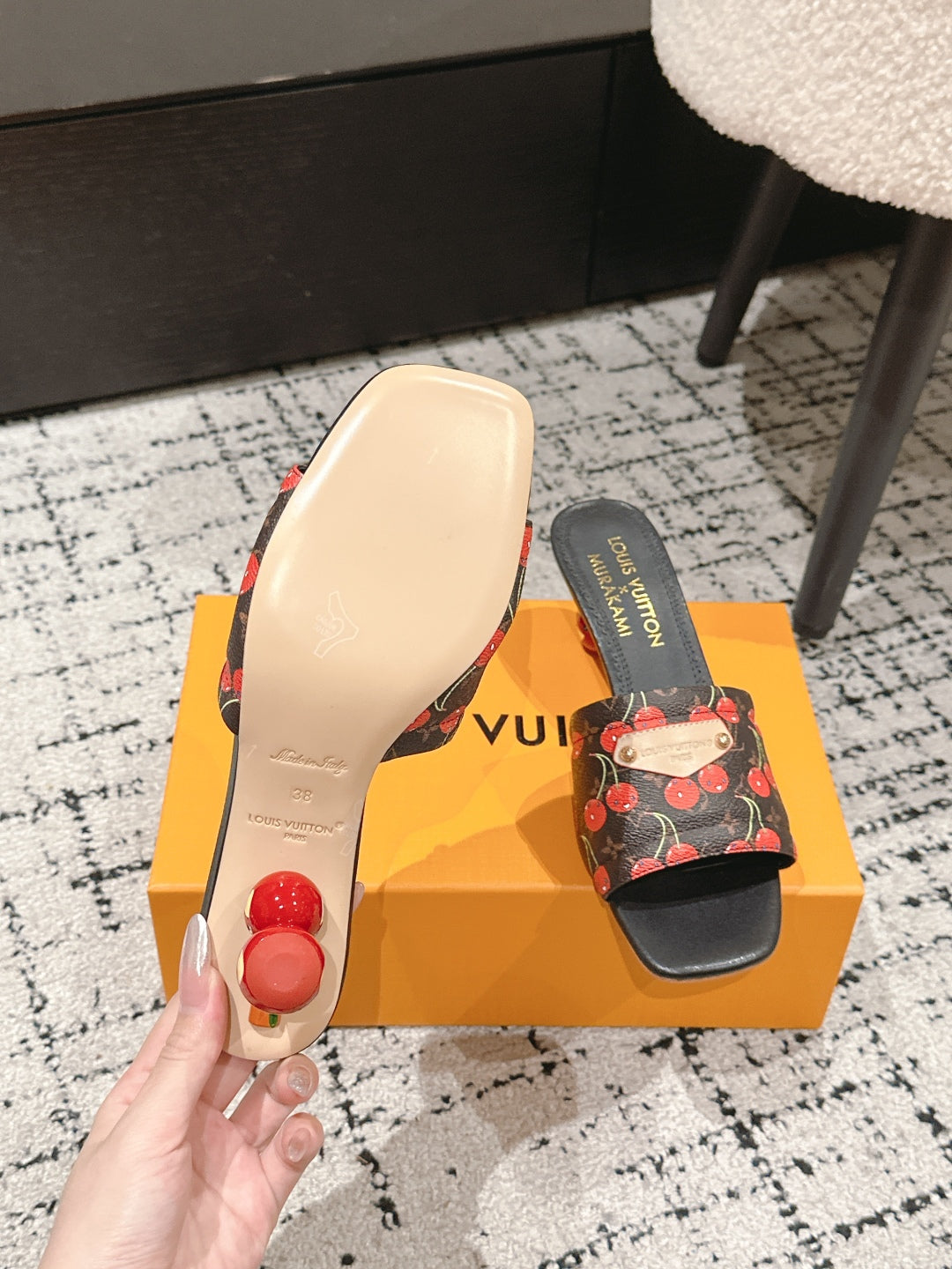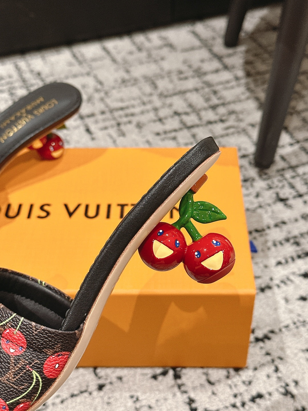 LV CHERRY HIGH HEELS 25S 55 MM IN DARK BROWN MIX BLACK CALFSKIN STYLE 12