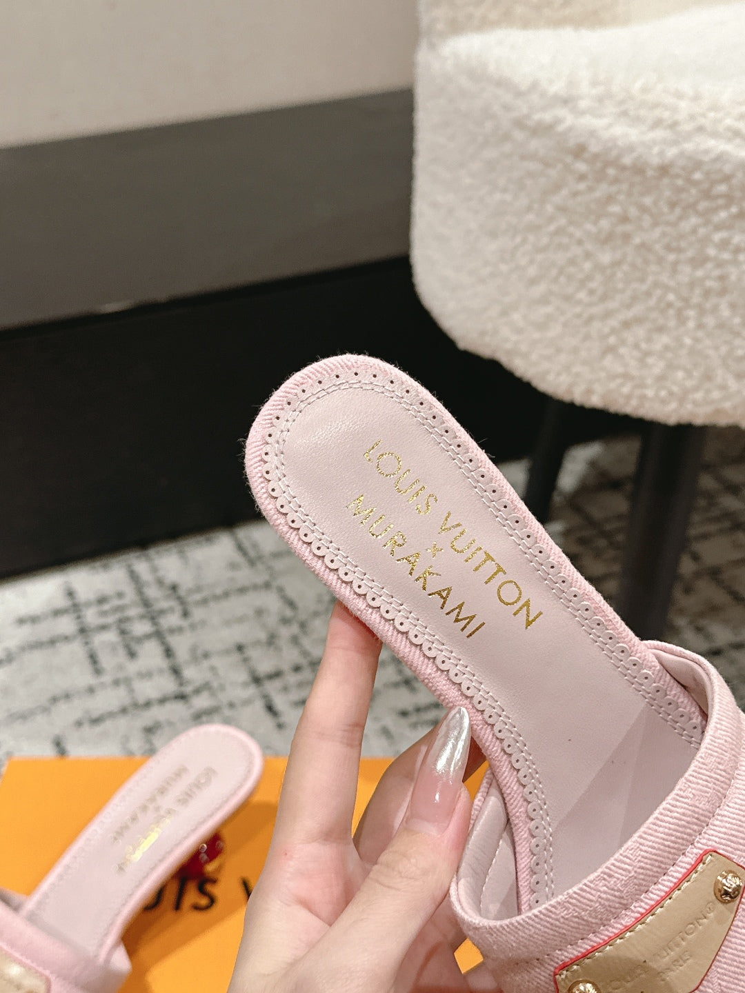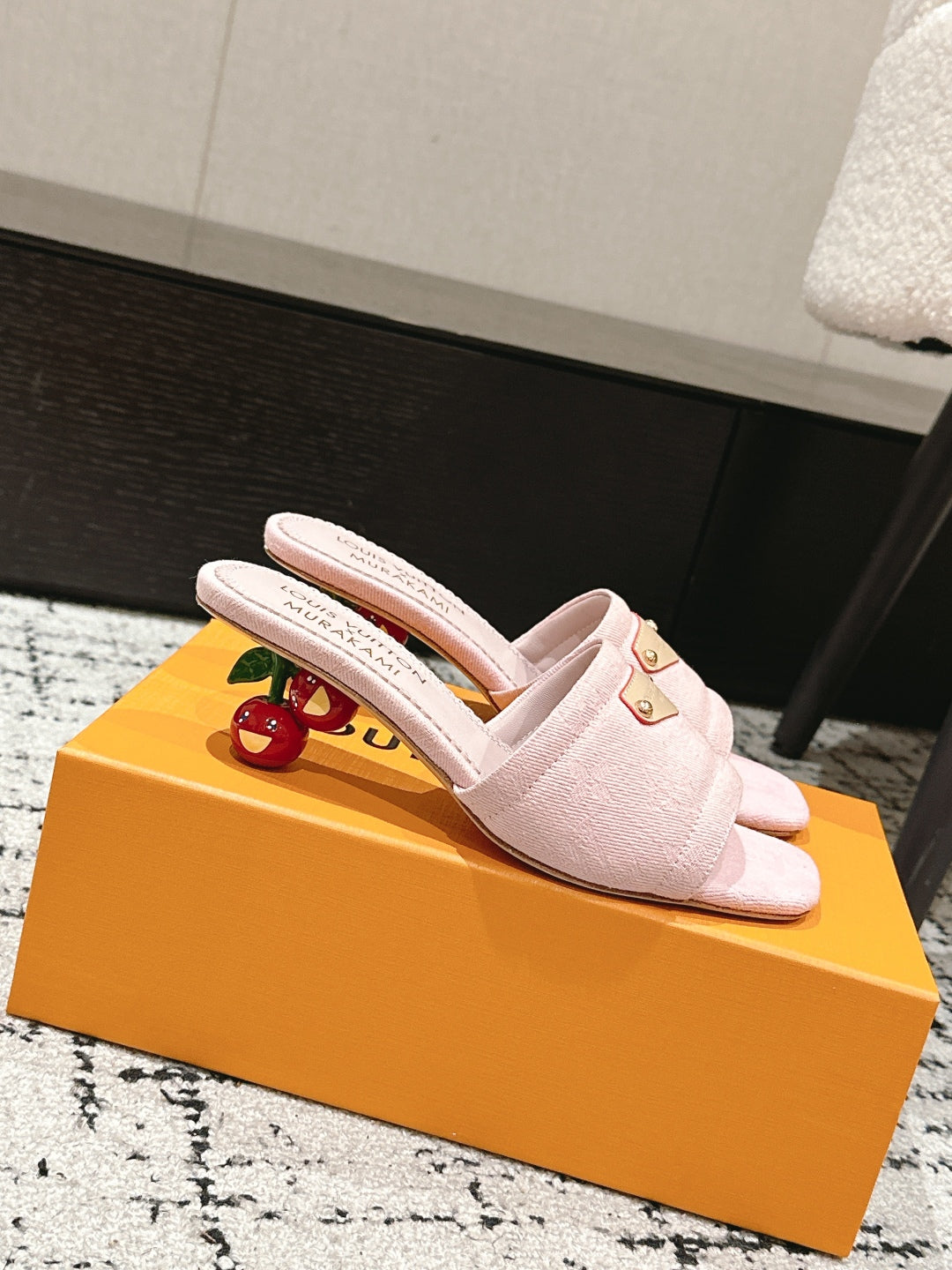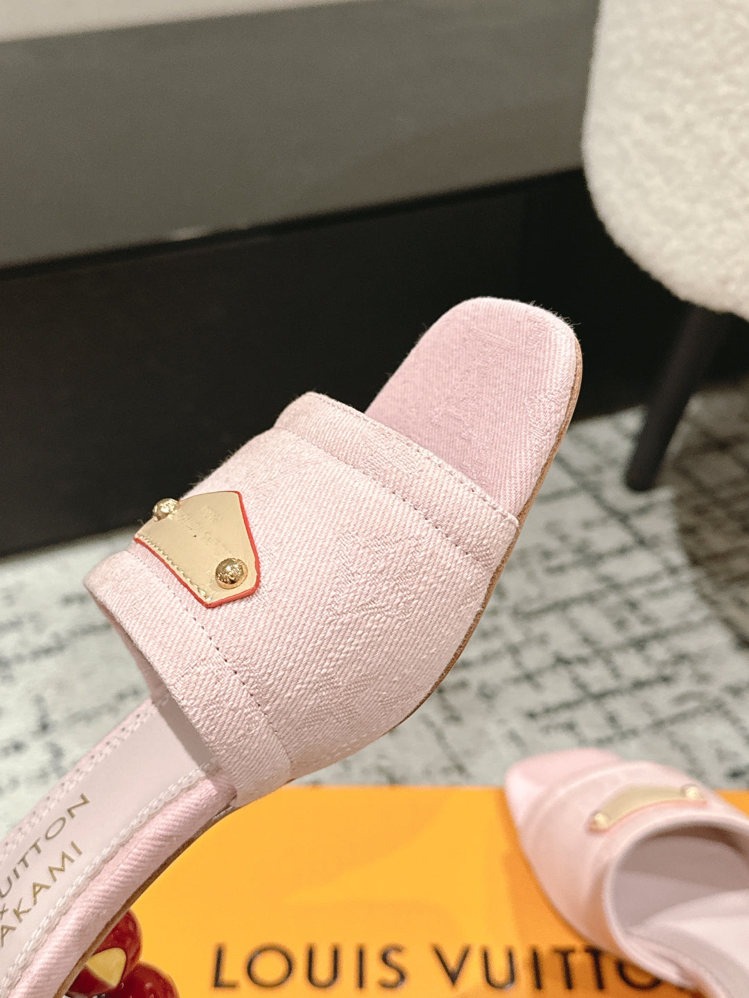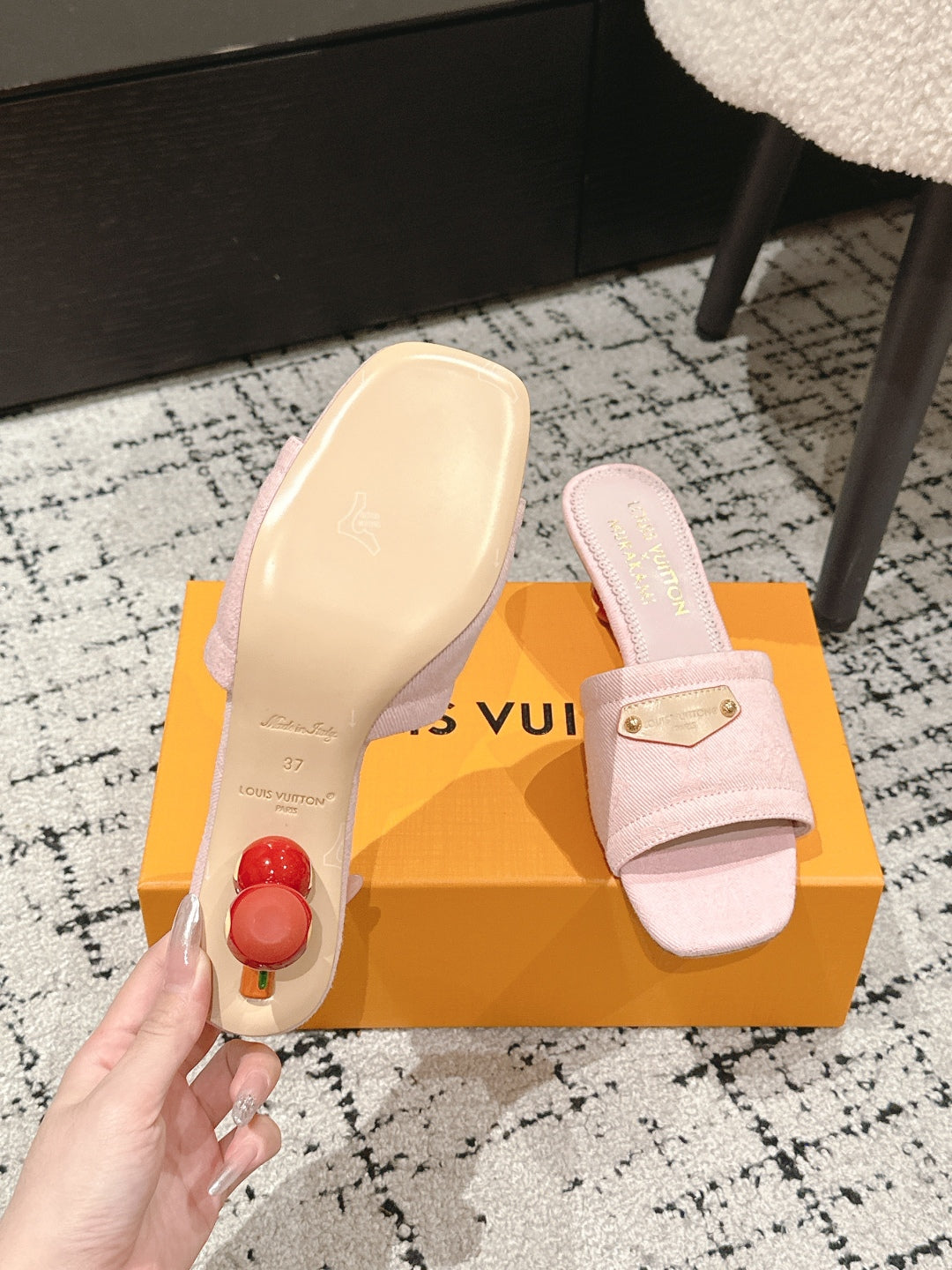 LV CHERRY HIGH HEELS 25S 55 MM IN LIGHT PINK DENIM STYLE 4