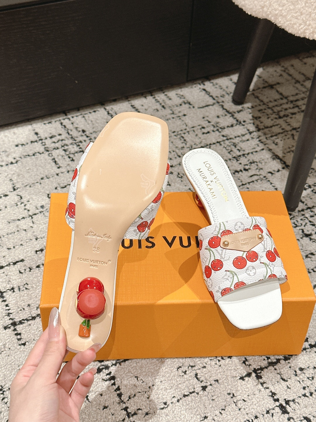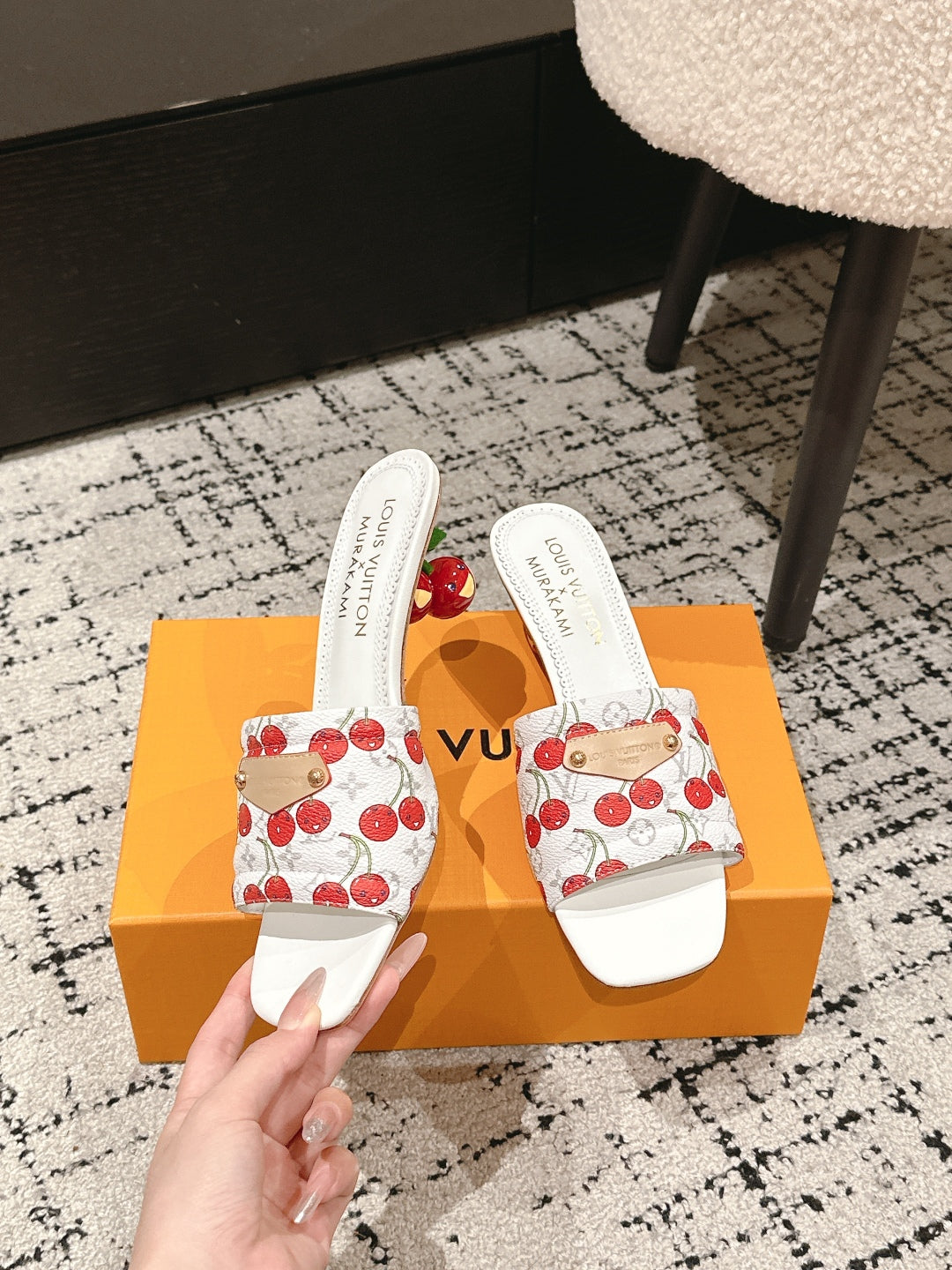 LV CHERRY HIGH HEELS 25S 55 MM IN WHITE CALFSKIN STYLE 11
