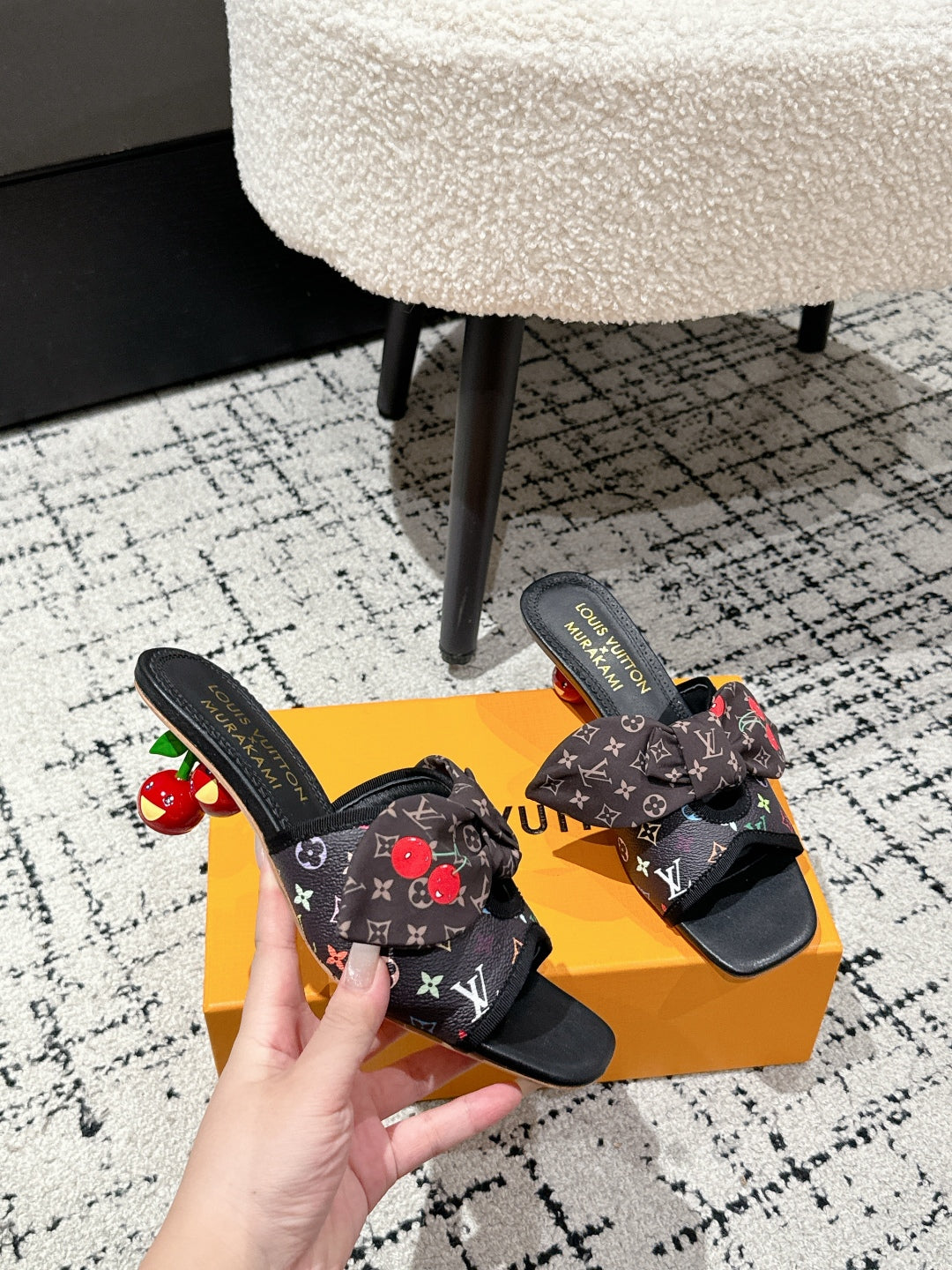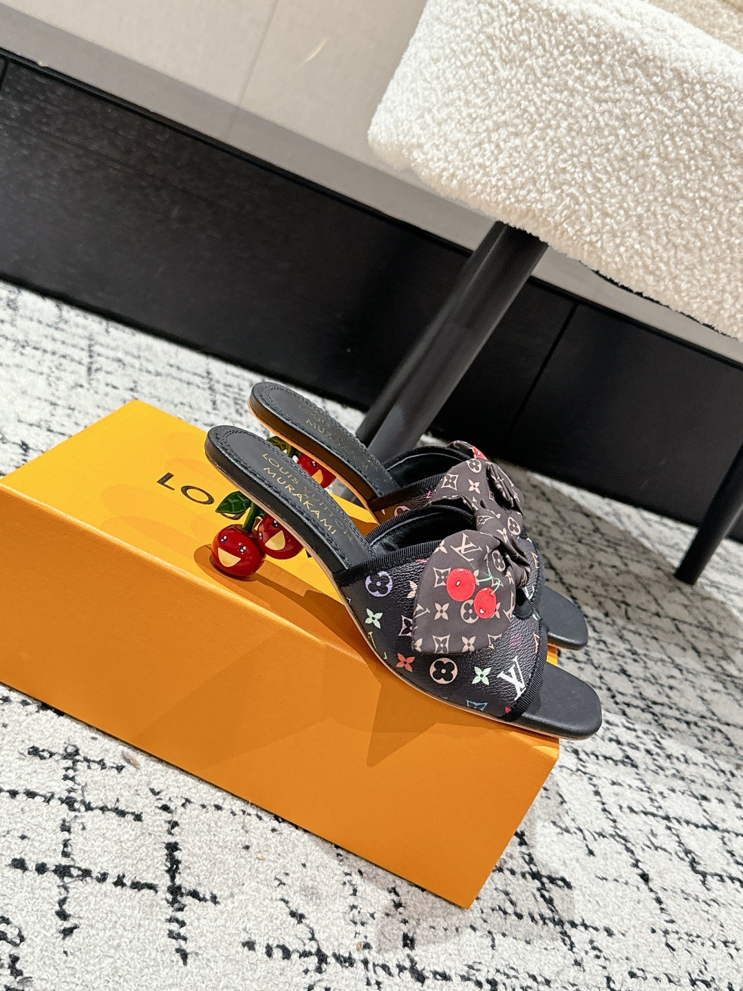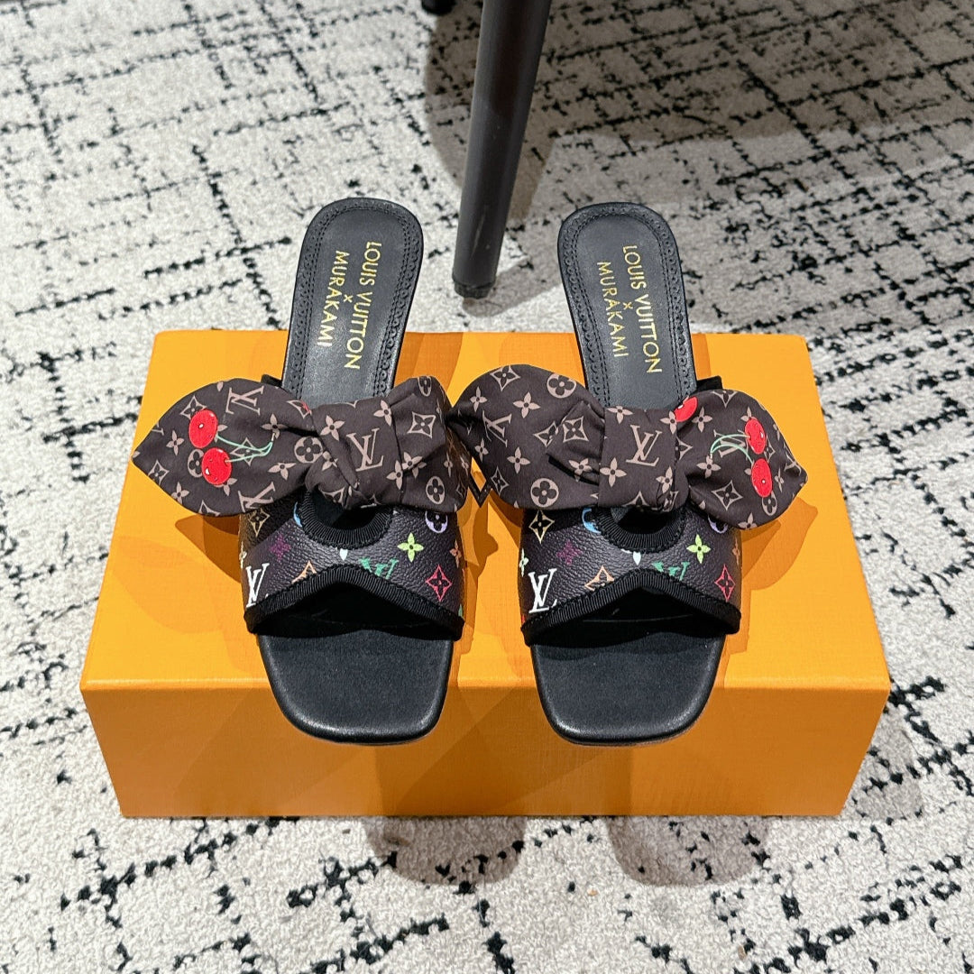 LV CHERRY HIGH HEELS 25S IN BLACK CALFSKIN WITH BOW STYLE 12