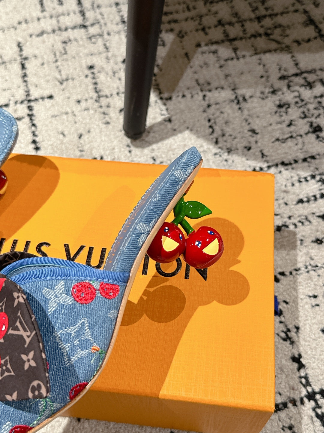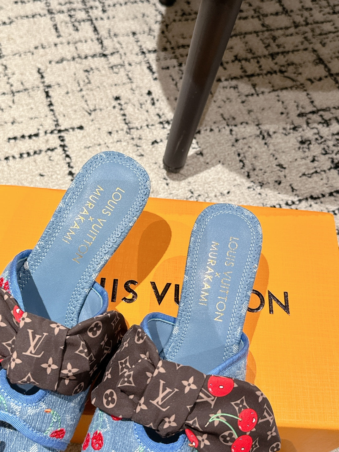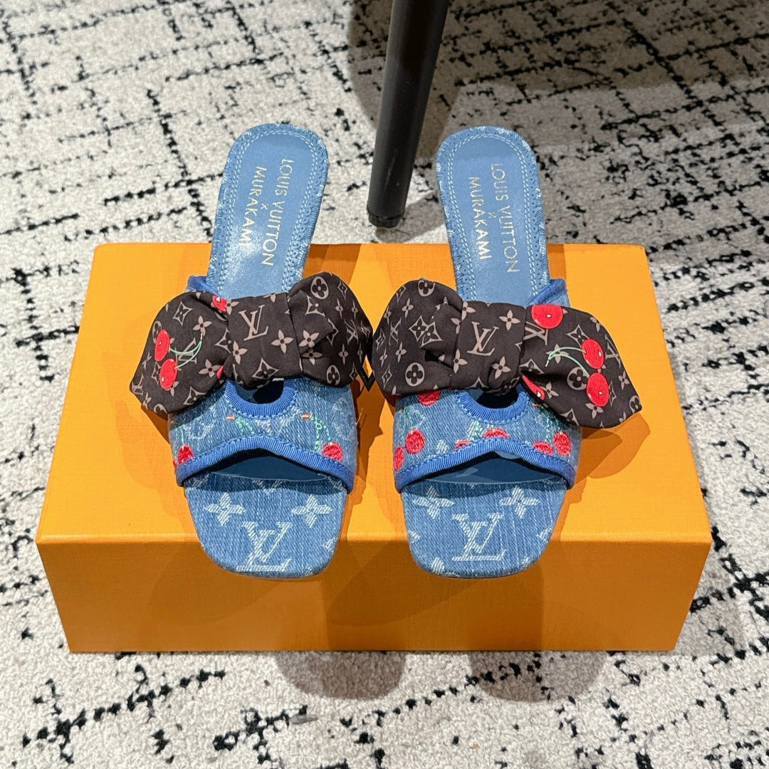LV CHERRY HIGH HEELS 25S IN BLUE DENIM WITH BOW STYLE 3