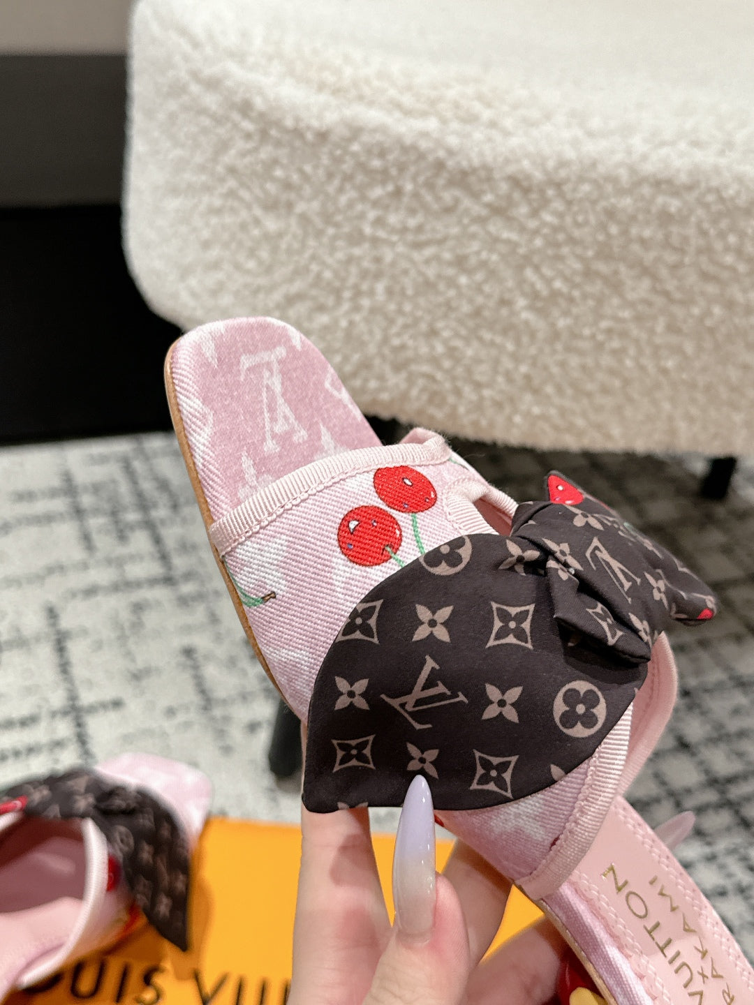 LV CHERRY HIGH HEELS 25S IN LIGHT PINK DENIM WITH BOW STYLE 4