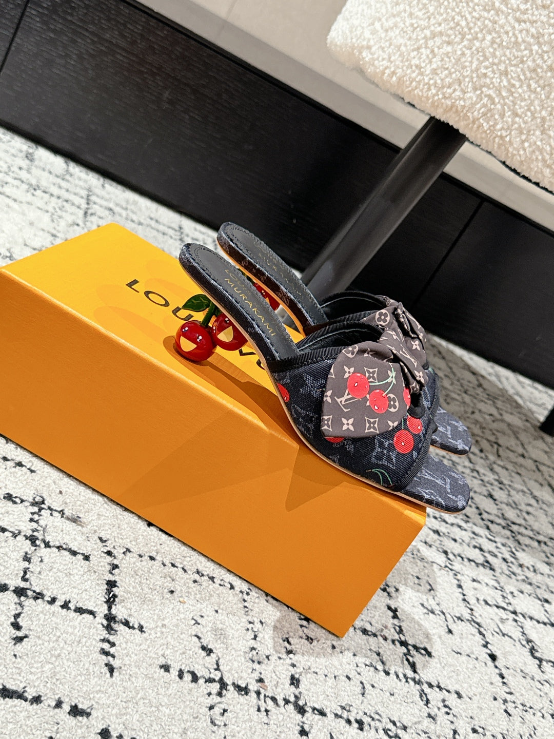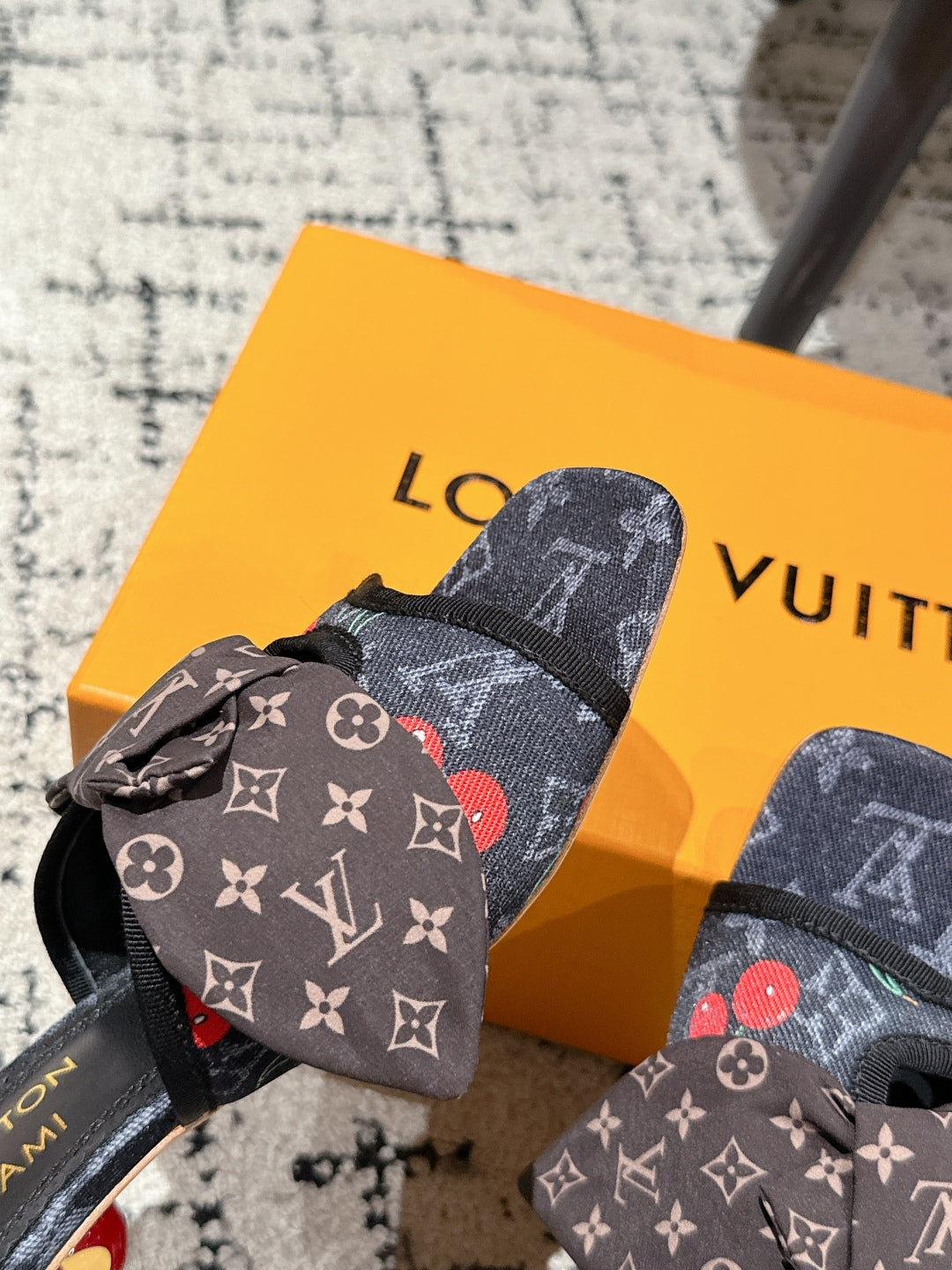 LV CHERRY HIGH HEELS 25S IN NAVY BLUE DENIM WITH BOW STYLE 2