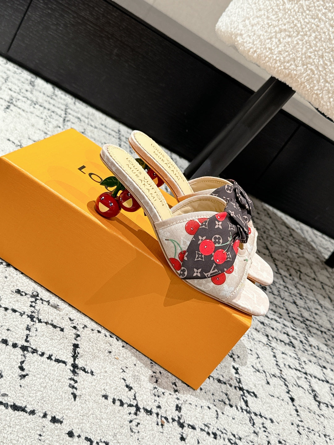 LV CHERRY HIGH HEELS 25S IN NUDE DENIM WITH BOW STYLE 5