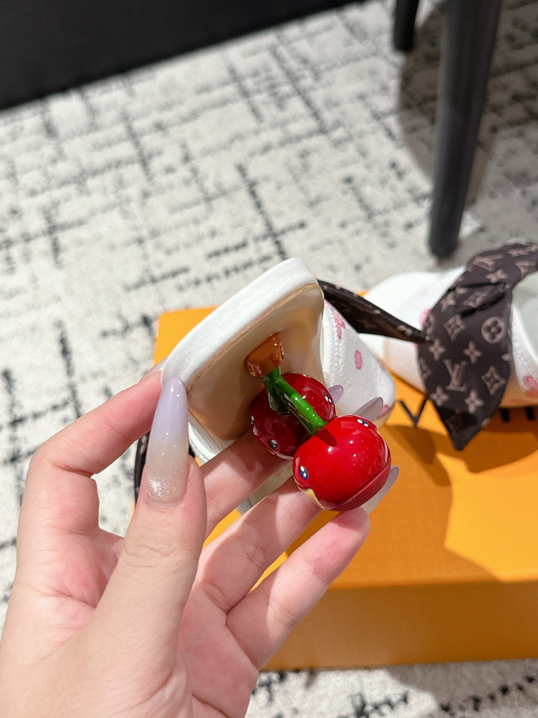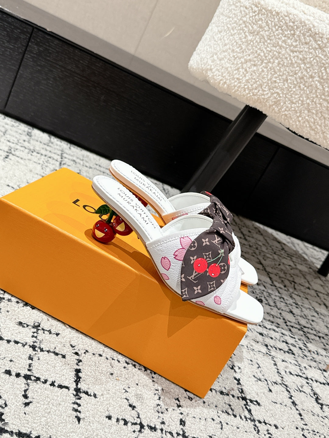 LV CHERRY HIGH HEELS 25S IN WHITE CALFSKIN WITH BOW STYLE 15