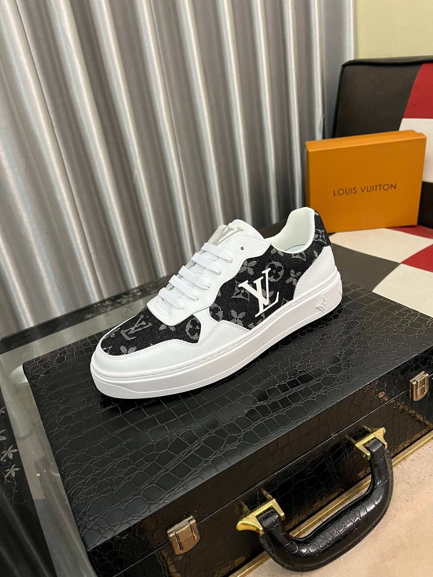 LV CLASSIC TRAINERS BLACK DENIM MIX WHITE CALFSKIN