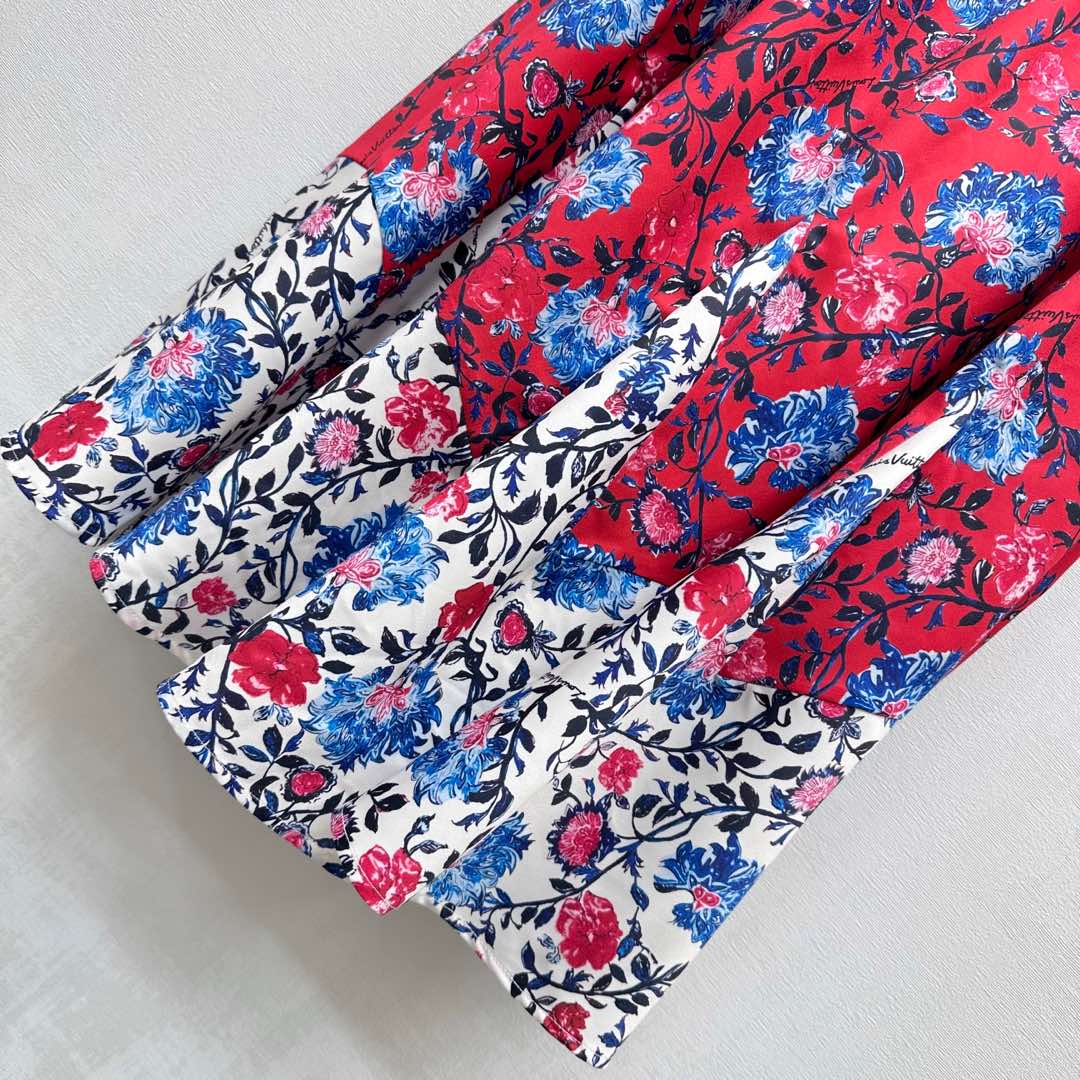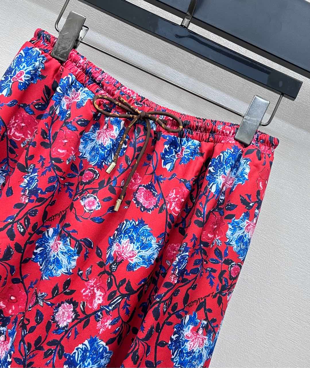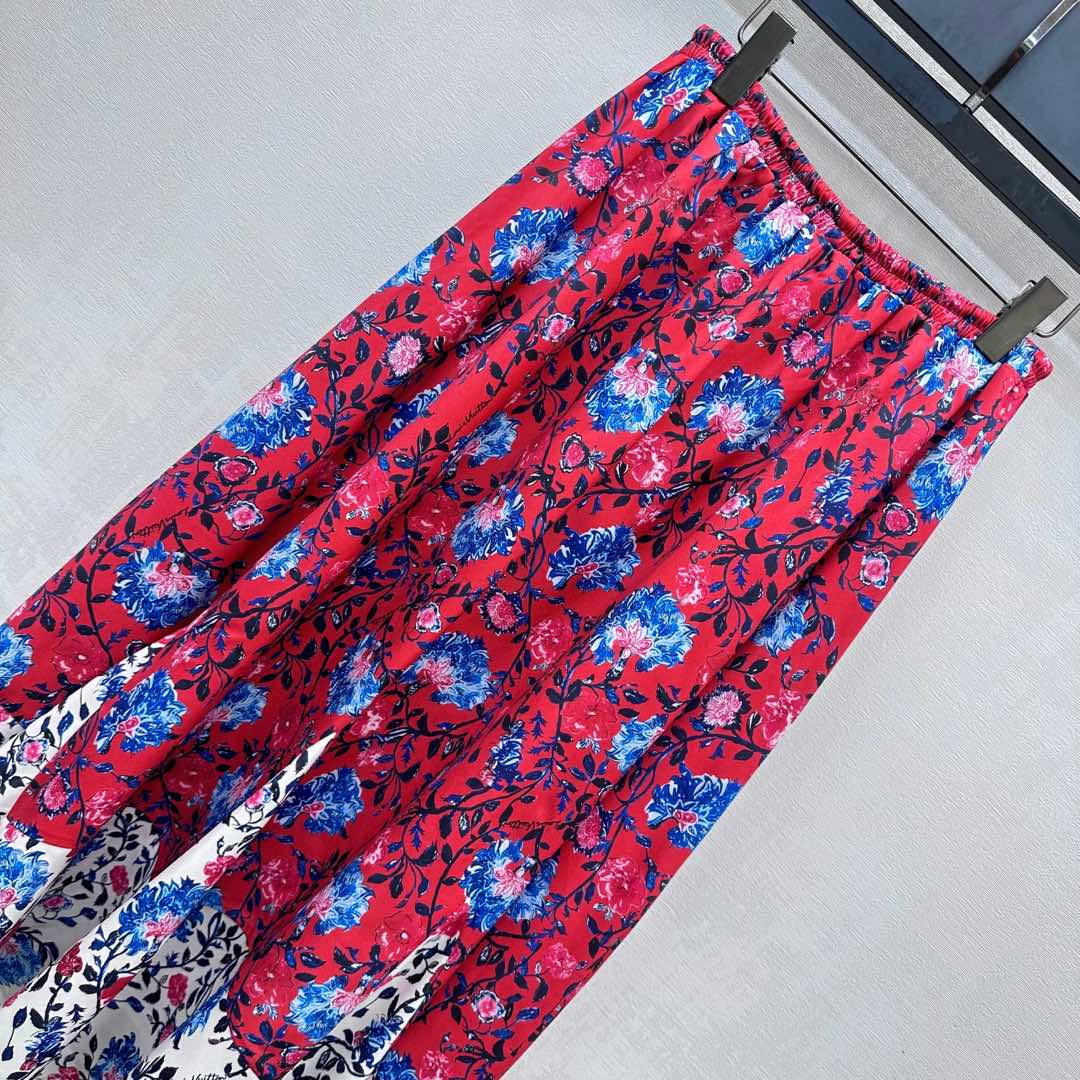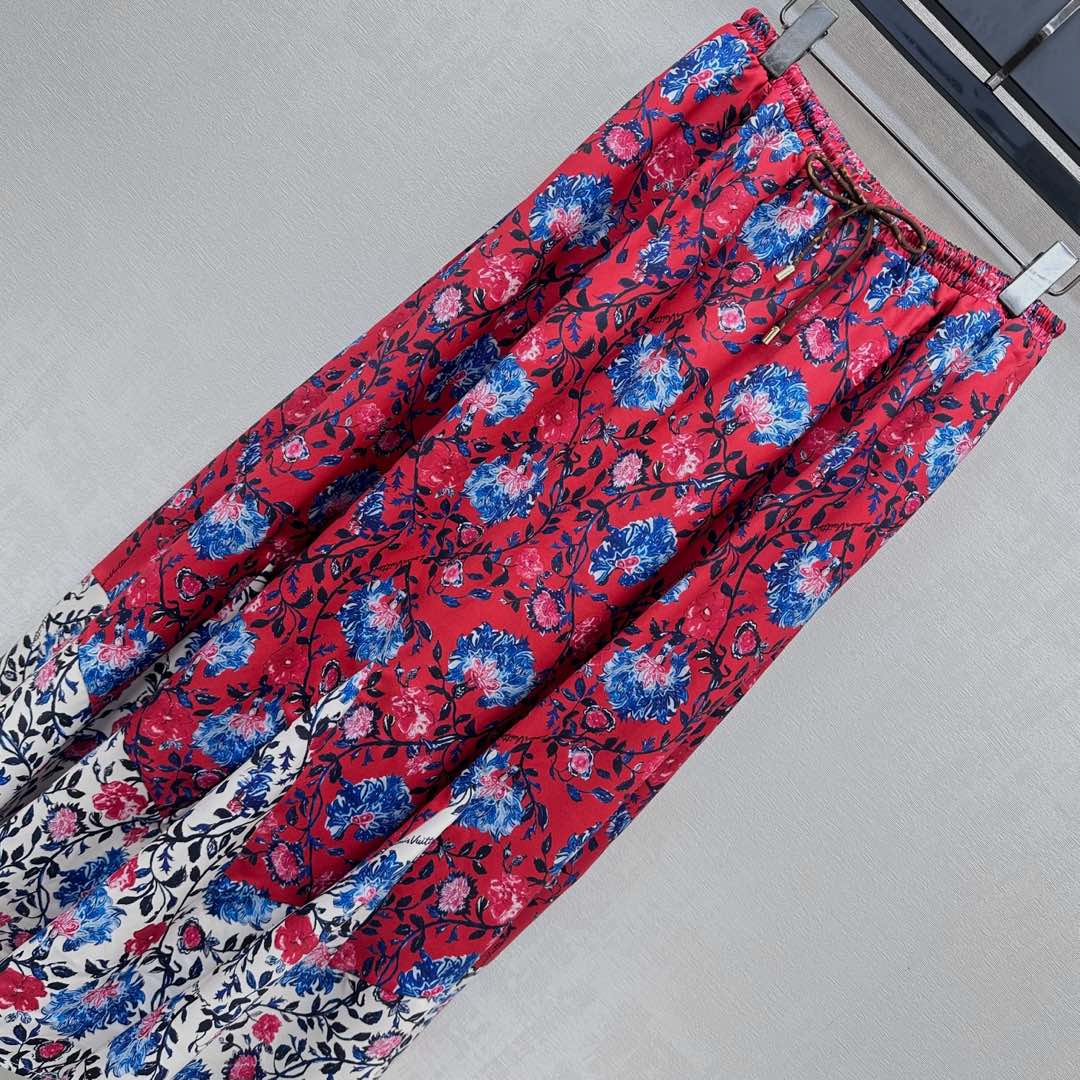 LV FLORAL SILK SKIRT IN RED