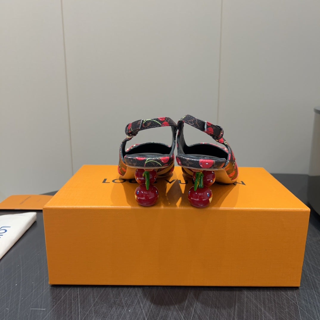 LV HIGH SLINGBACK LOGO AND CHERRY PRINT 25S 55MM IN DARK BROWN CALFSKIN