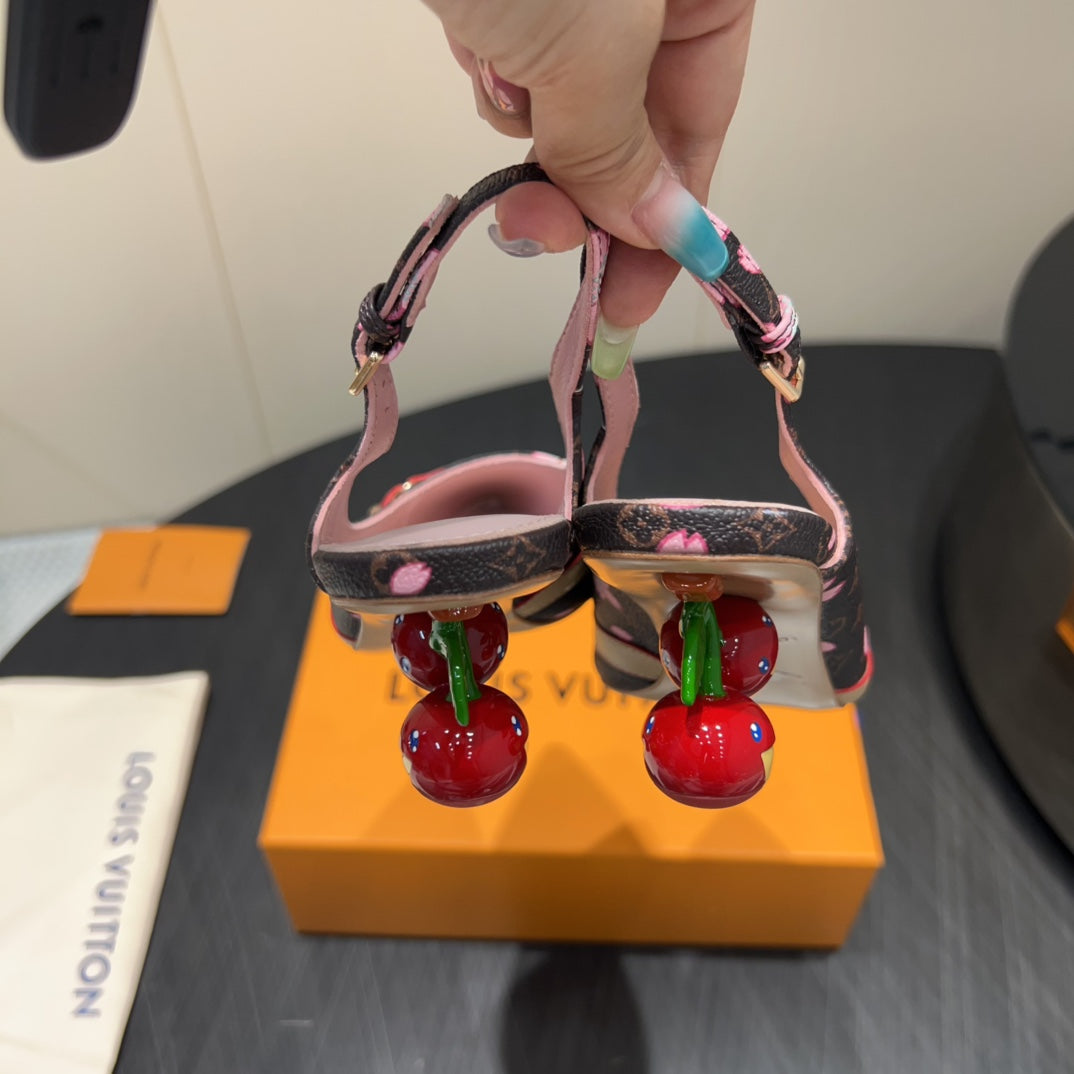 LV HIGH SLINGBACK LOGO PRINT 25S 55 MM IN DARK BROWN CALFSKIN