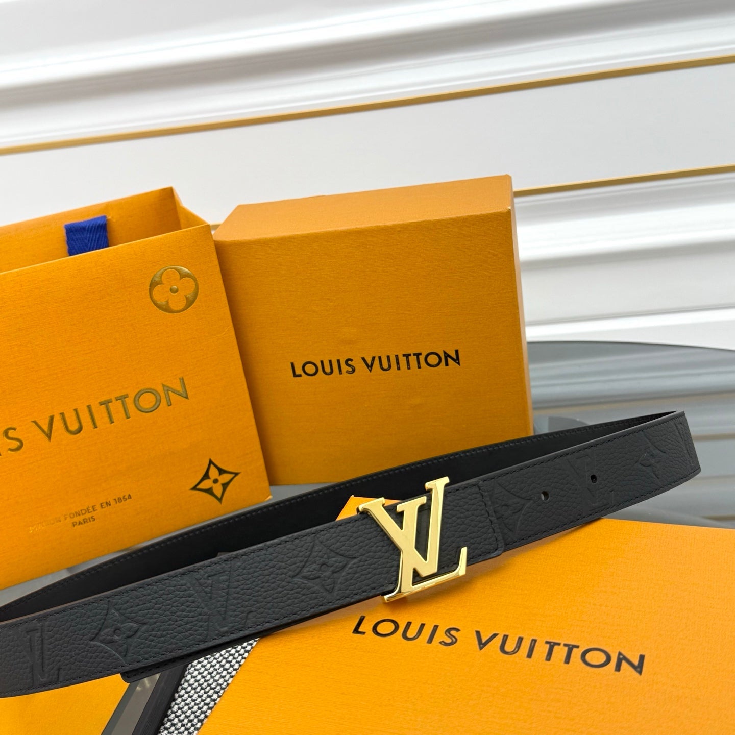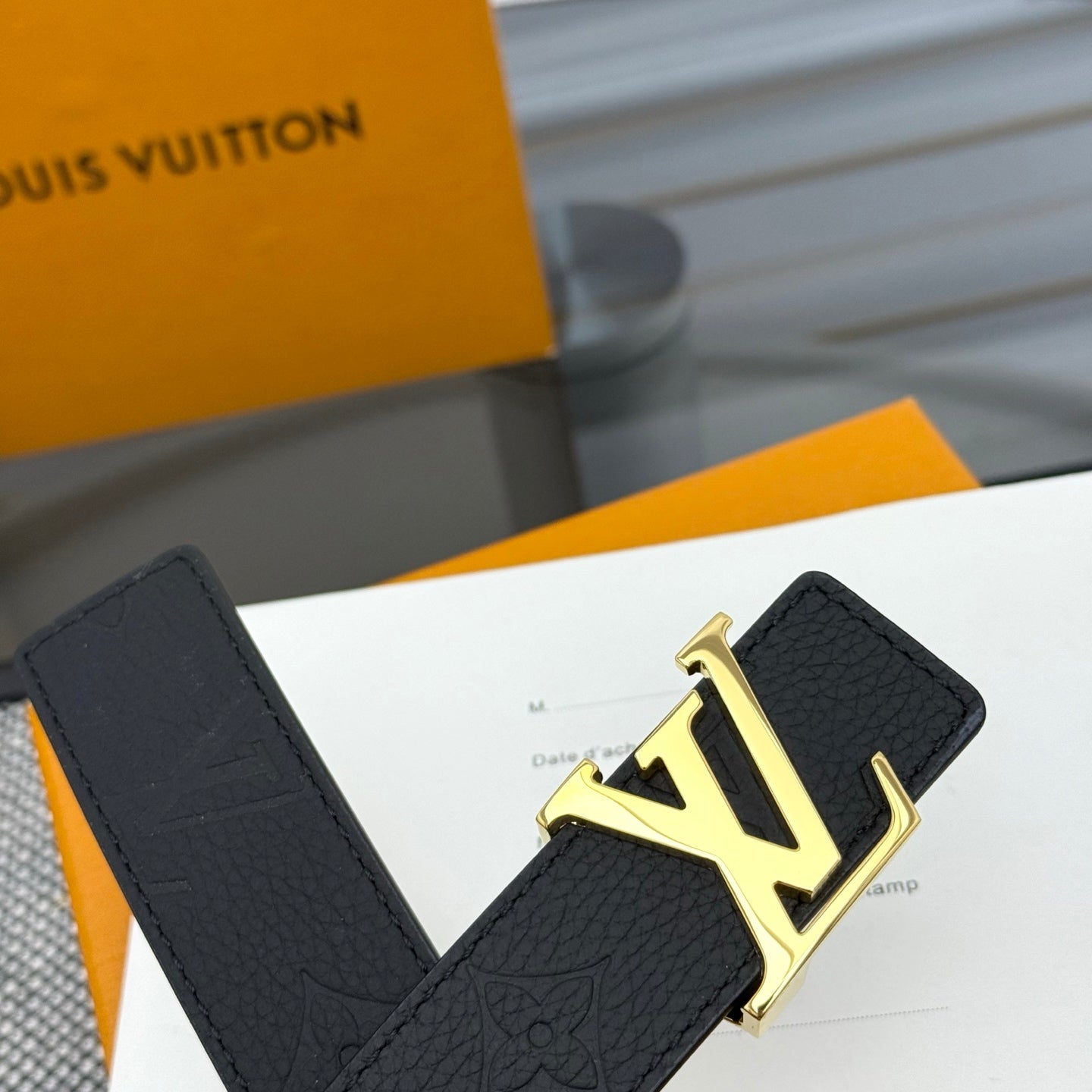 LV INITIALES BELT REVERSIBLE 30MM IN BLACK GRAINED CALFSKIN EMBOSSED LOGO GOLD BUCKLE