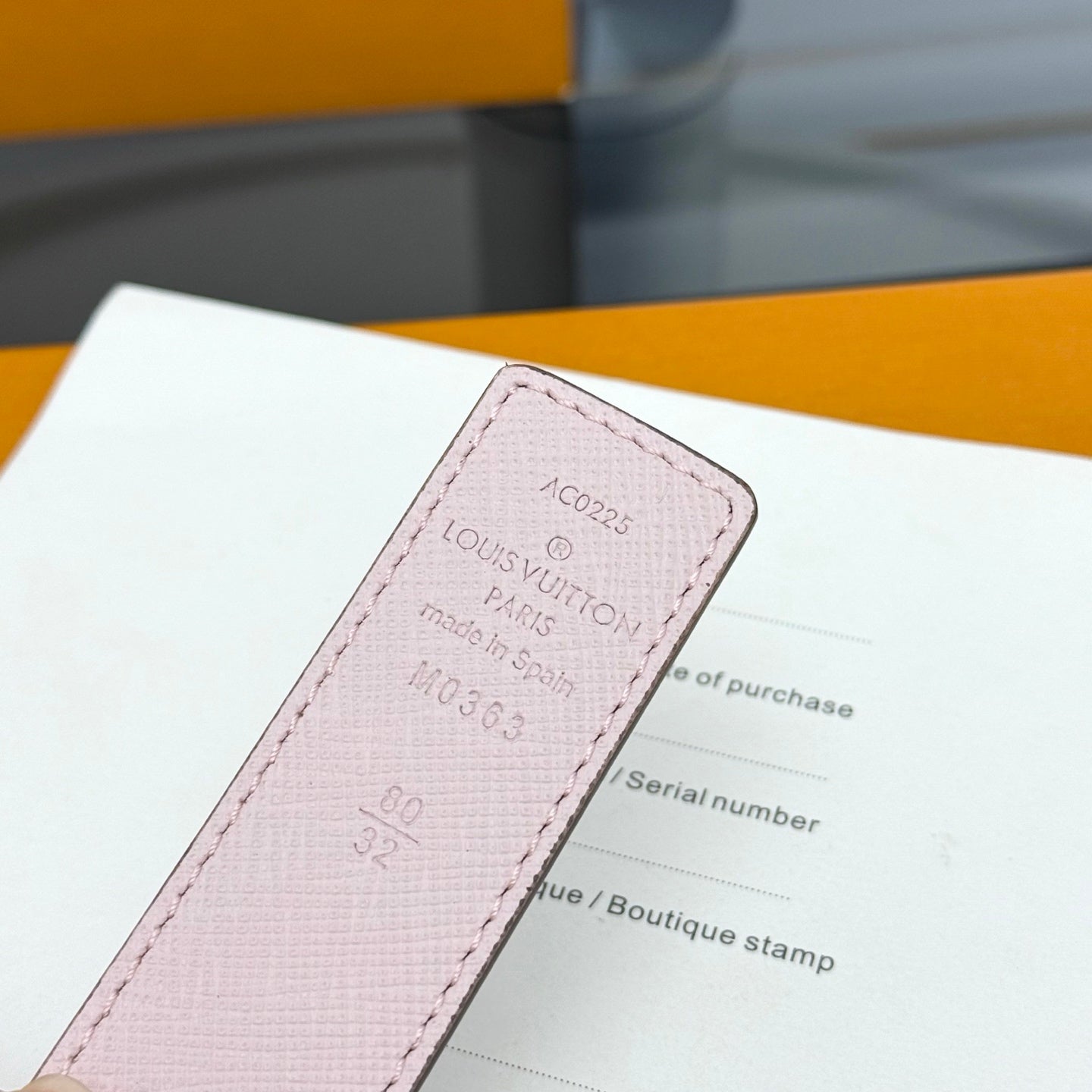 LV INITIALES BELT REVERSIBLE 30MM IN BROWN AND LIGHT PINK GRAINED CALFSKIN GOLD BUCKLE