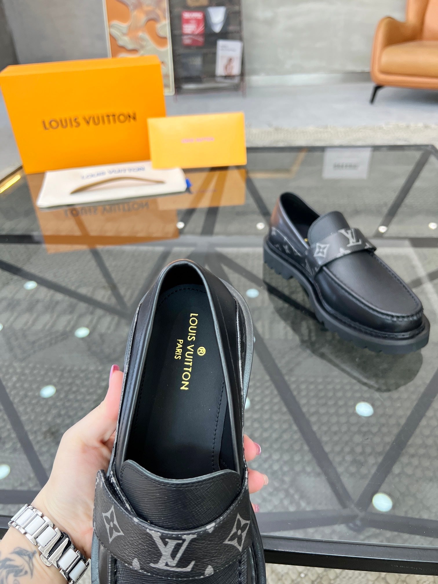 LV LOAFERS BLACK CALFSKIN WITH MONOGRAM STRAP