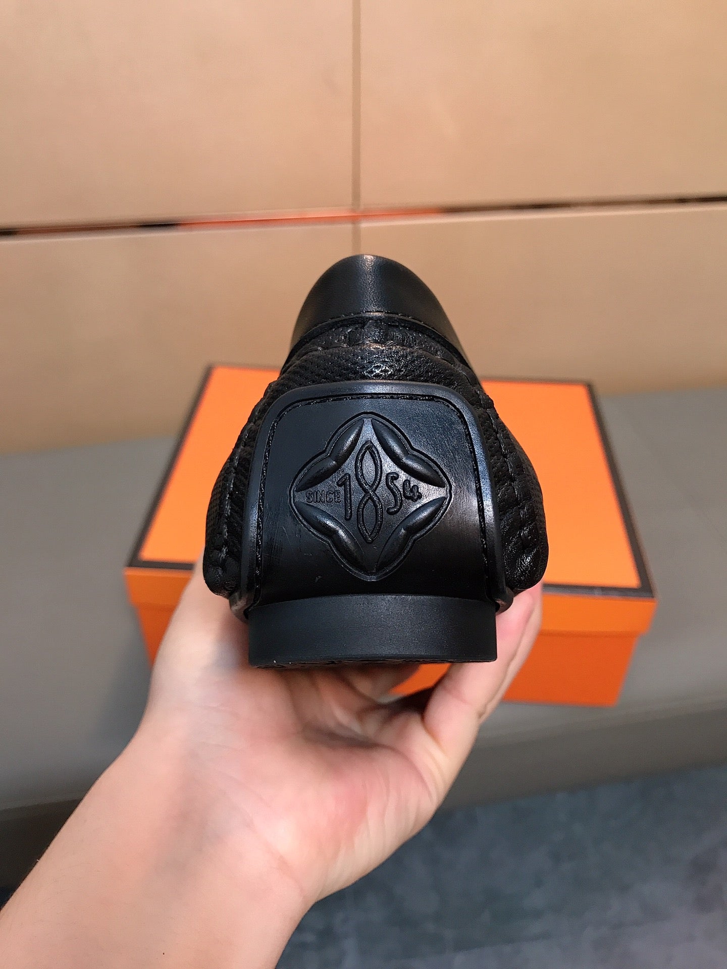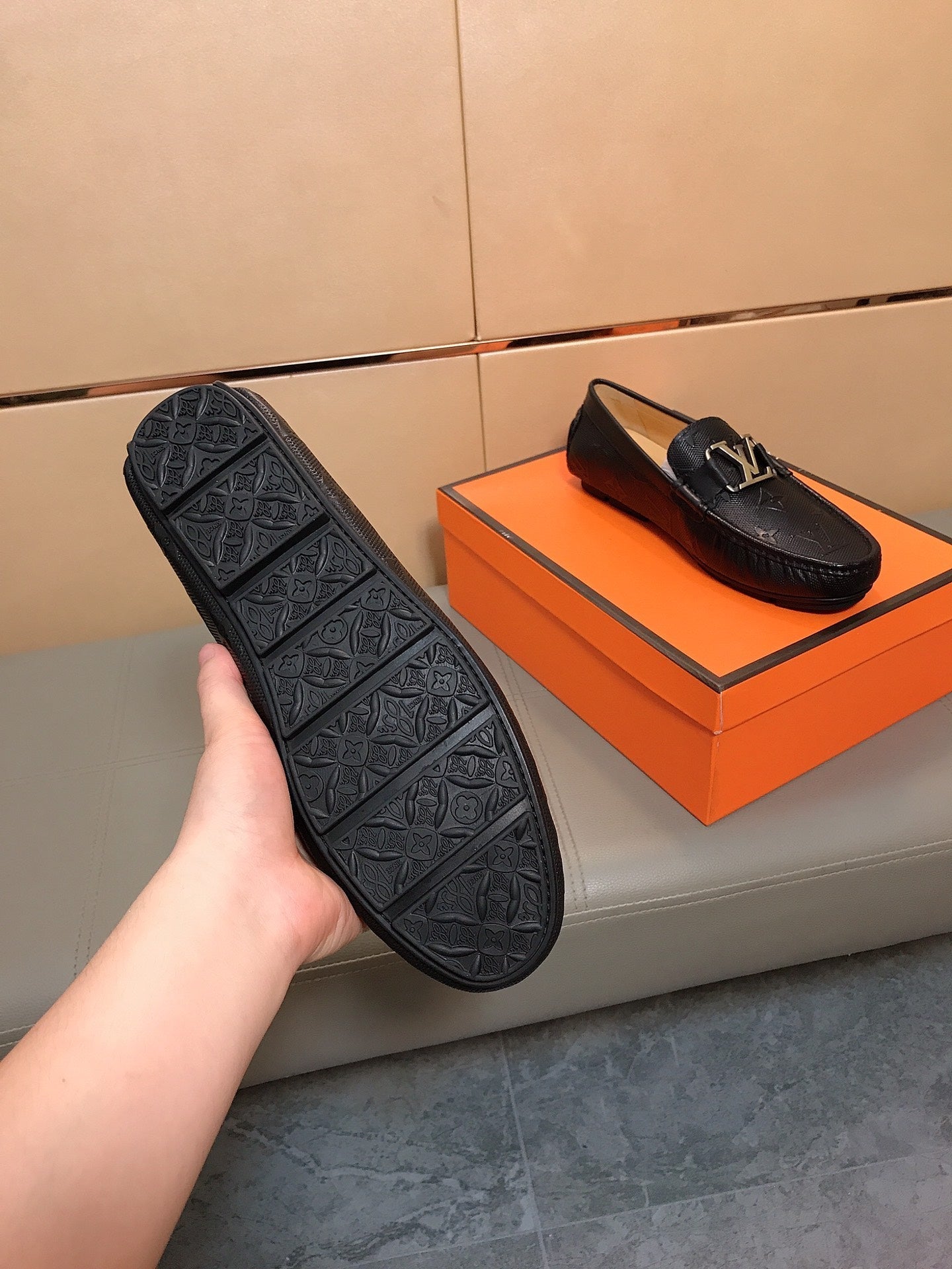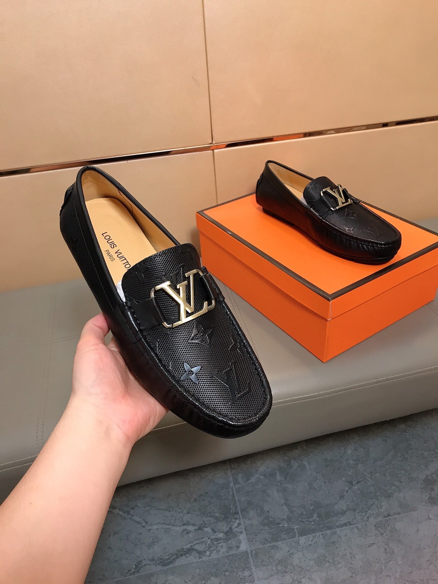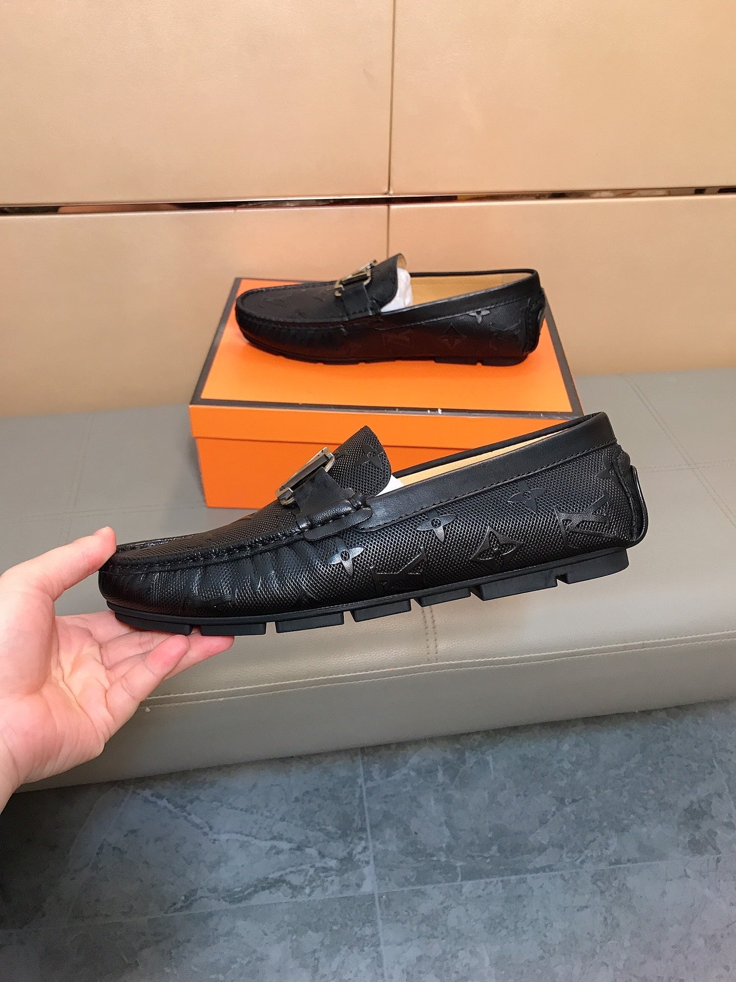 LV LOAFERS IN BLACK CALFSKIN WITH BRANDED EMBOSSING