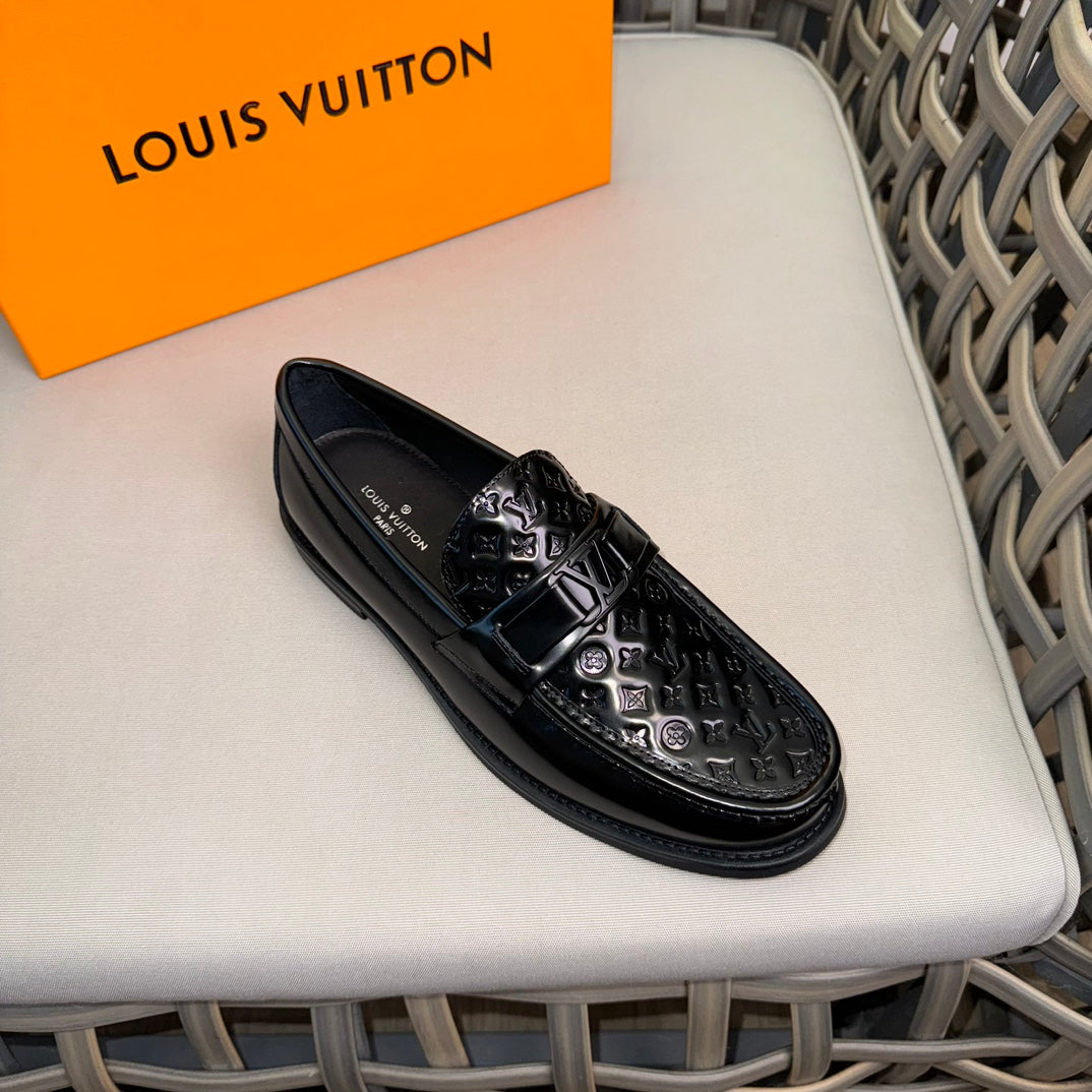 LV MAJOR LOAFERS IN BLACK EMBOSSED CALFSKIN