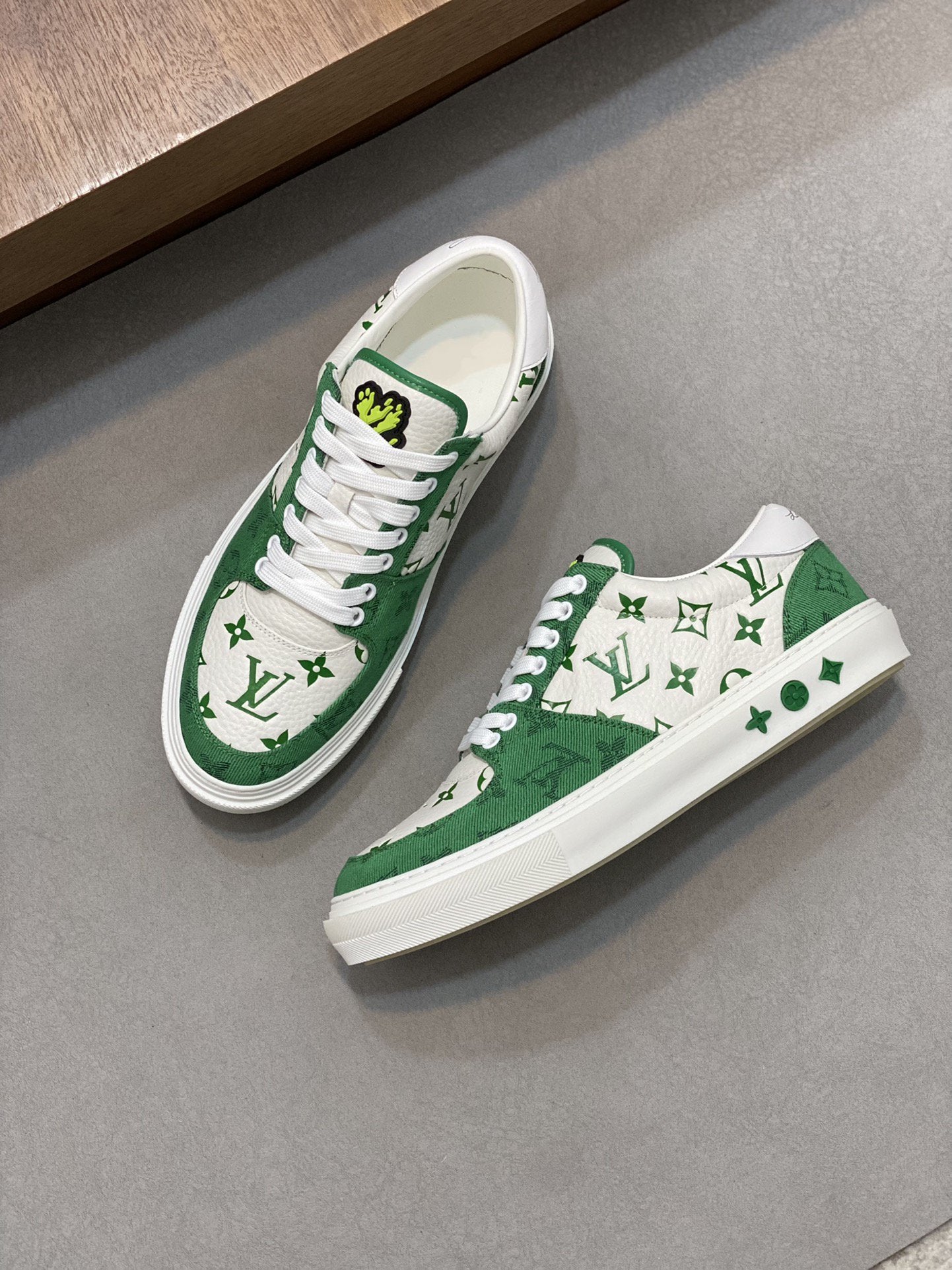 LV MONOGRAM GREEN AND WHITE SNEAKERS