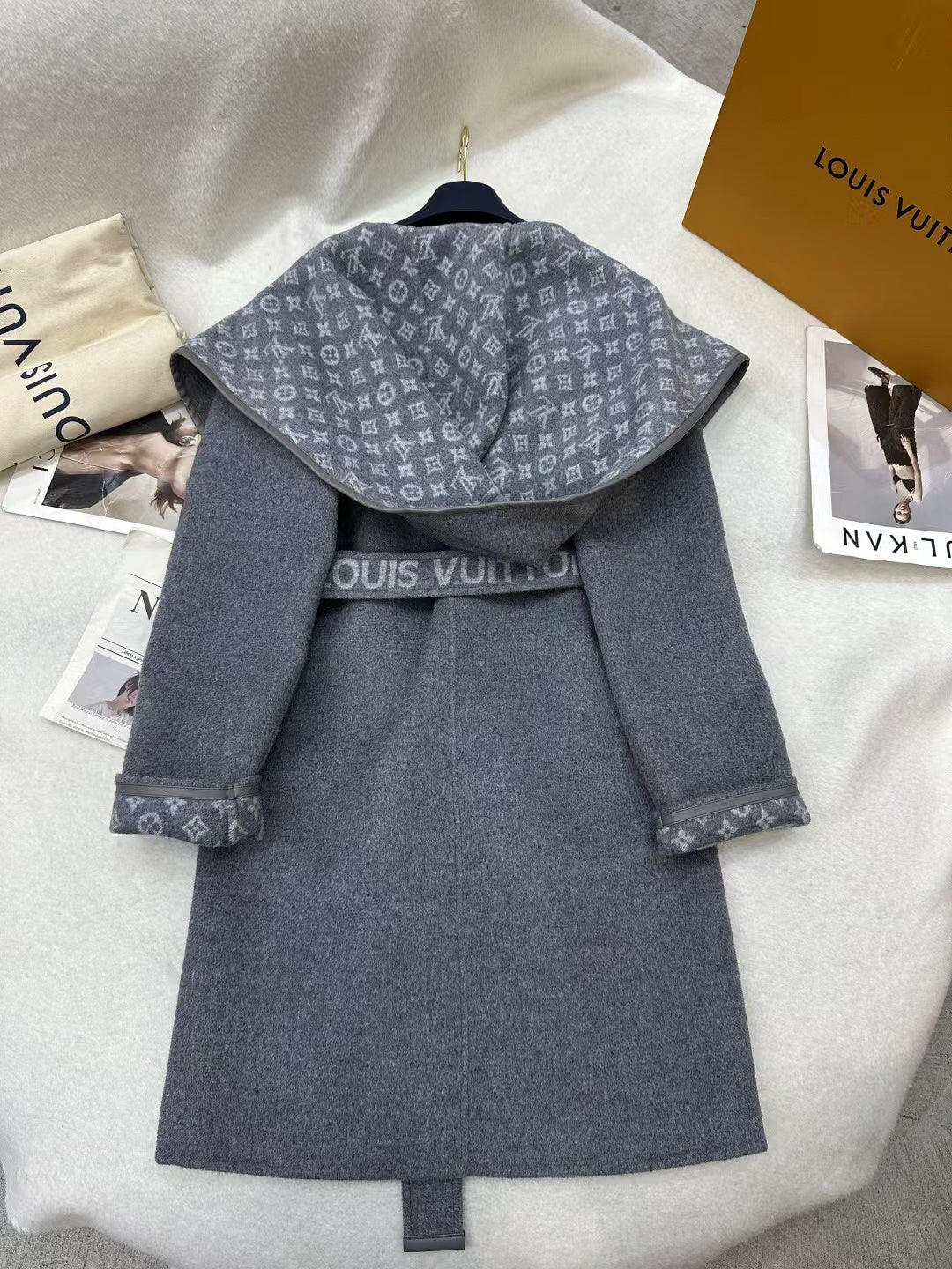 LV MONOGRAM MAXI COLLAR COAT IN GRAY WOOL