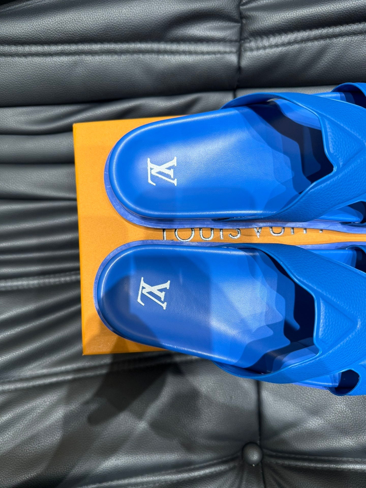 LV OASIS MULE IN COBALT BLUE CALFSKIN