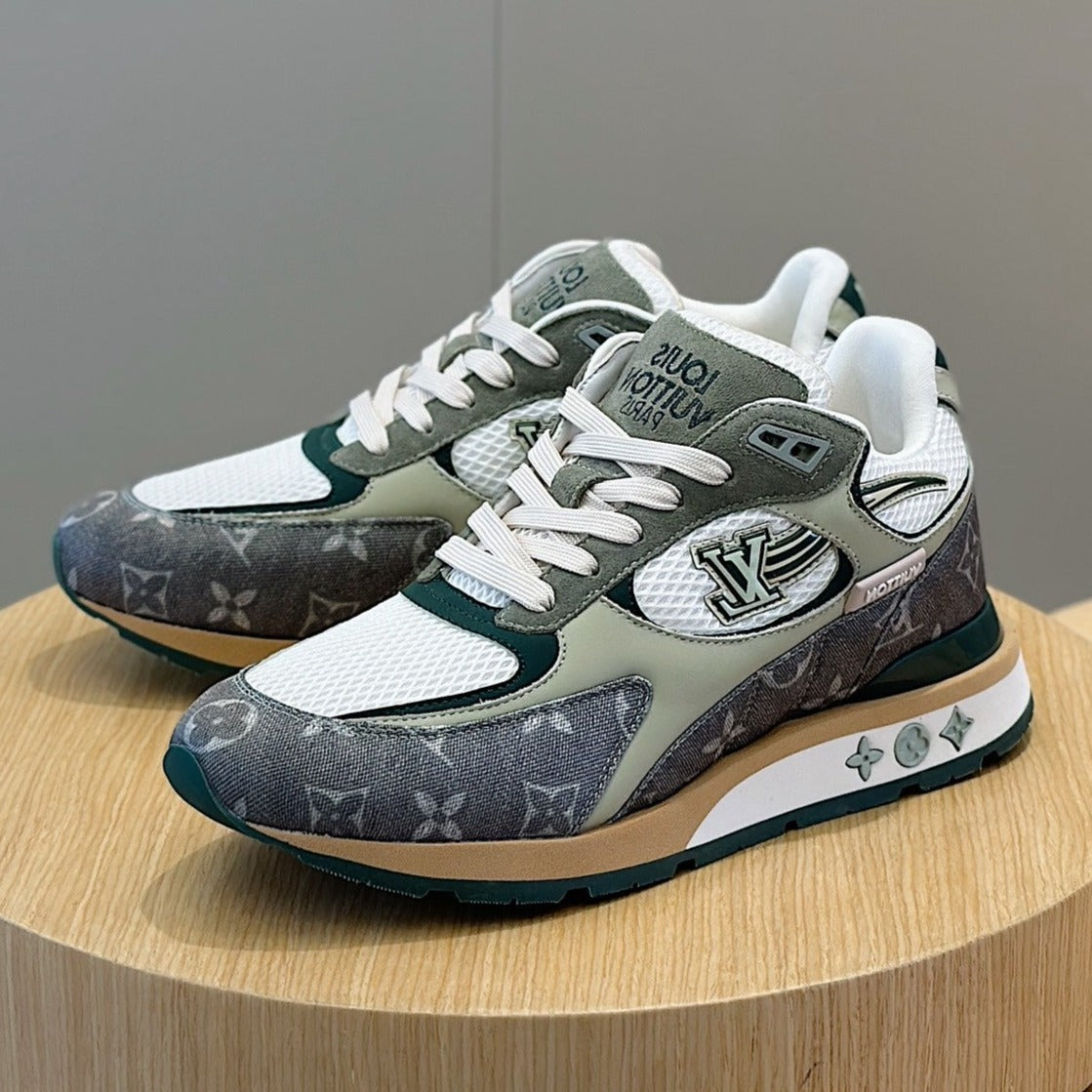 LV RUN AWAY SNEAKERS IN GREY MESH FABRIC AND SUEDE