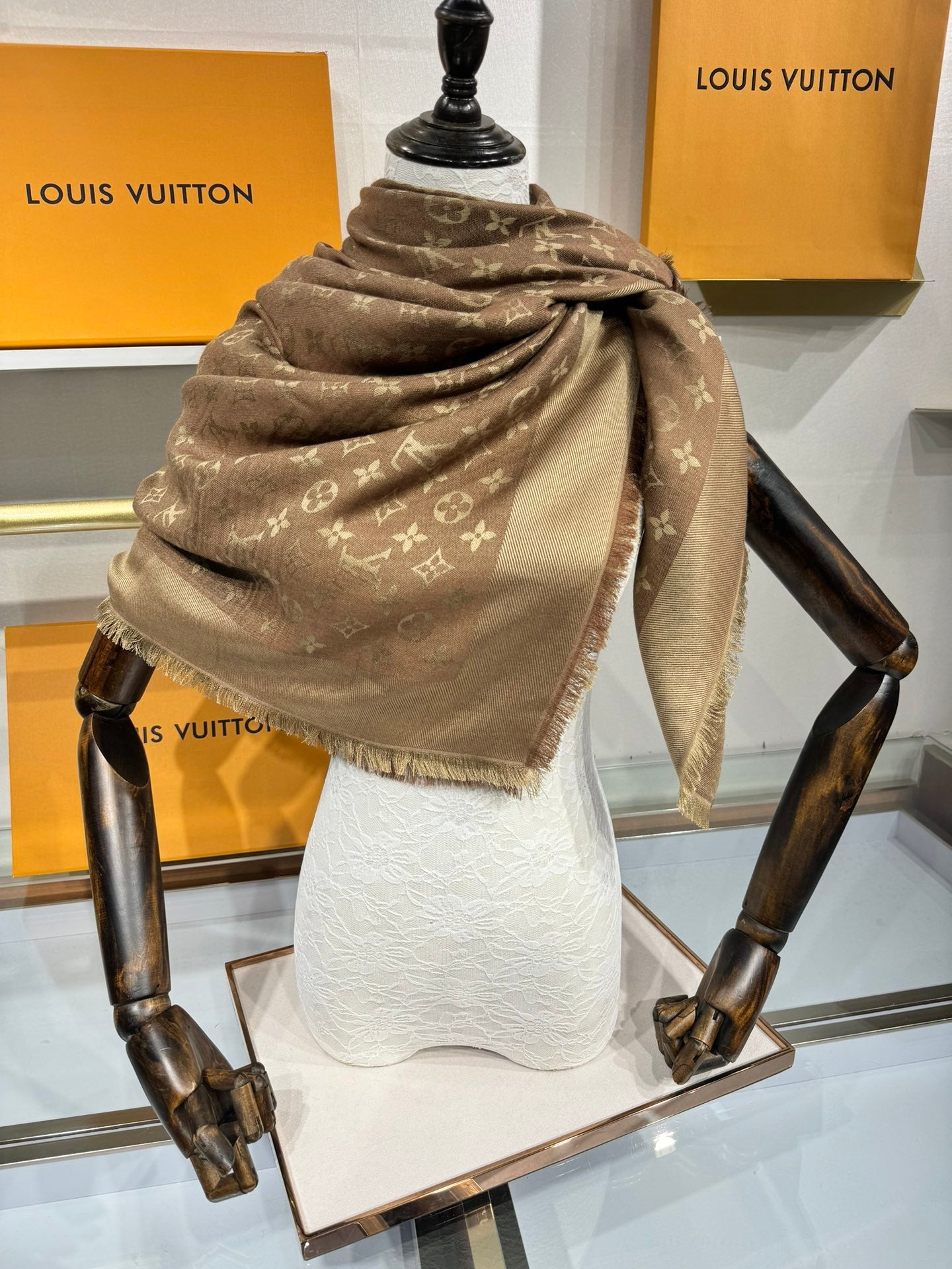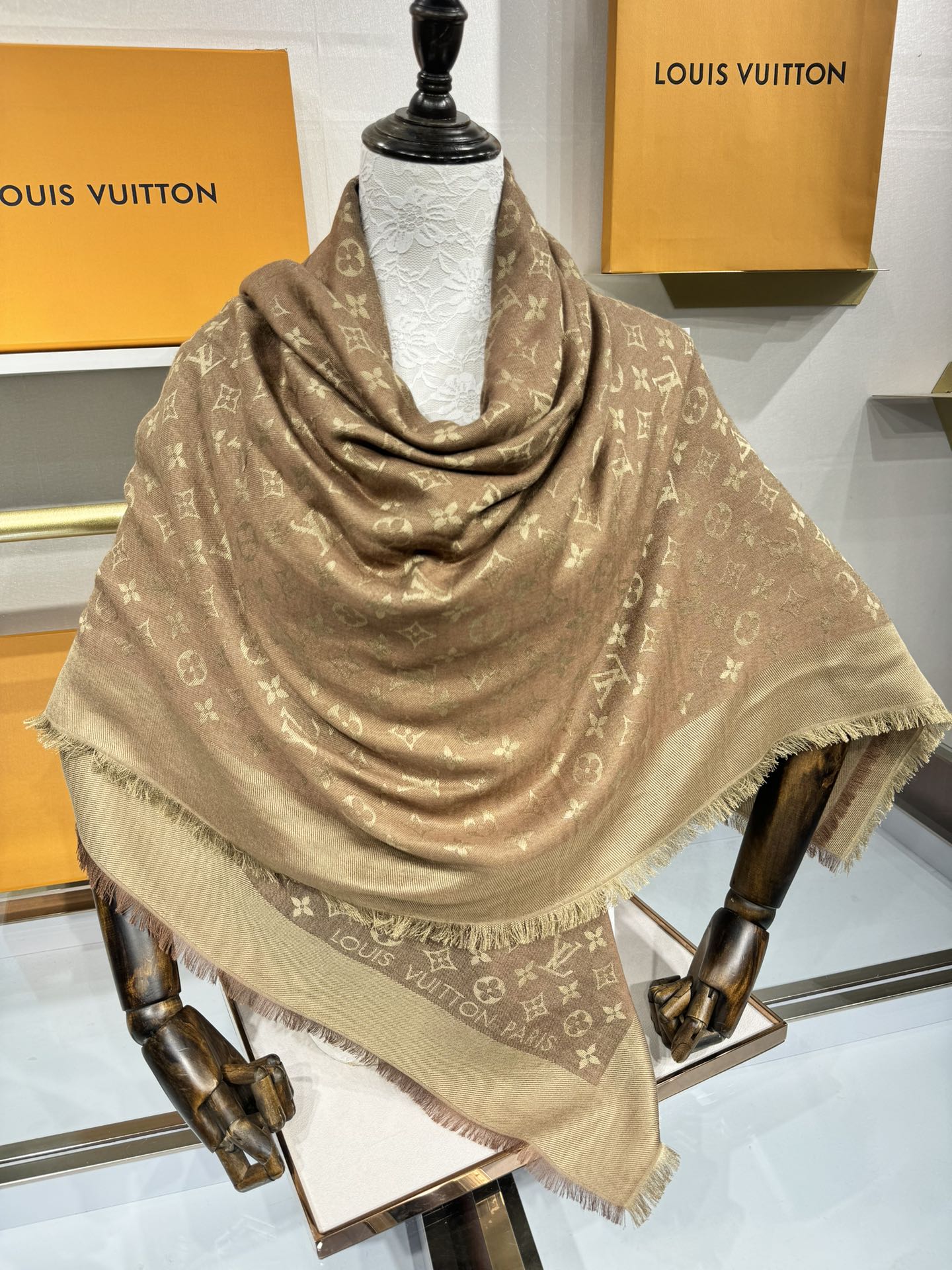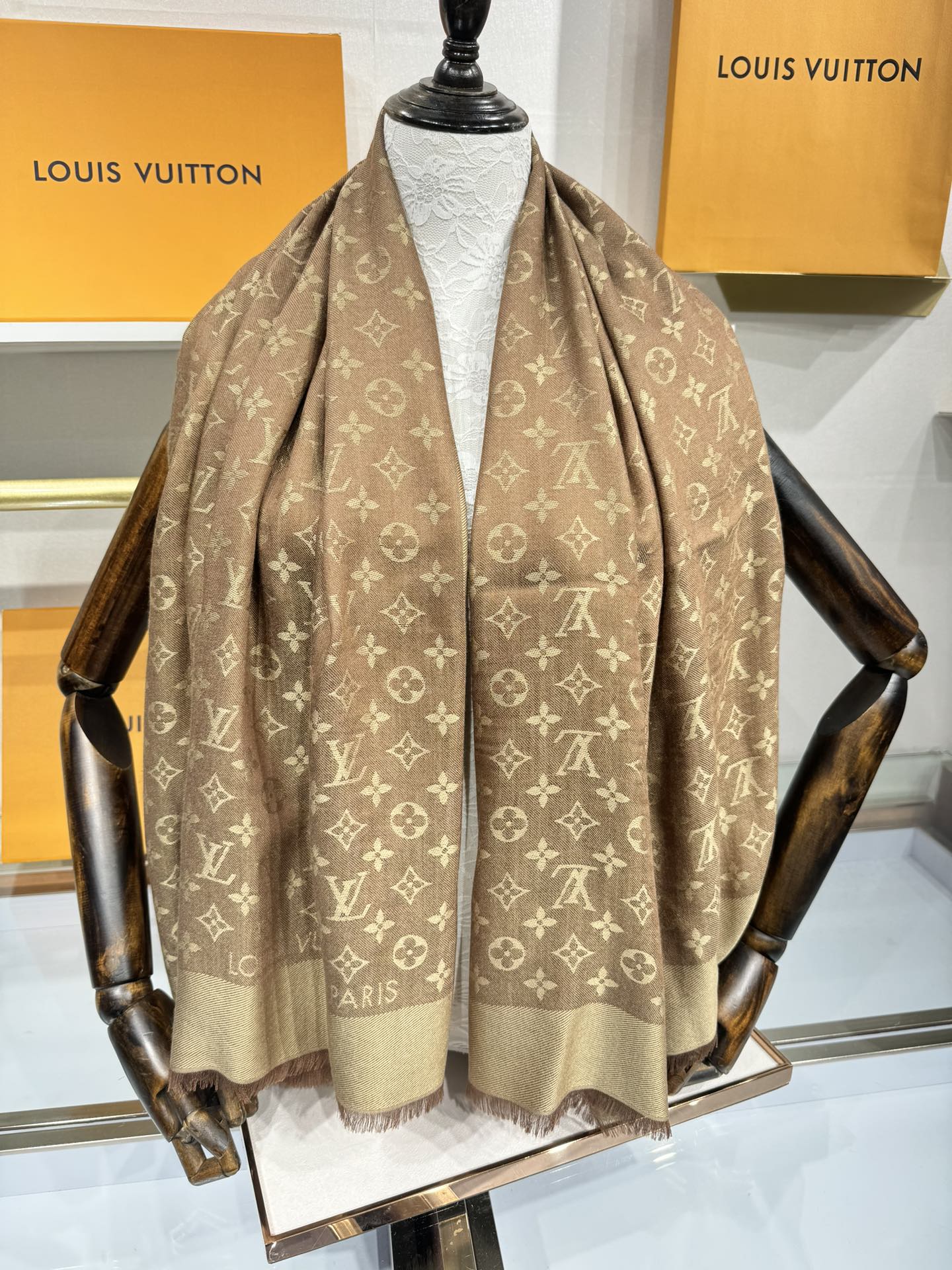 LV SCARF 140 CM IN WOOL MIX SILK 693014