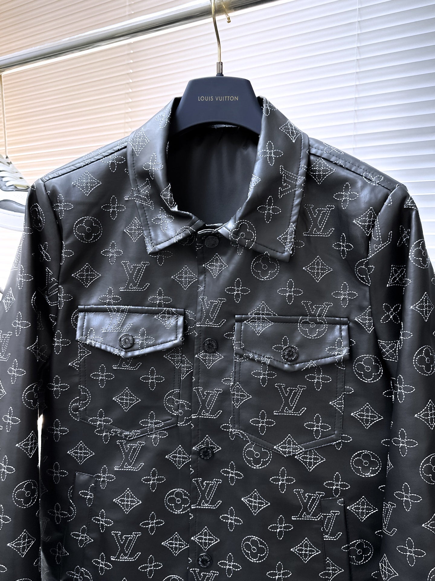 LV SHIRT JACKET IN BLACK MONOGRAM EMBROIDERED CALFSKIN 239119