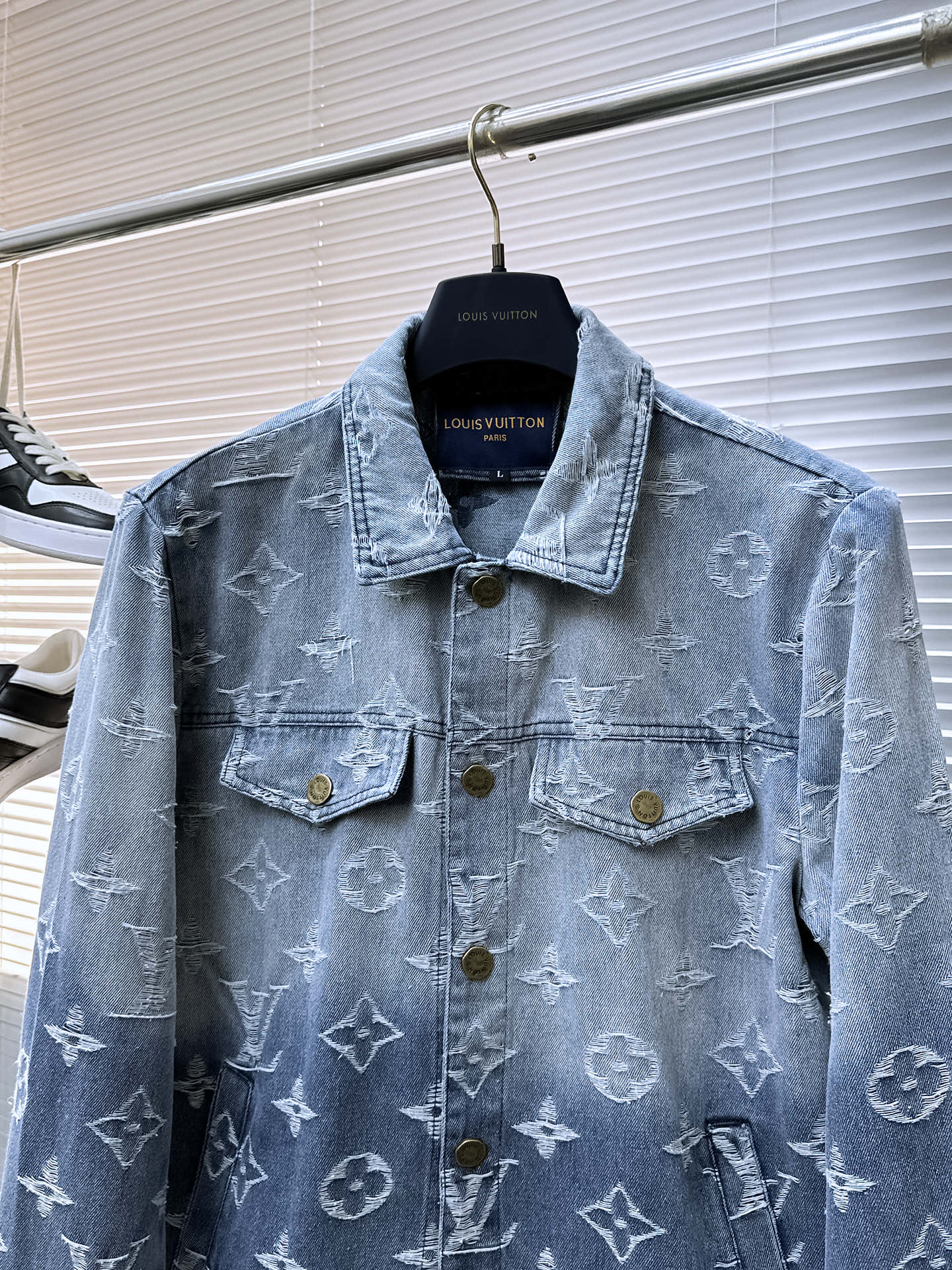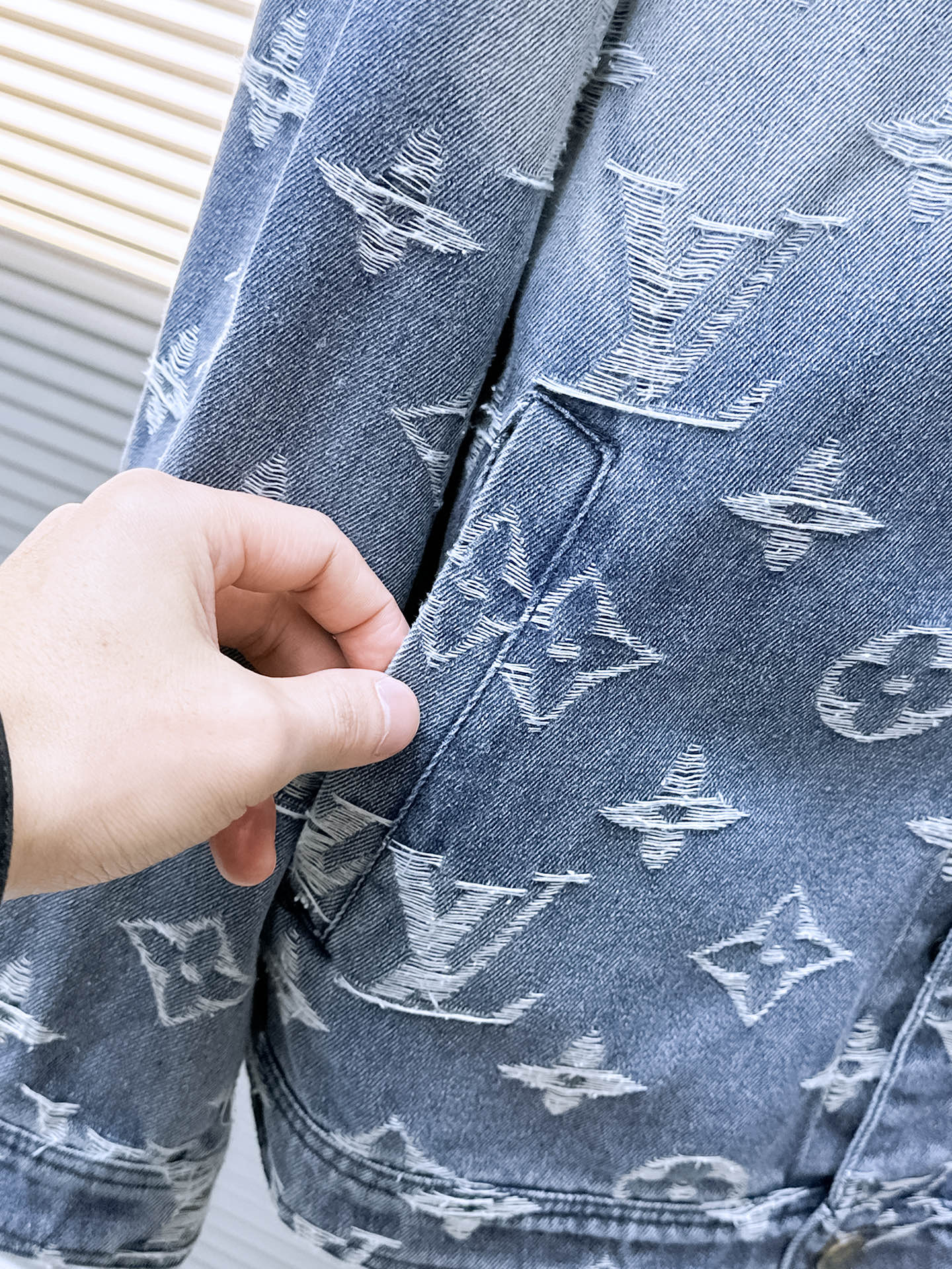 LV SHIRT JACKET IN LIGHT BLUE RIPPED MONOGRAM DENIM 239123