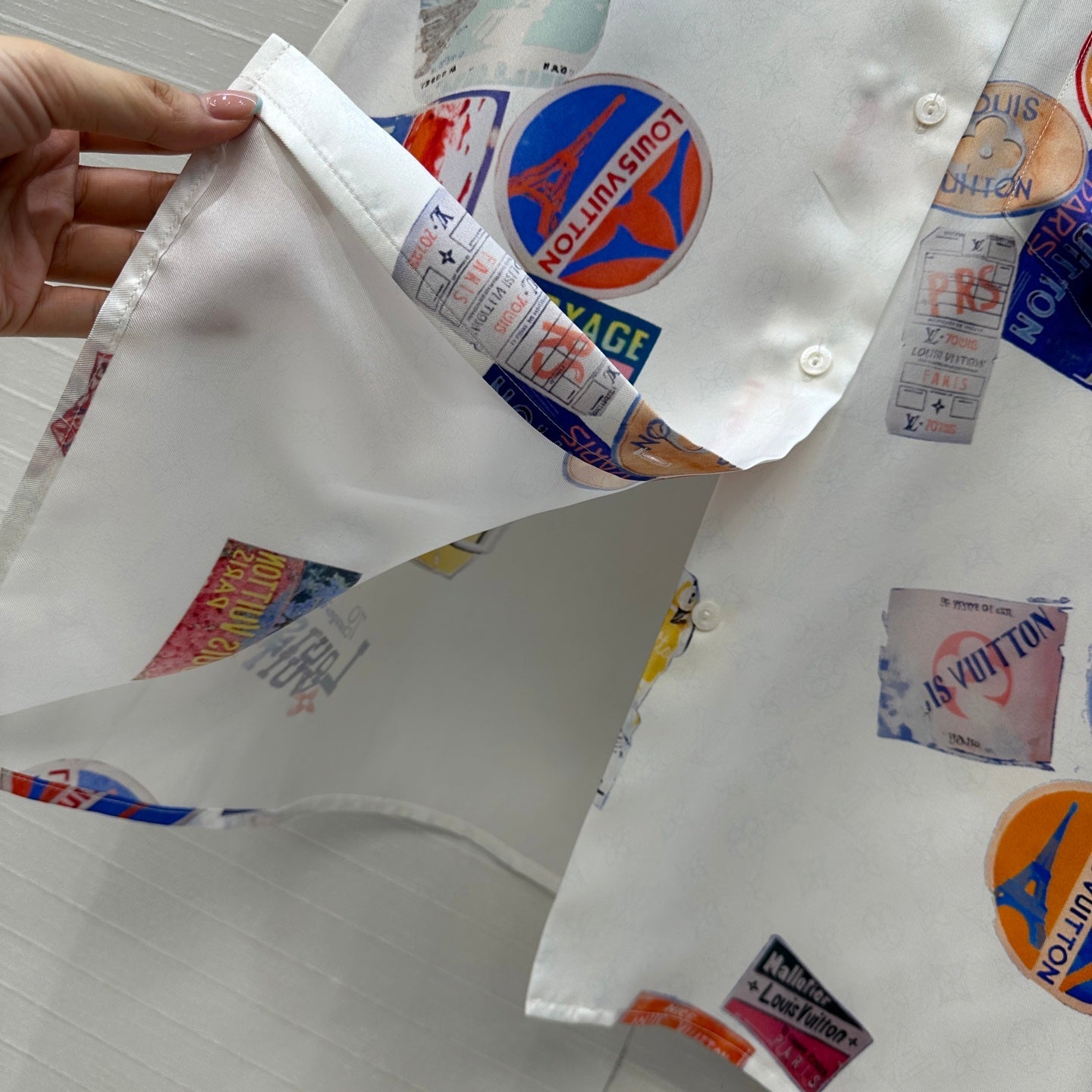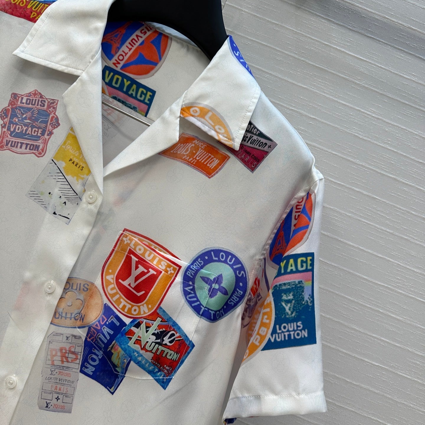 LV SHORT-SLEEVE PRINTED SILK BLOUSE 268226