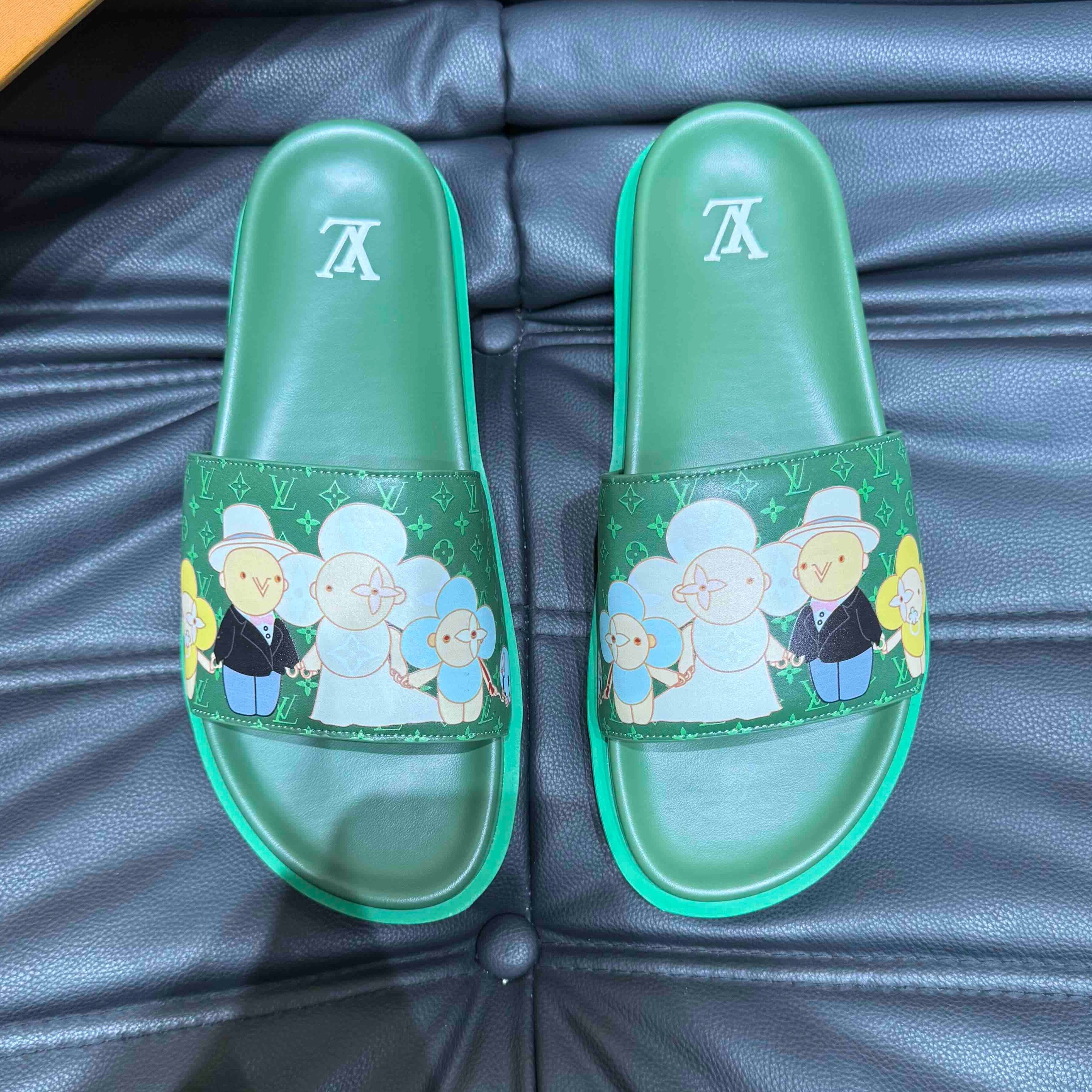 LV SLIPPERS IN SEA GREEN MONOGRAM CALFSKIN