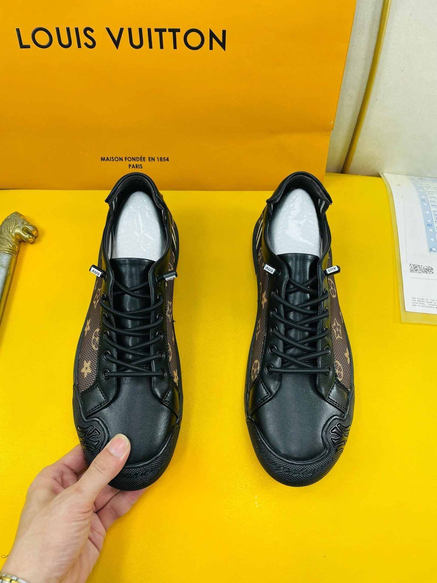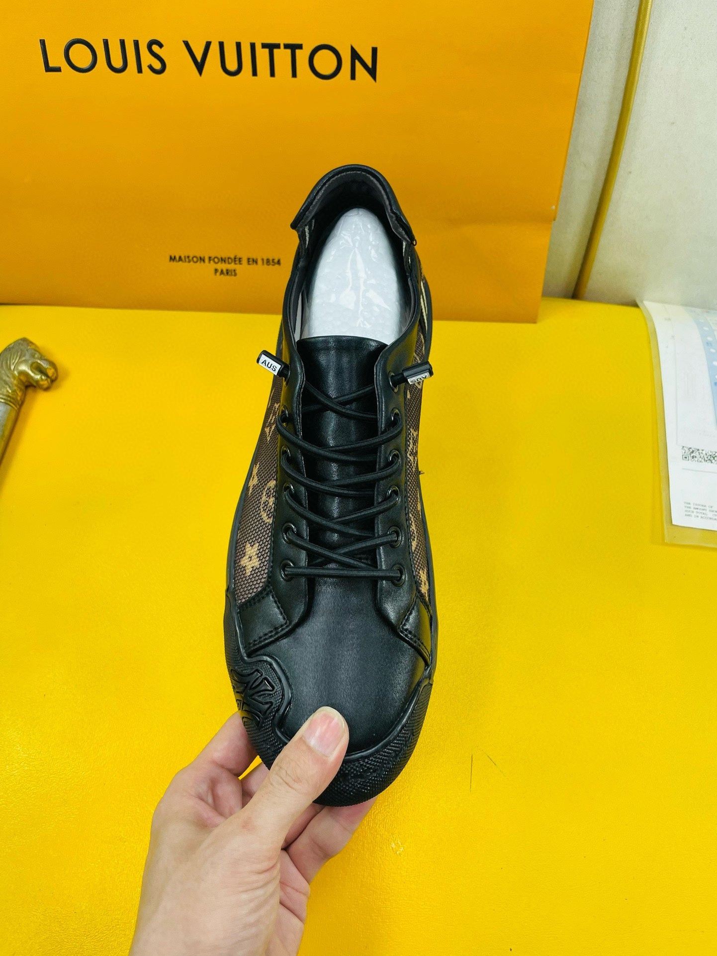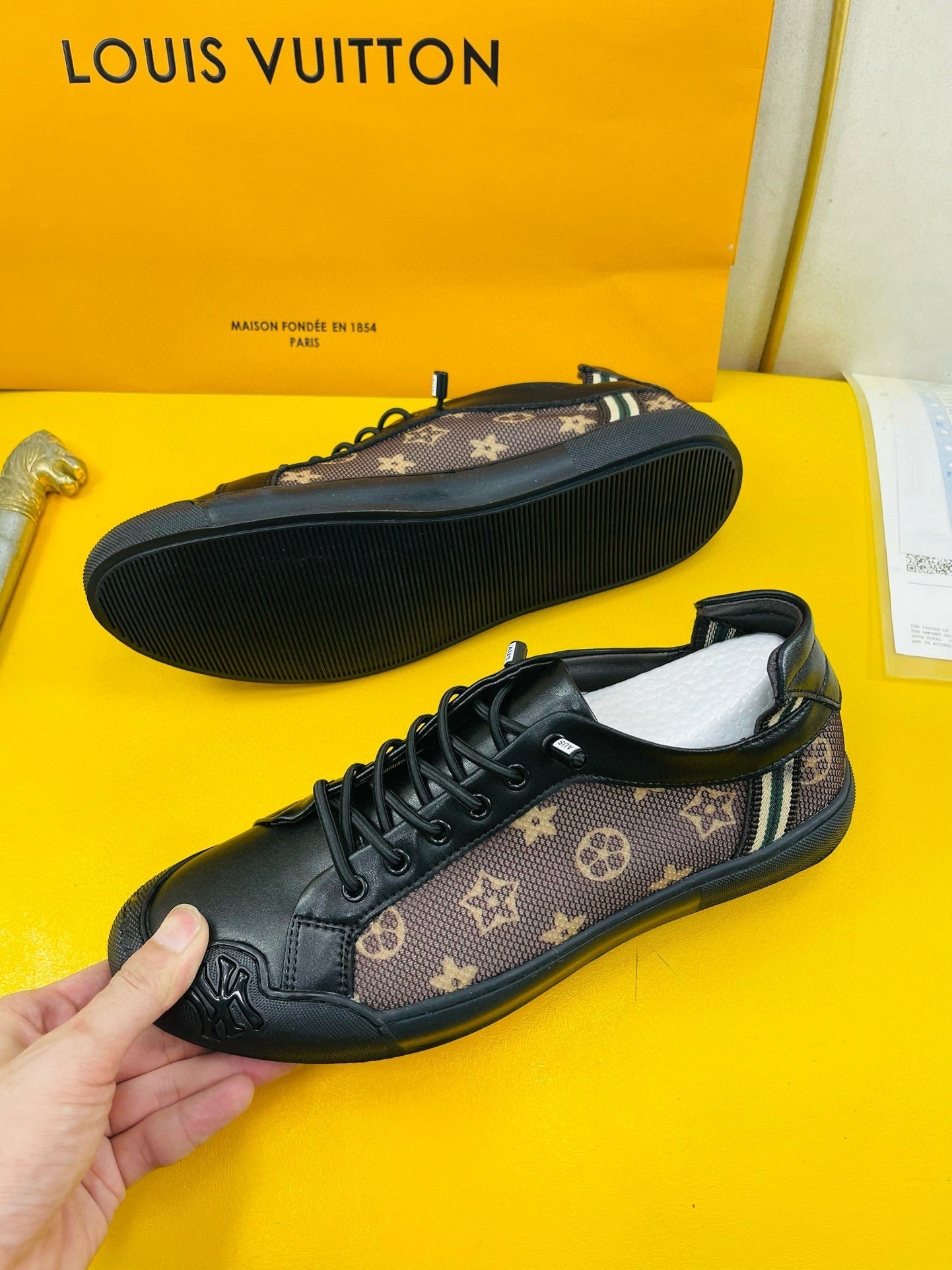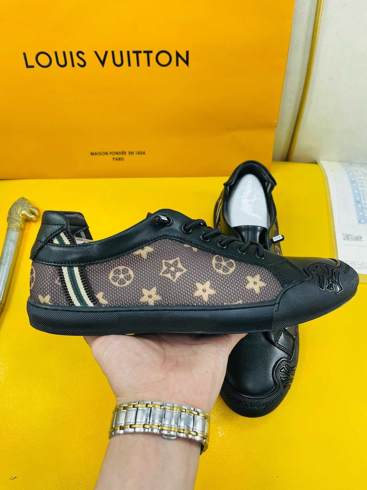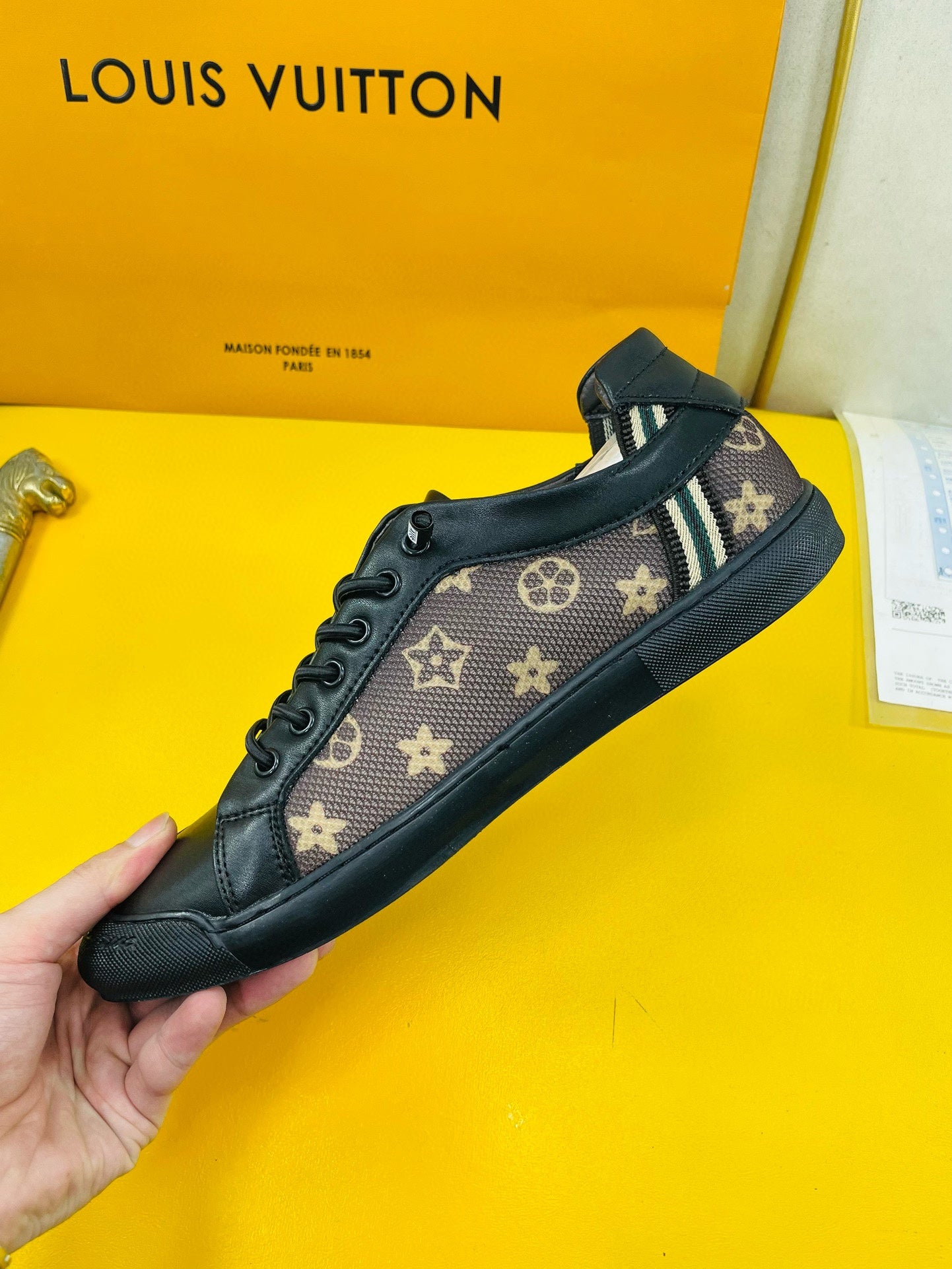 LV SNEAKER BROWN MONOGRAM JACQUARD AND BLACK CALFSKIN