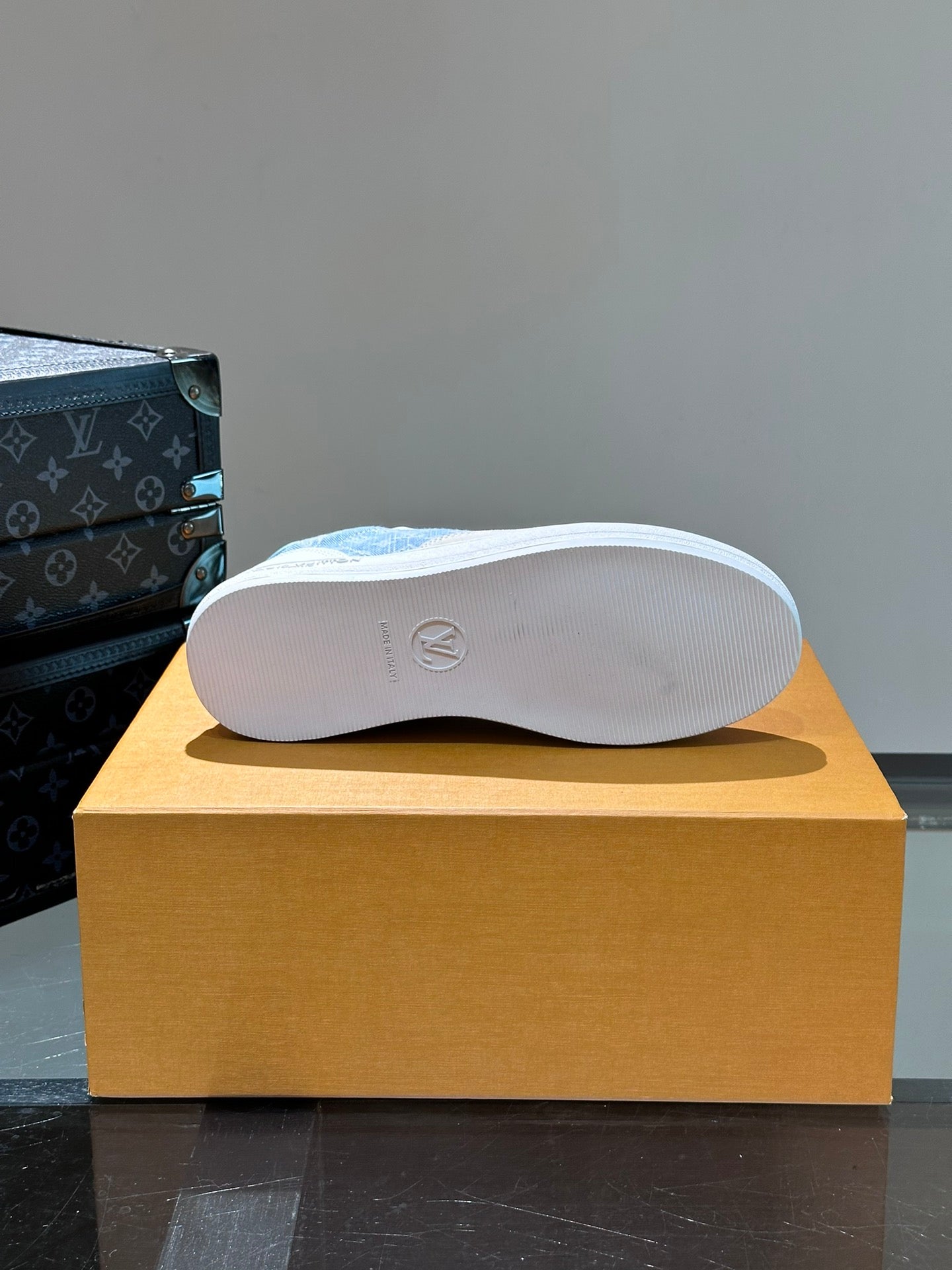 LV SNEAKER WHITE SUEDE CALFSKIN MIX BLUE DENIM