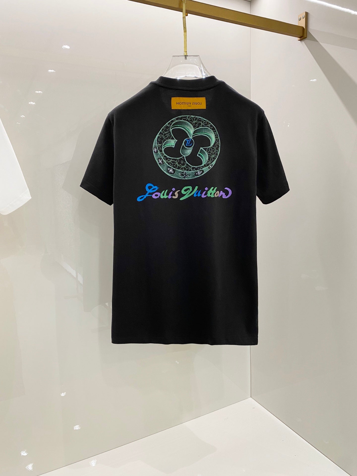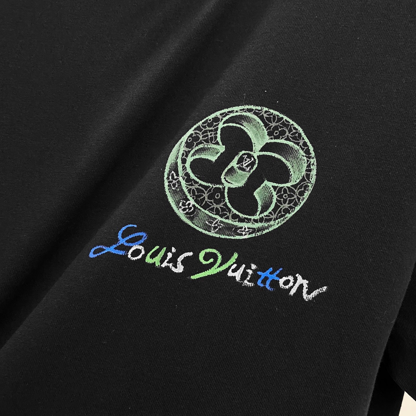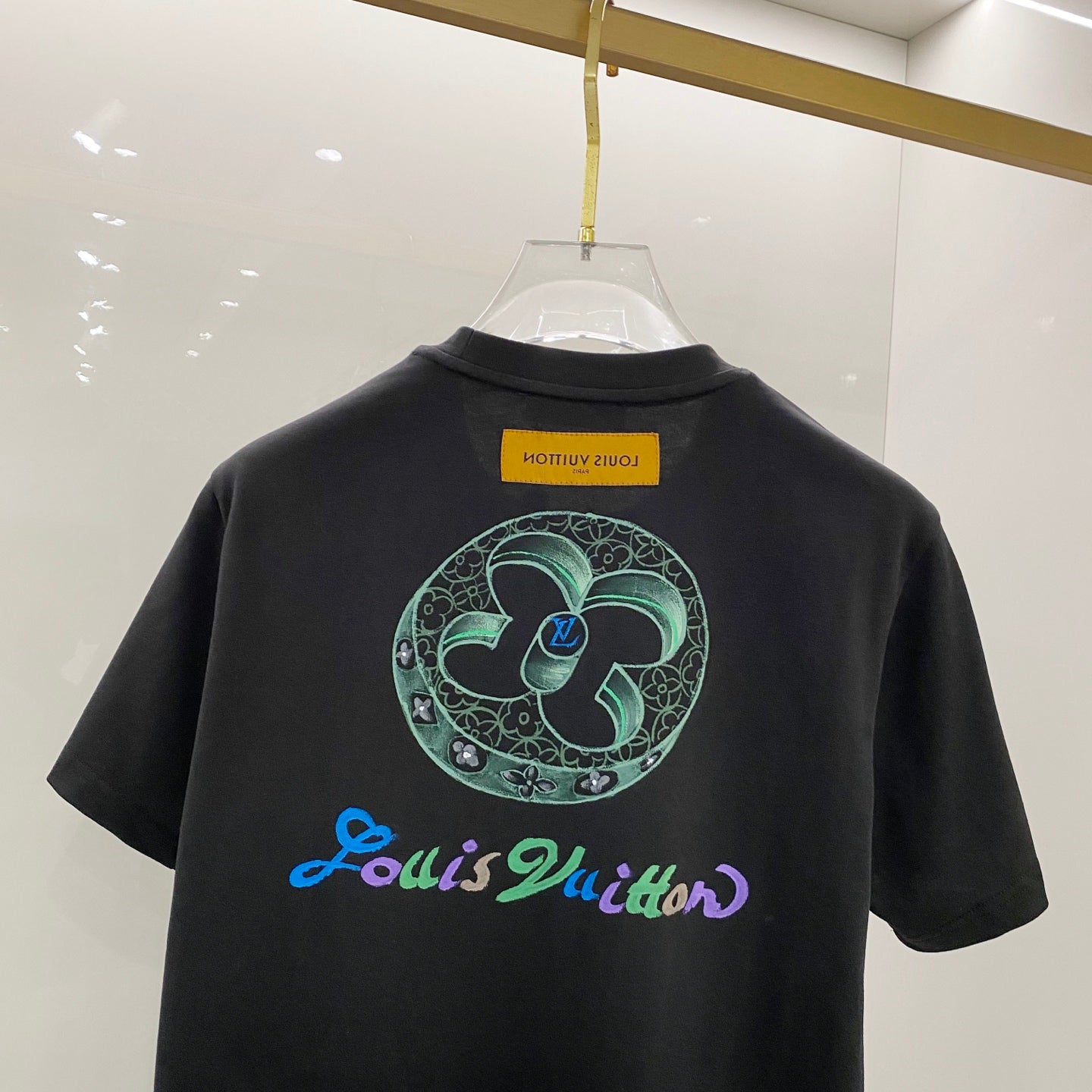 LV T-SHIRT BLACK COTTON HAND-PAINTED LOGO 238850