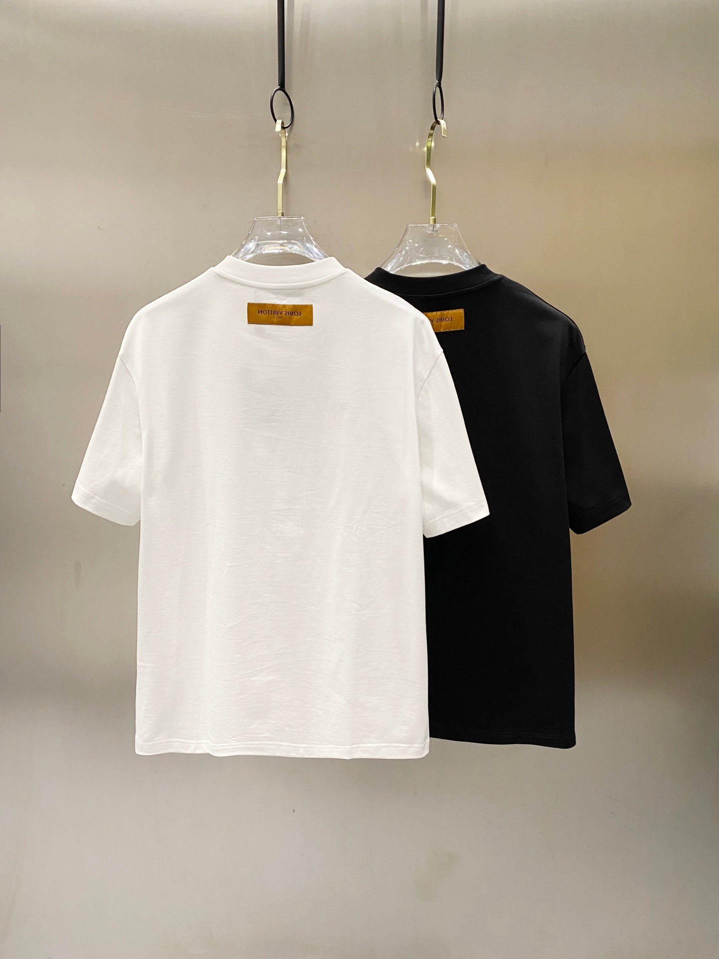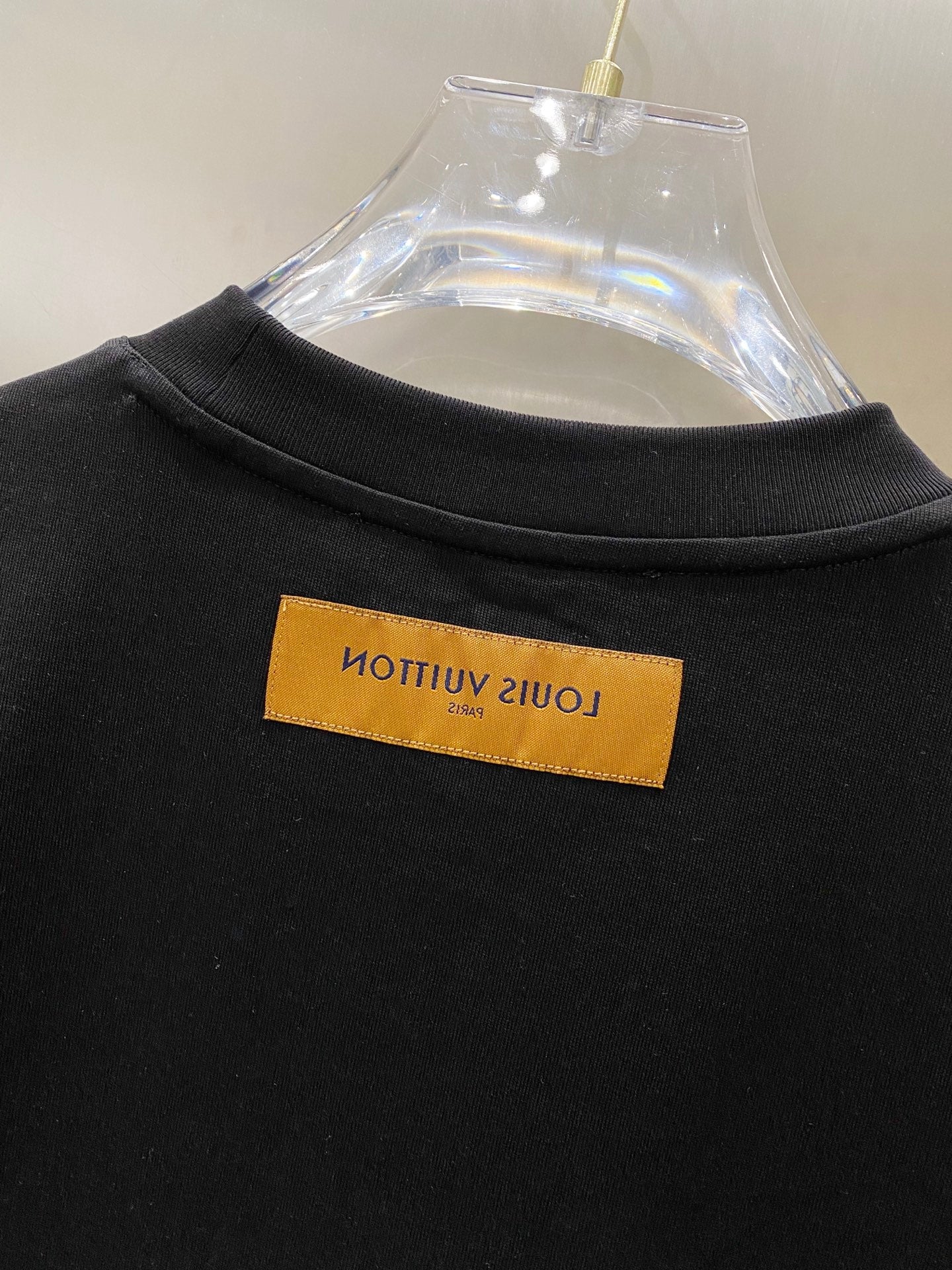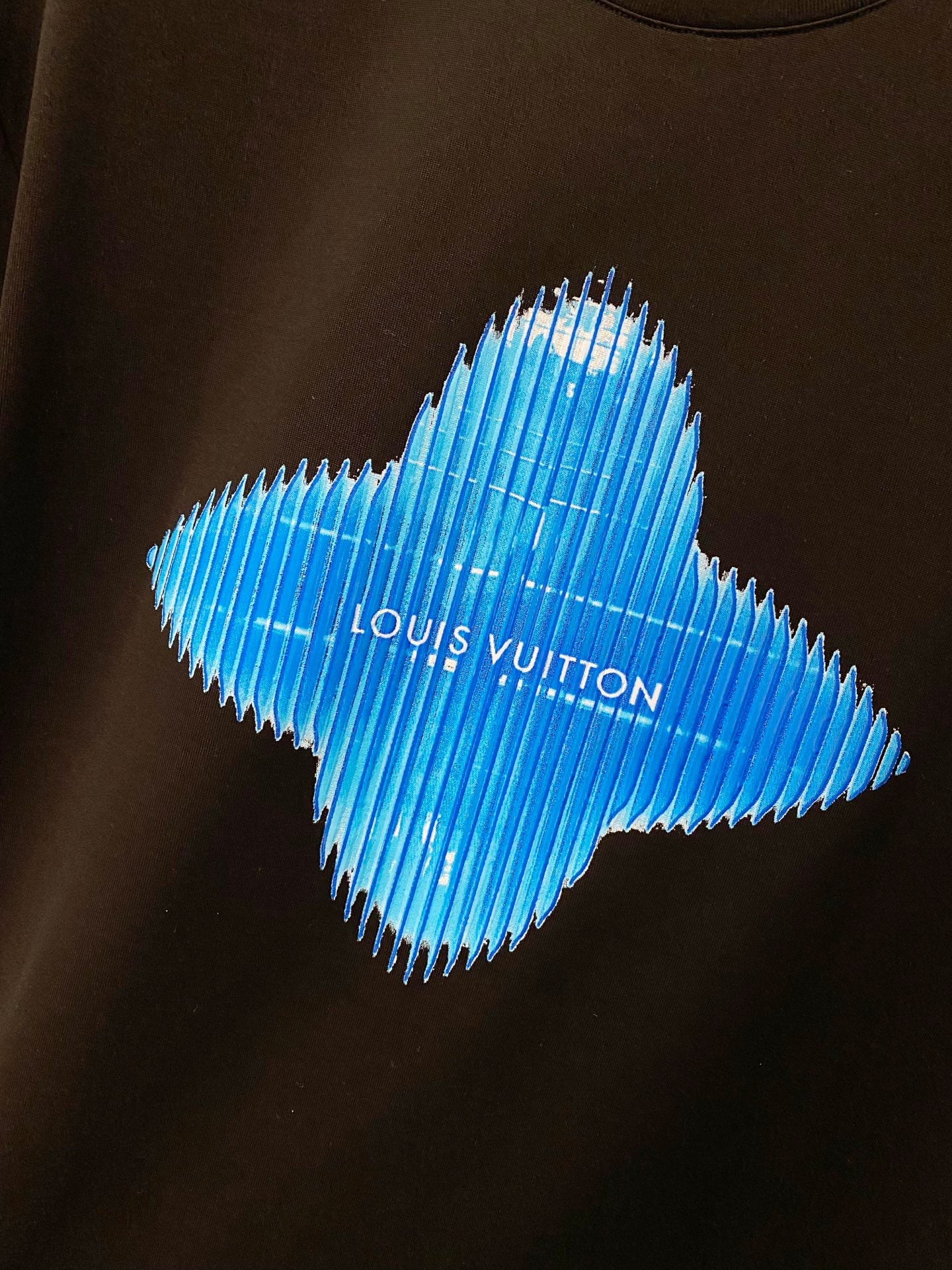 LV T-SHIRT IN BLACK COTTON BLUE LOGO PRINT 238836