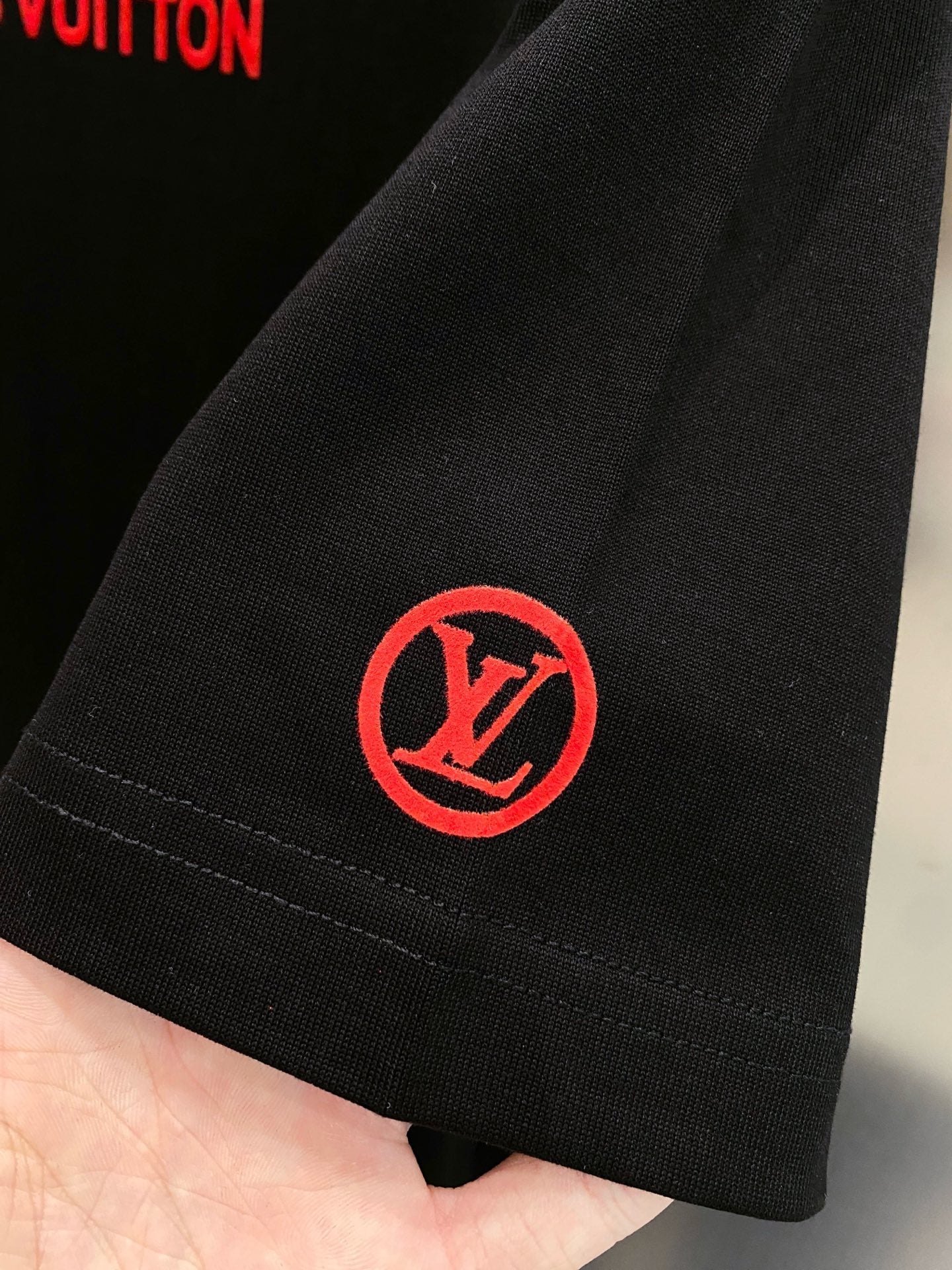 LV T-SHIRT IN BLACK COTTON RED LOGO 238833