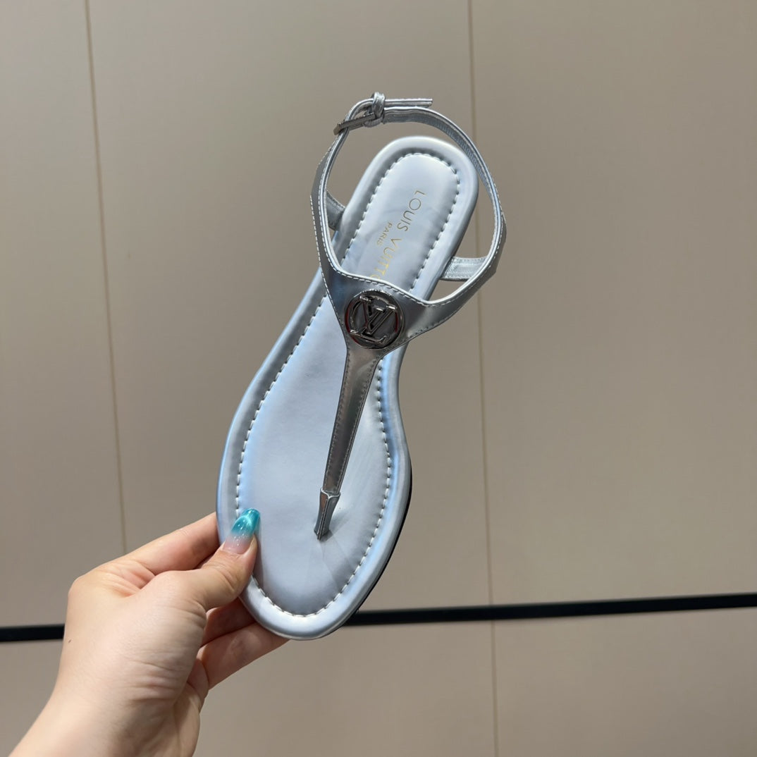 LV THONG SANDALS 25S IN SILVER CALFSKIN WITH SILVER HARDWARE