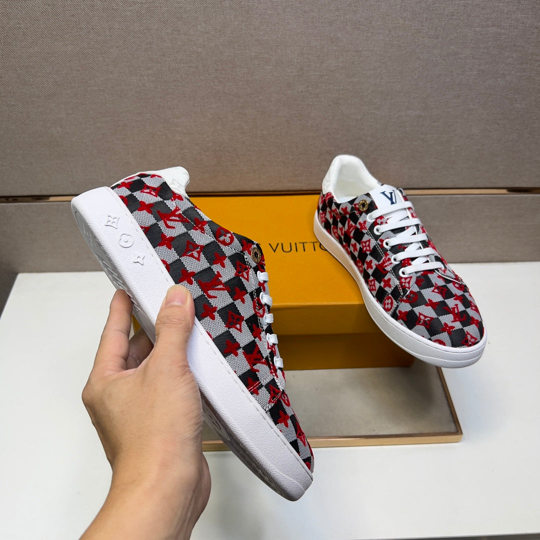 LV TRAINER BLACK MIX RED AND GREY DAMIER BREATHABLE FABRIC