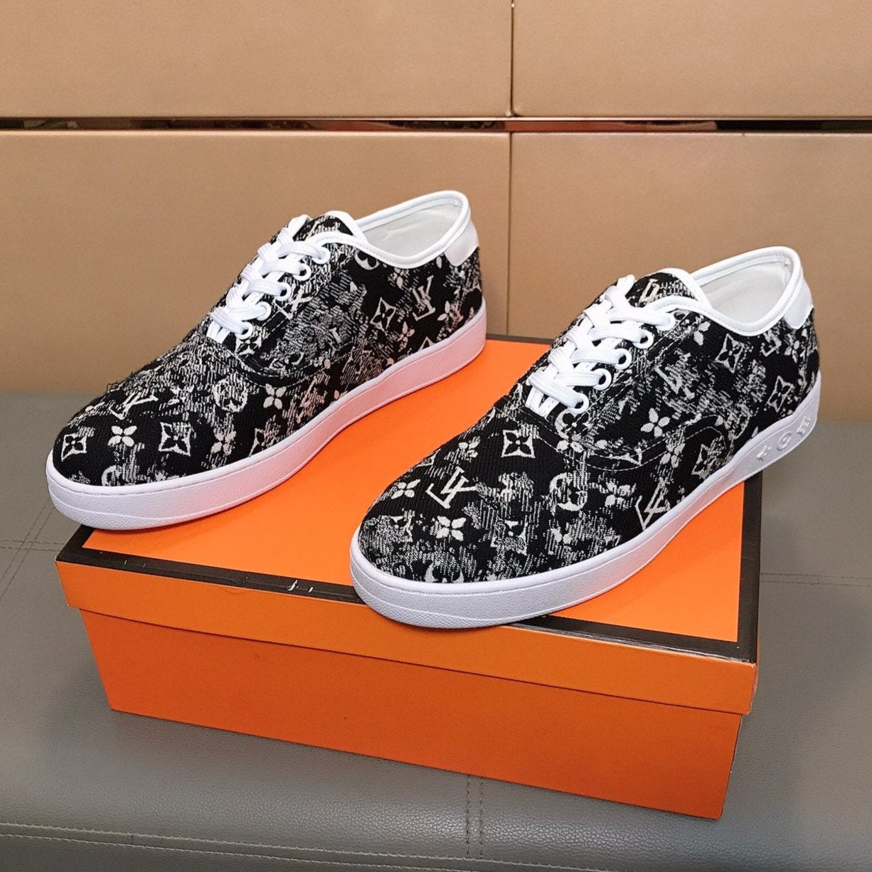 LV TRAINER BLACK MIX WHITE MONOGRAM JACQUARD
