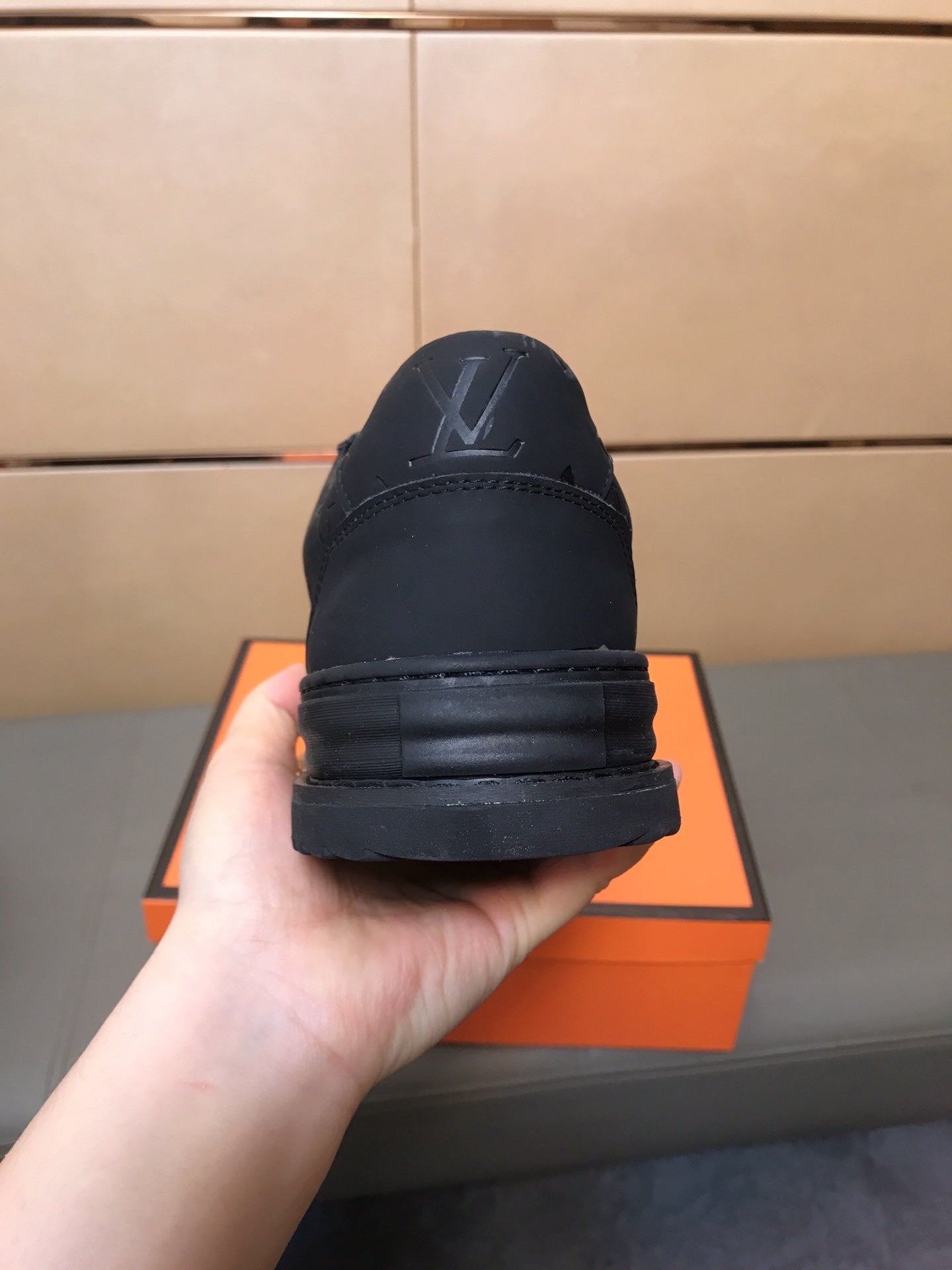 LV TRAINER IN EMBOSSED BLACK SUEDE