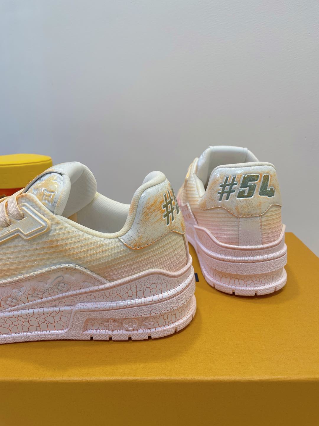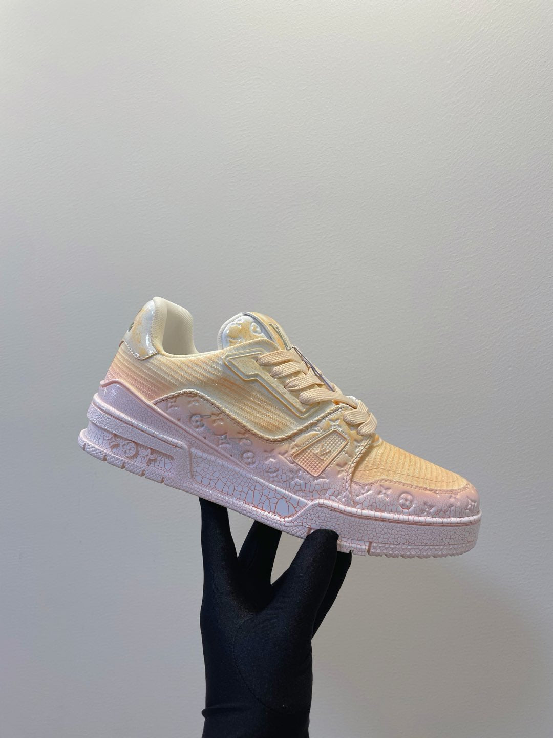 LV TRAINER MAXI SNEAKER IN LIGHT PINK OMBRE ORANGE EMBOSSED CALFSKIN