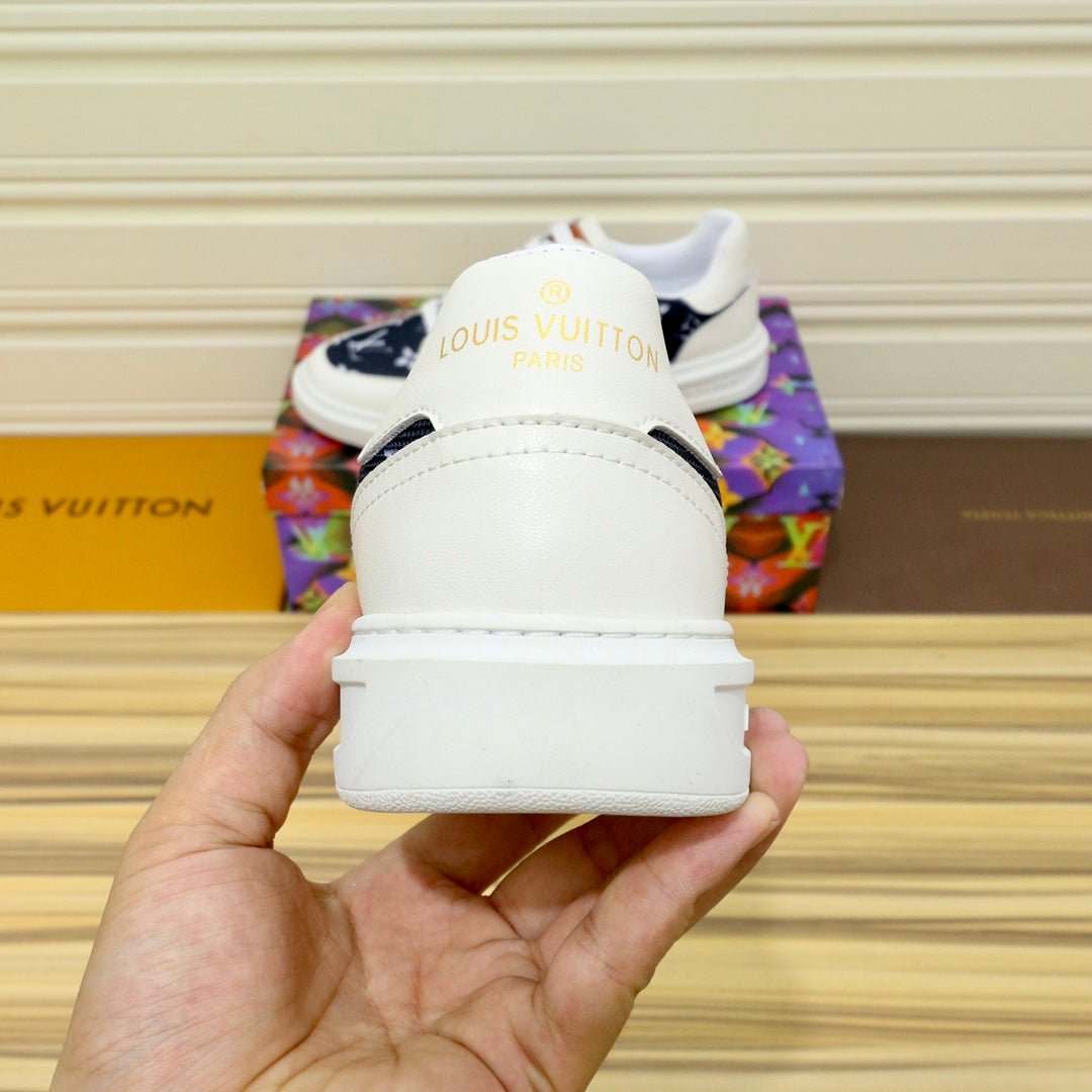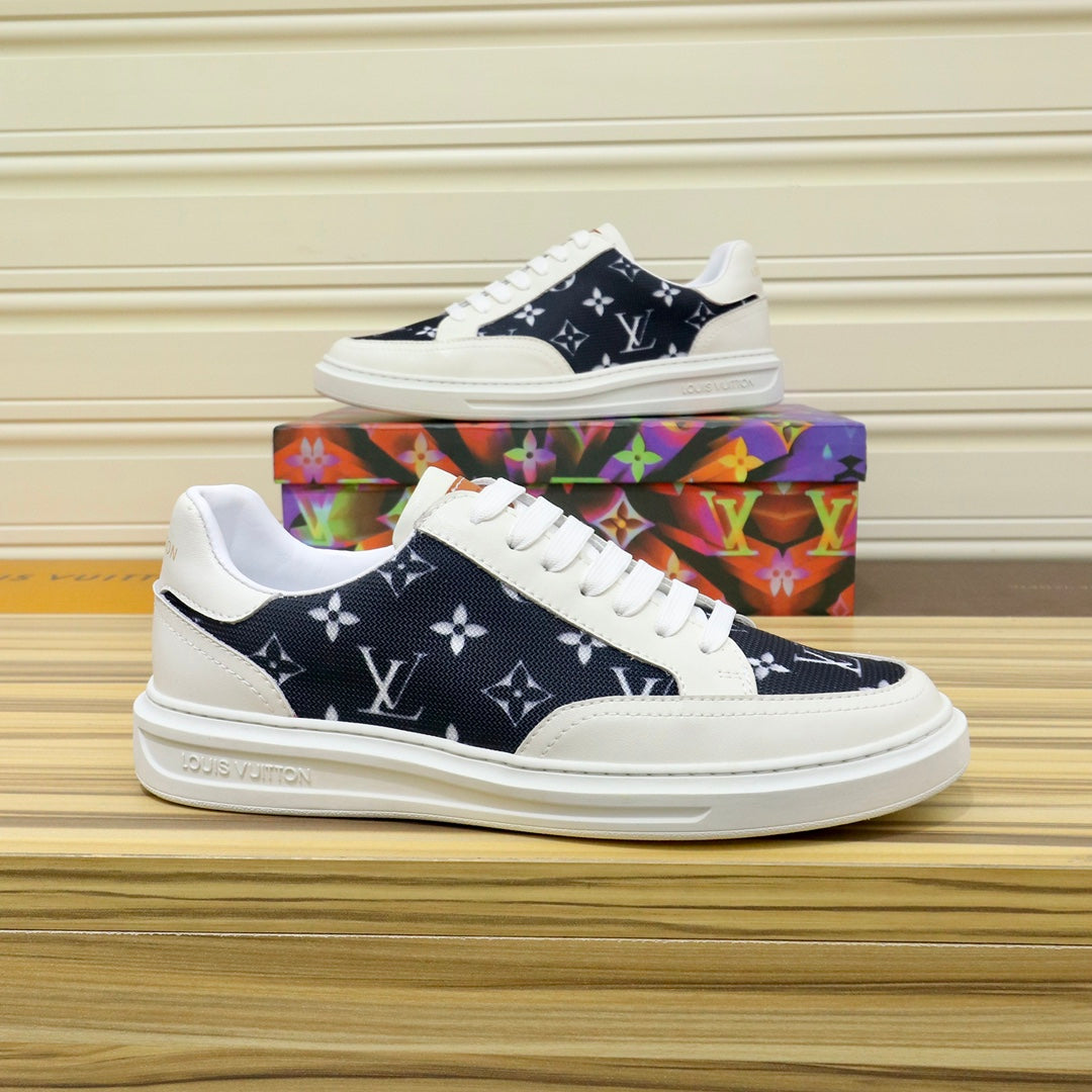 LV TRAINER SHOES BLACK MONOGRAM JACQUARD AND WHITE CALFSKIN