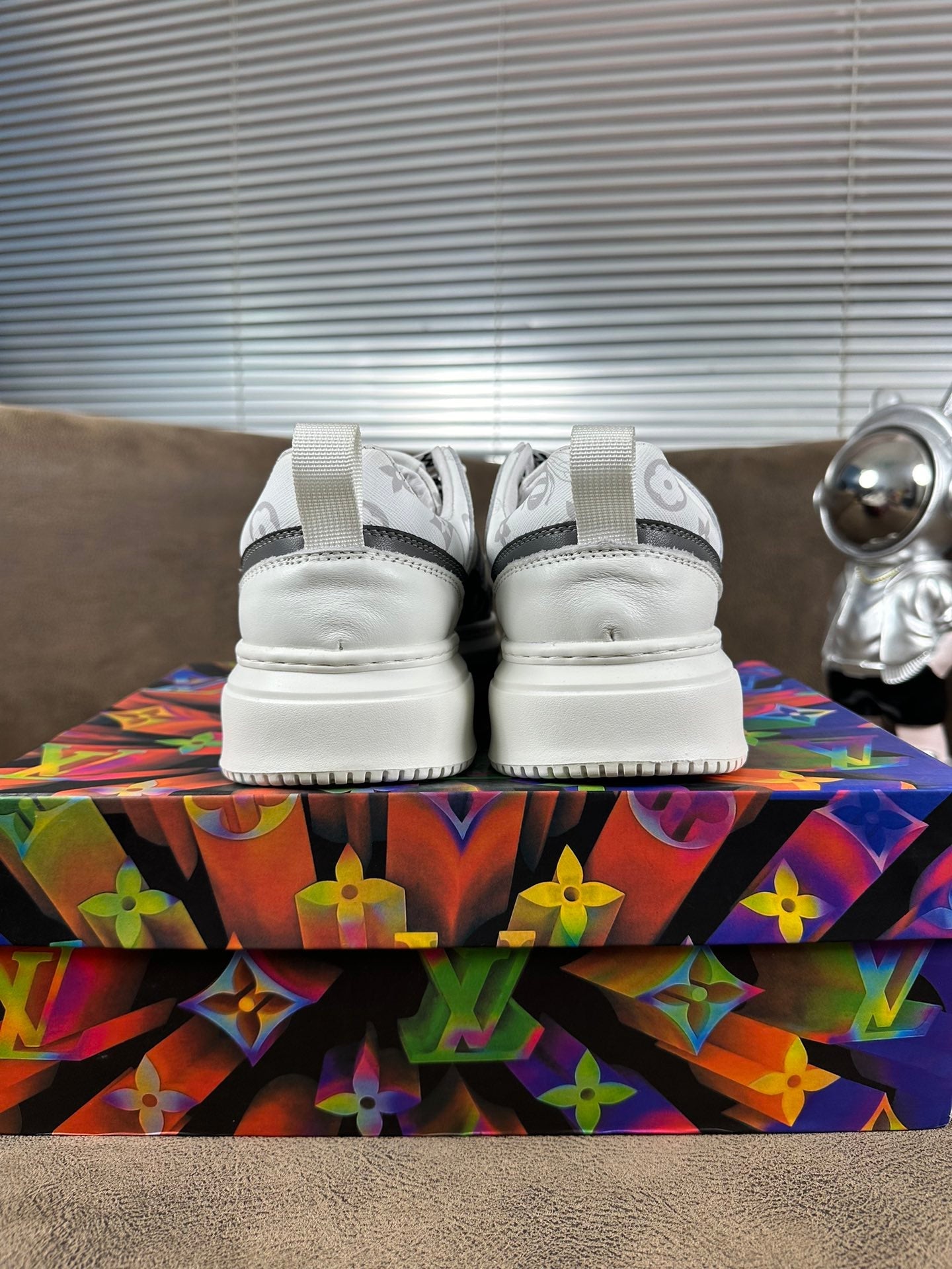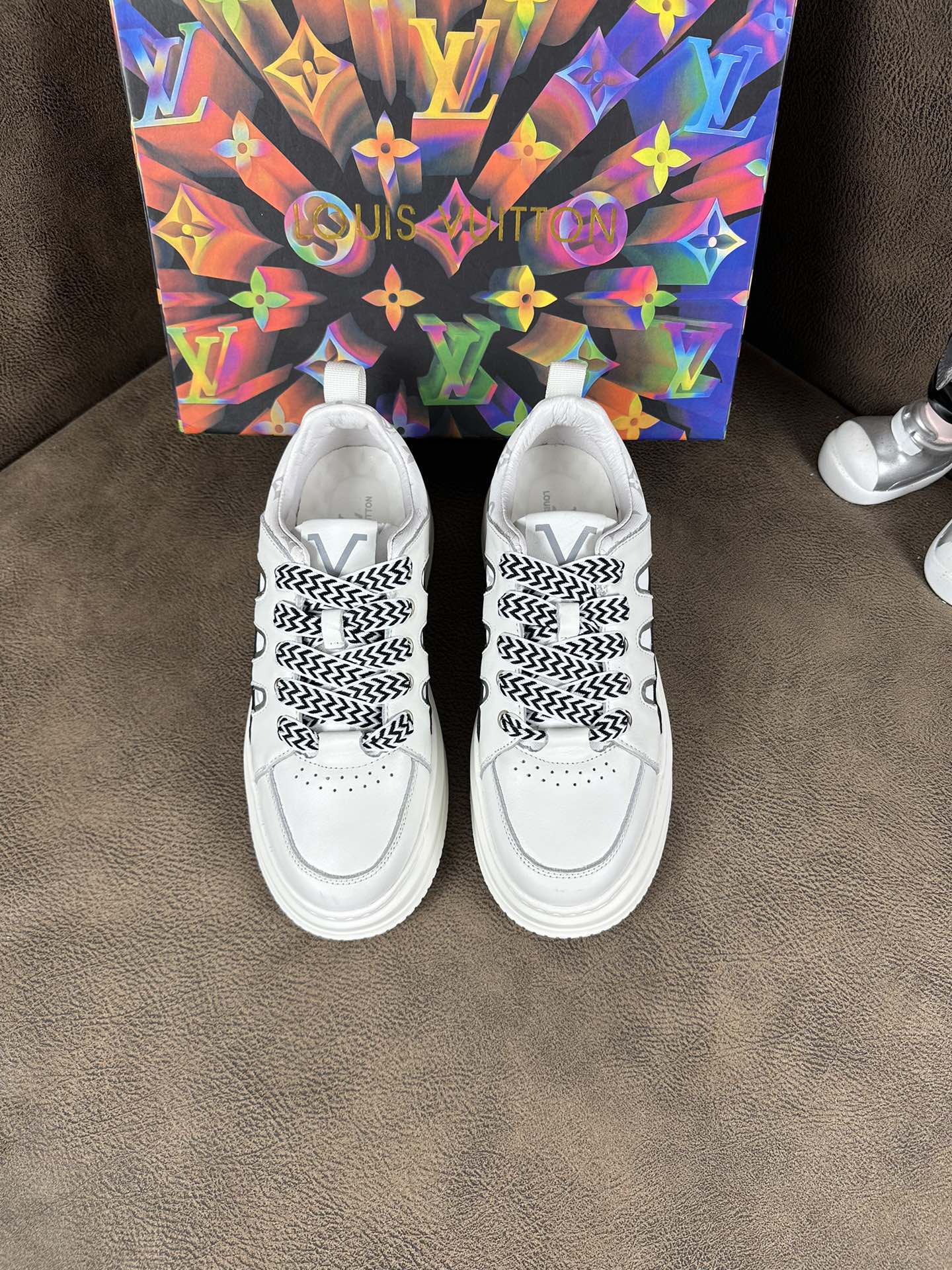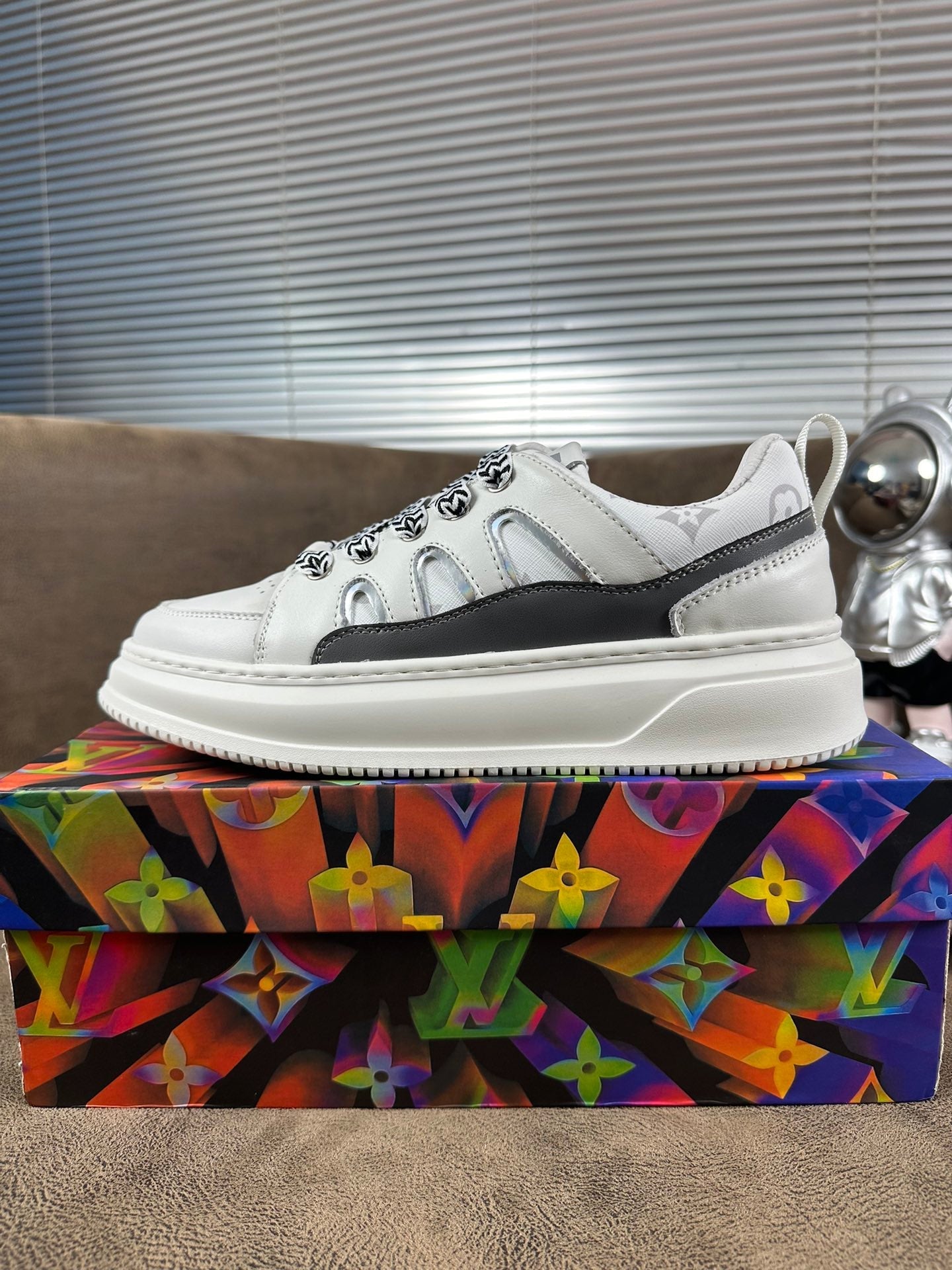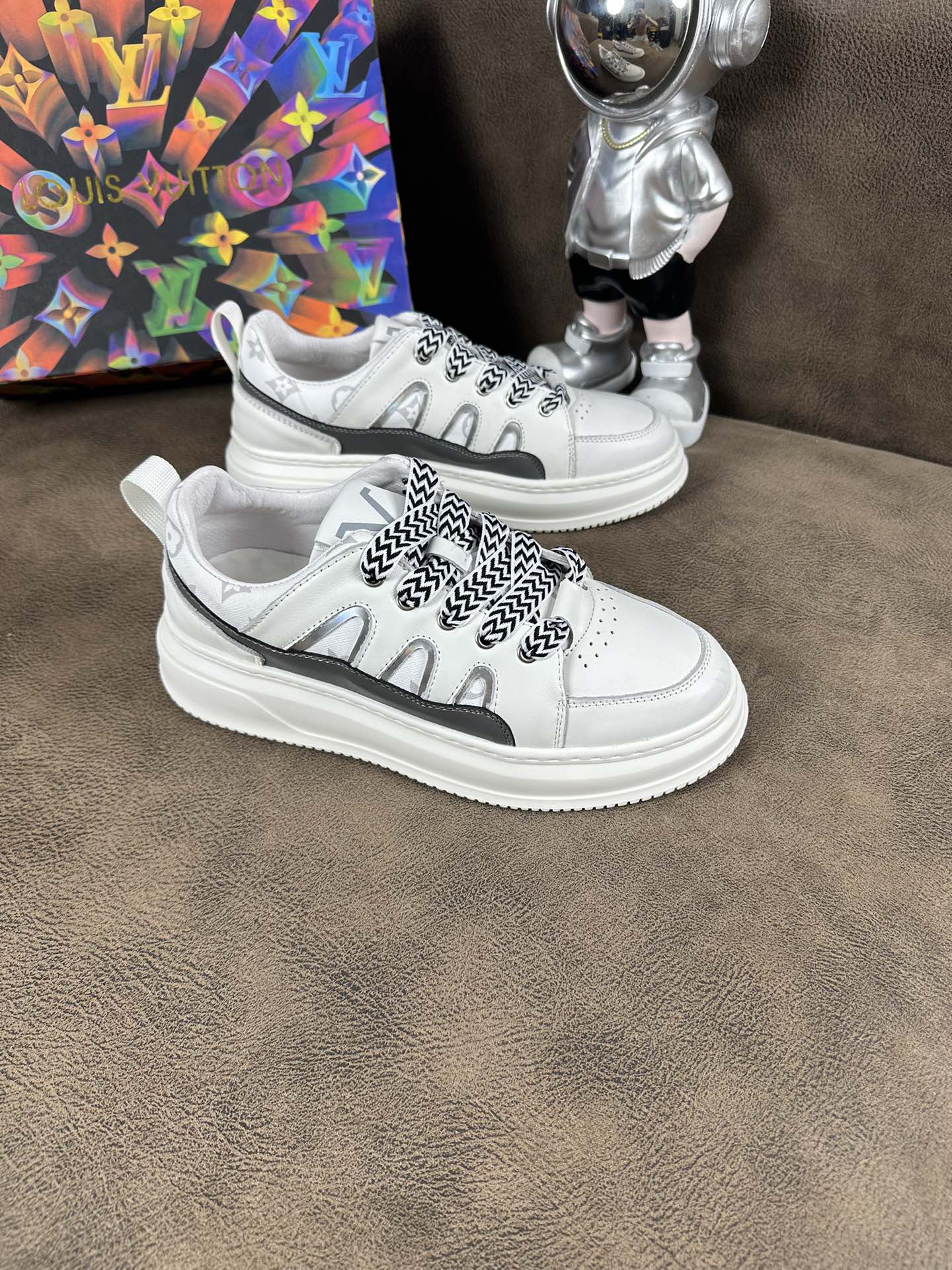 LV TRAINER SHOES IN WHITE MIX BLACK CALFSKIN