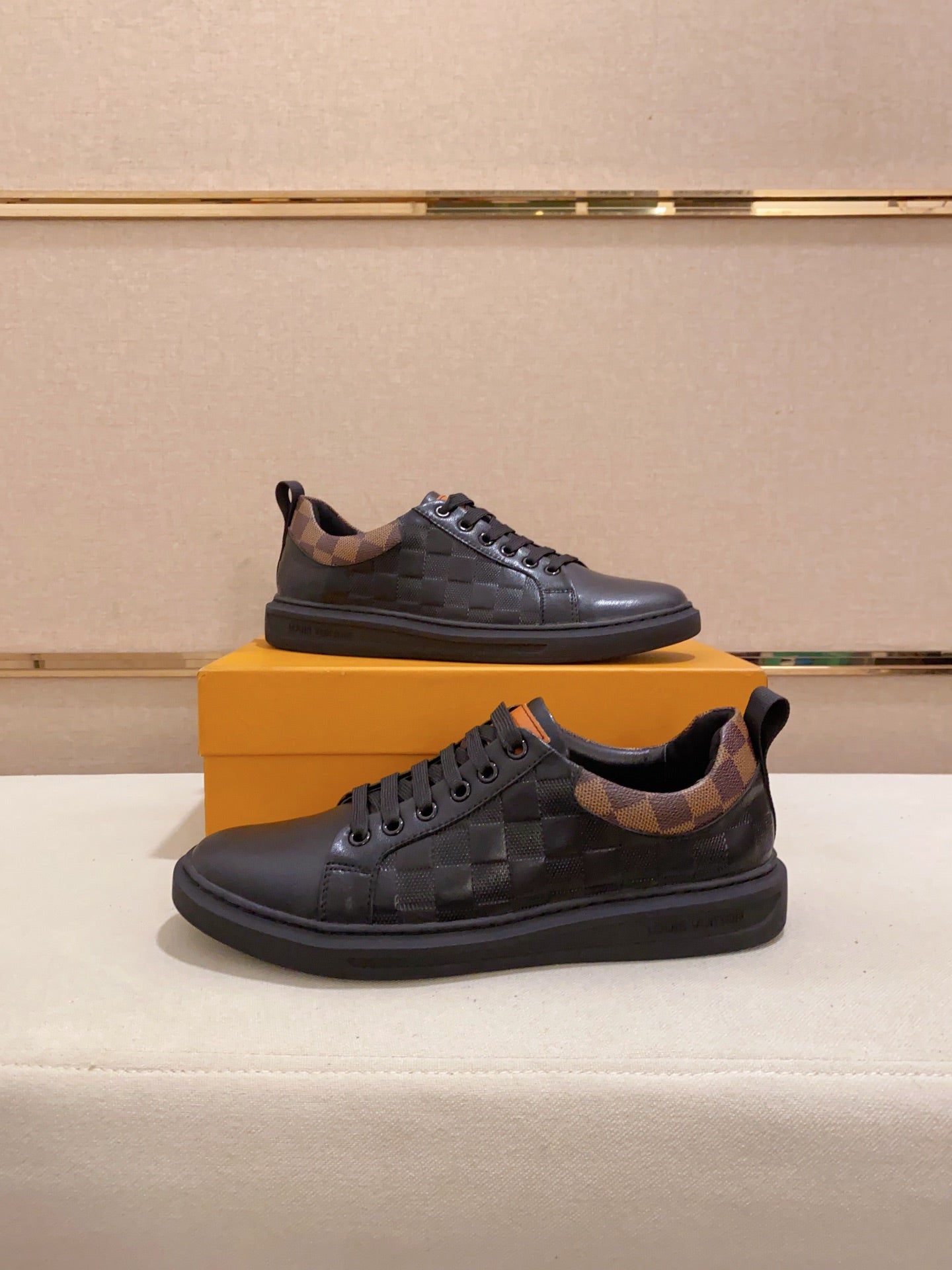 LV TRAINER SNEAKER BLACK DAMIER JACQUARD AND CALFSKIN