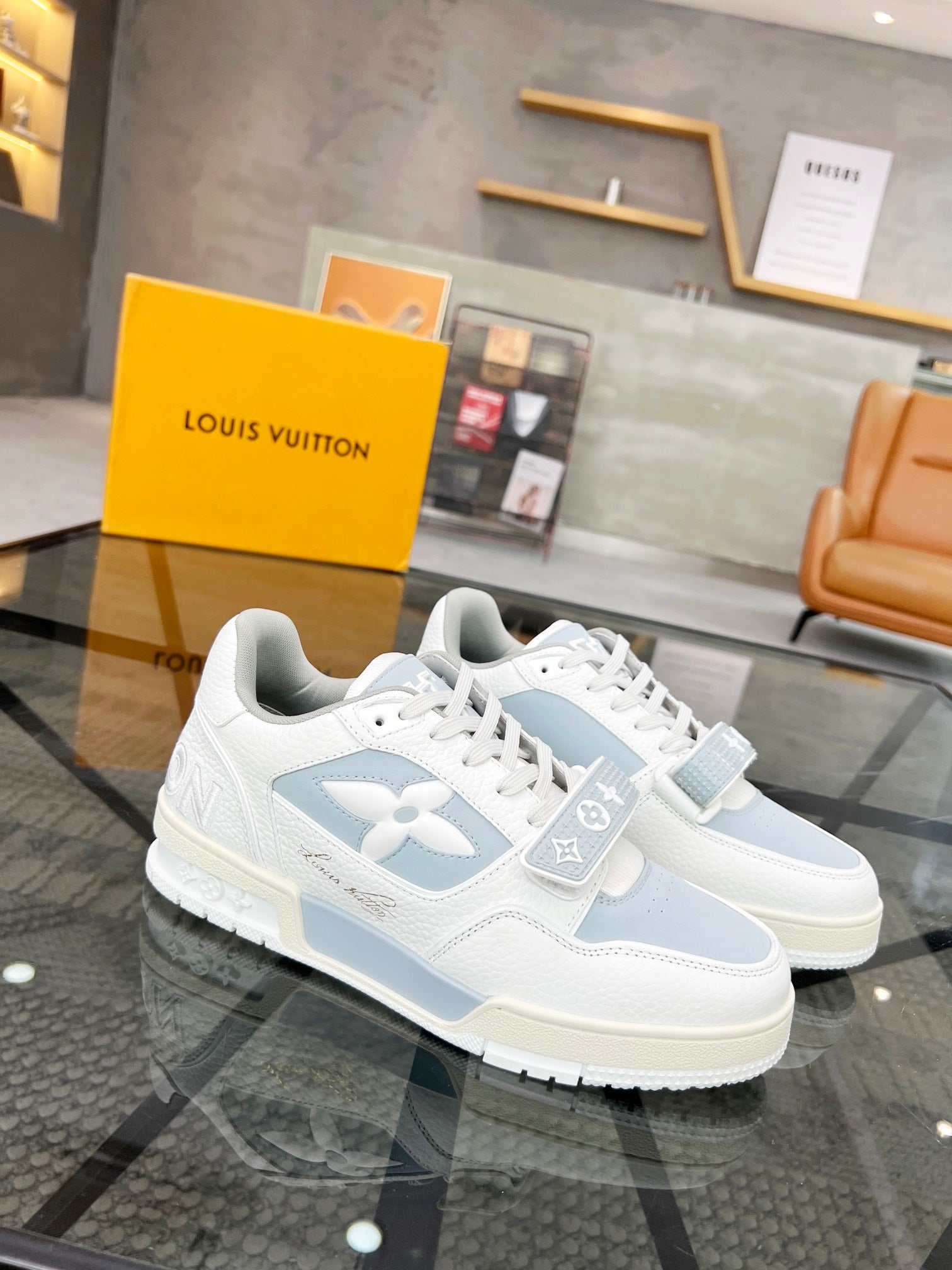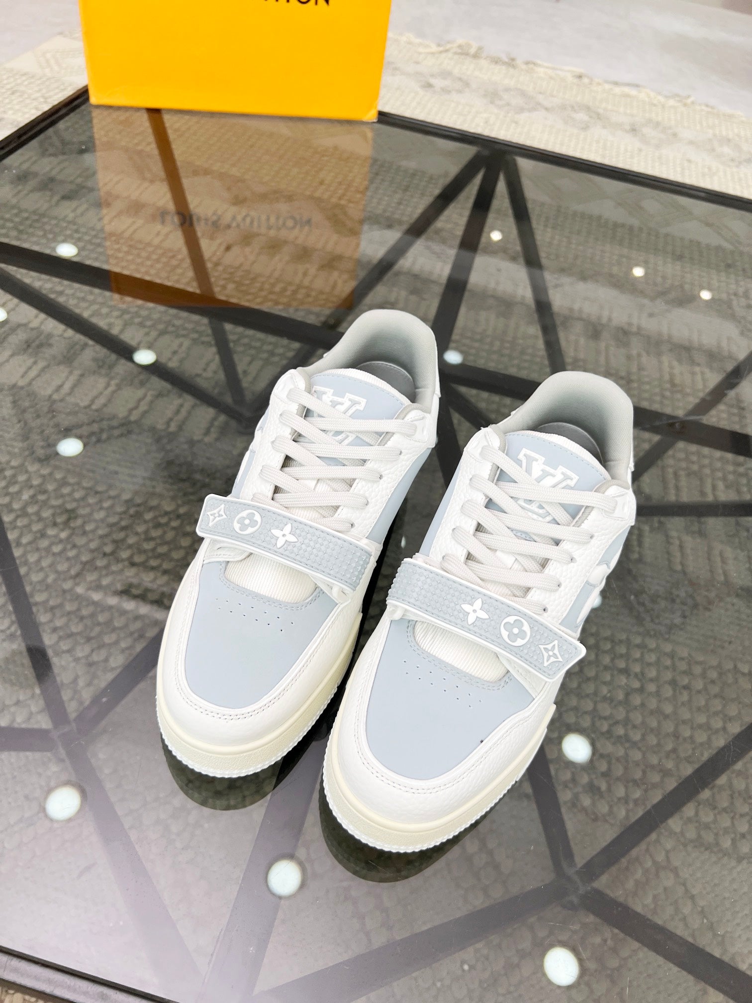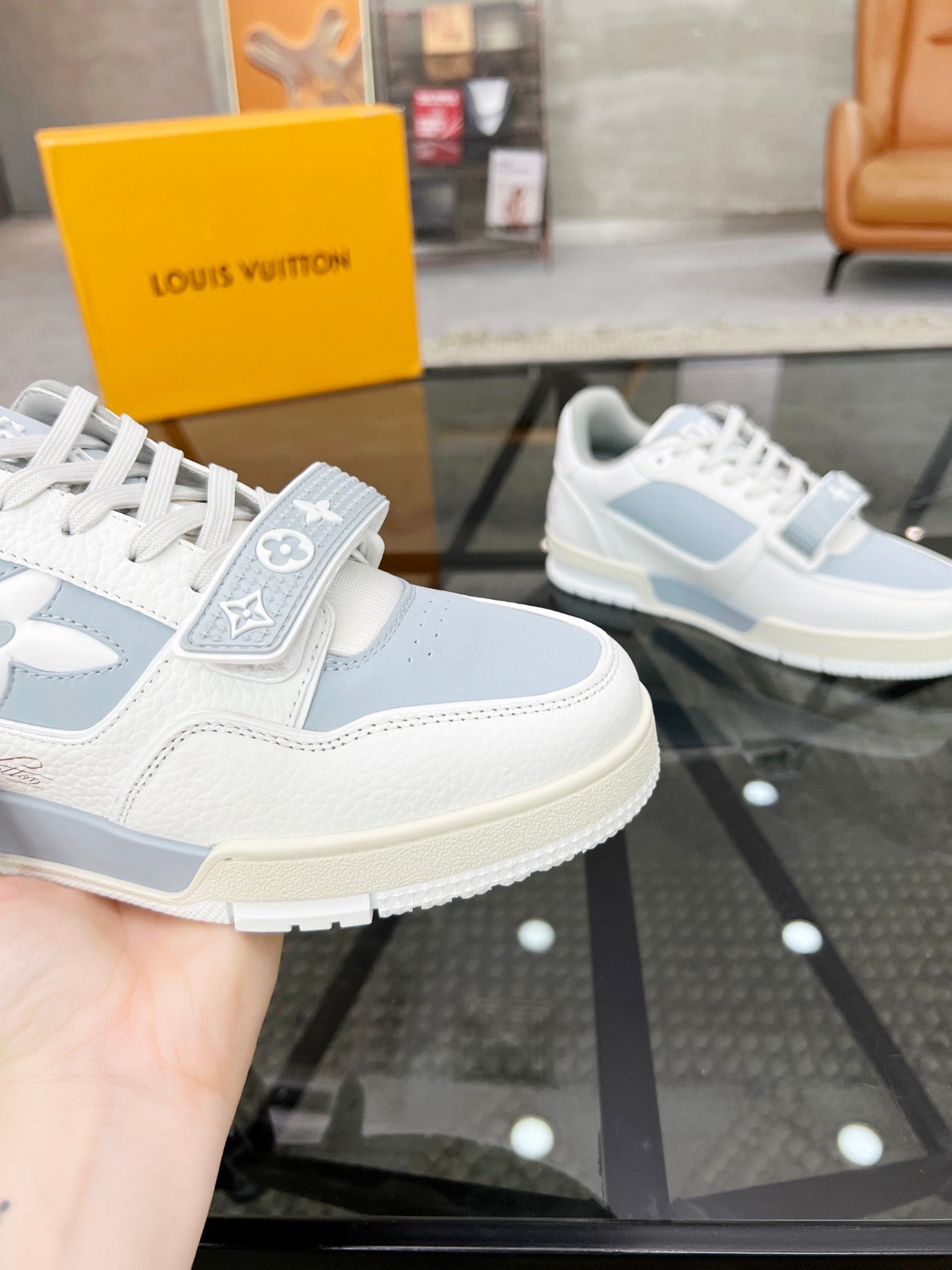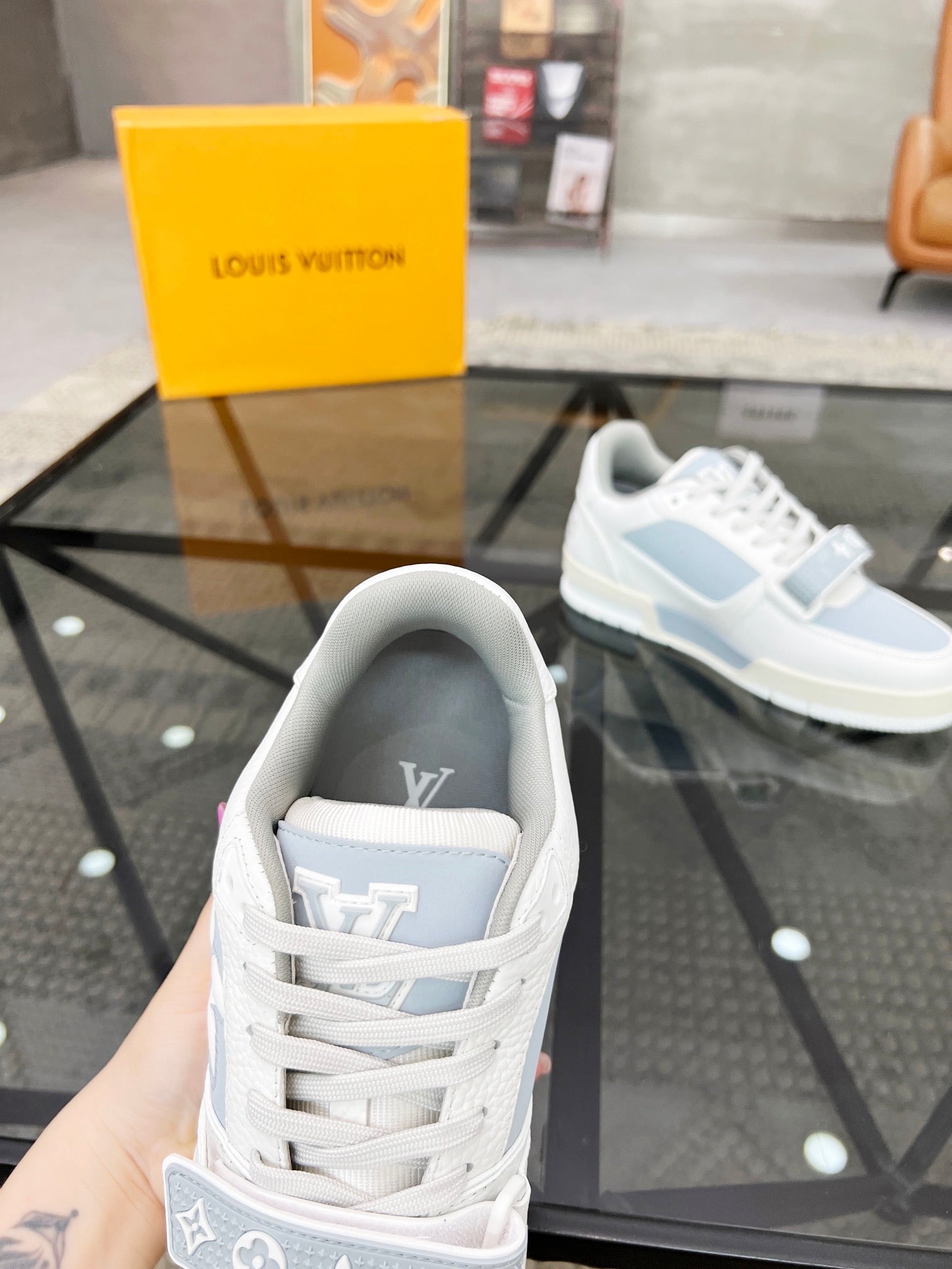 LV TRAINER SNEAKER WHITE CALFSKIN MIX LIGHT BLUE SUEDE