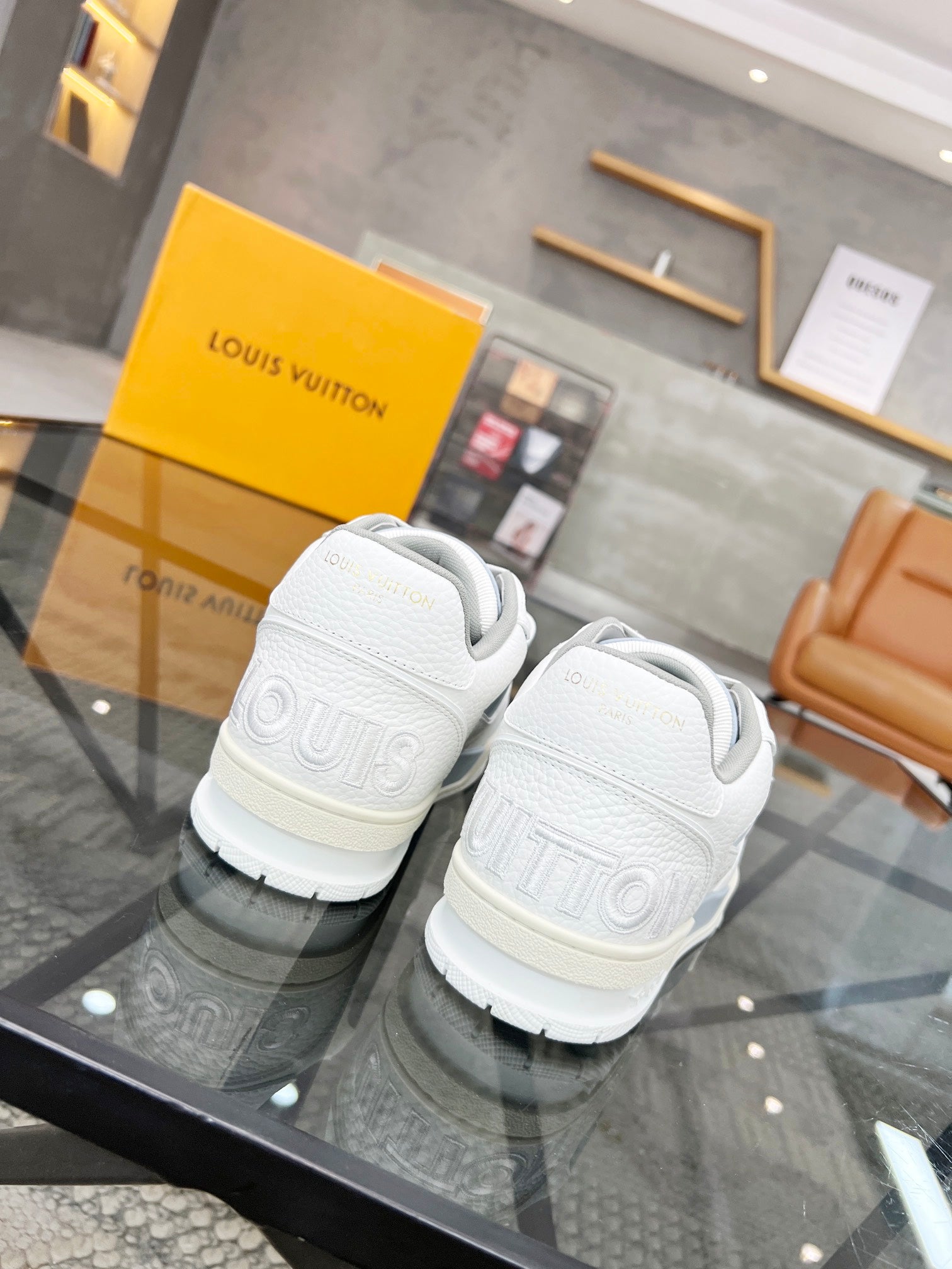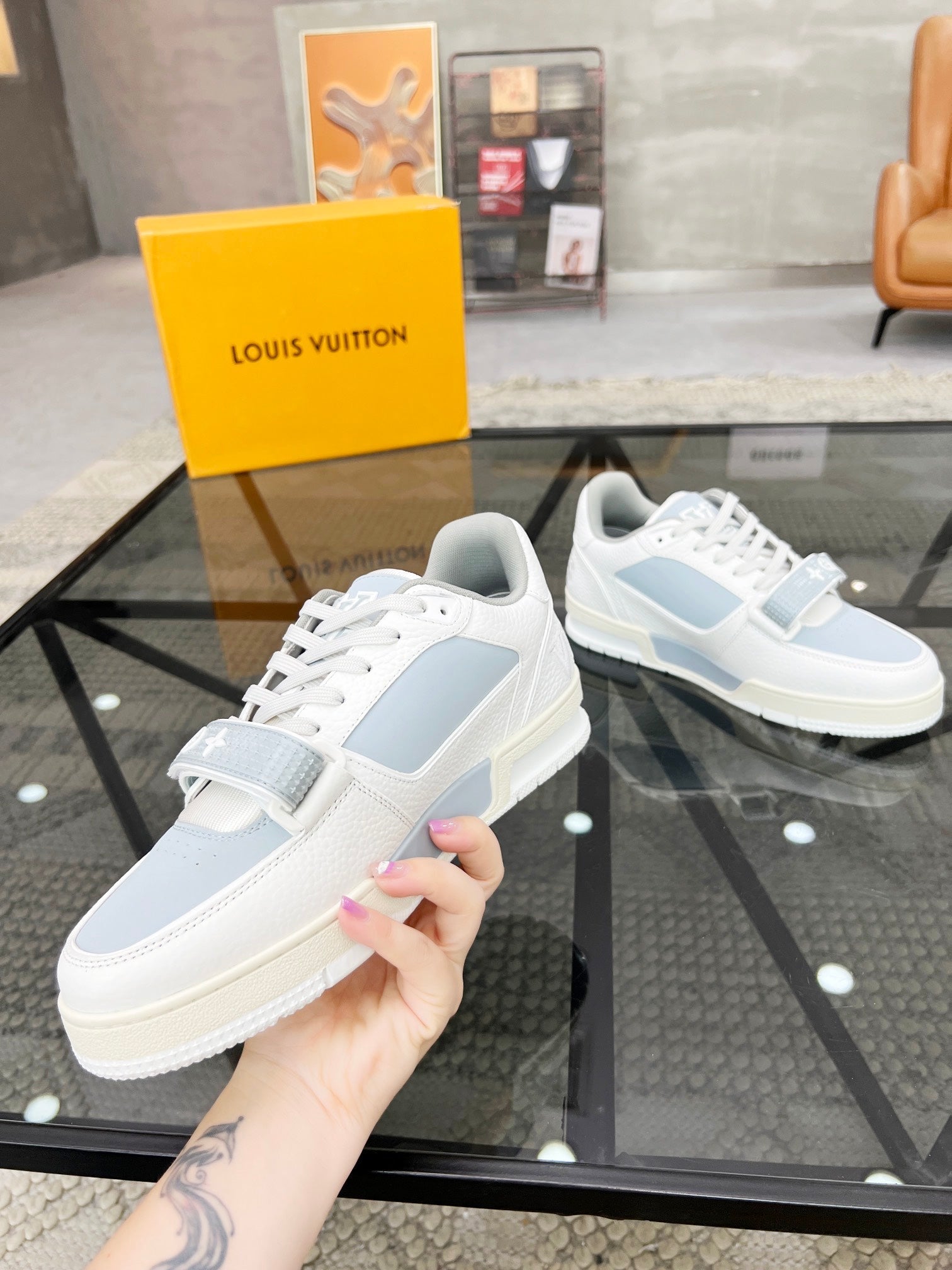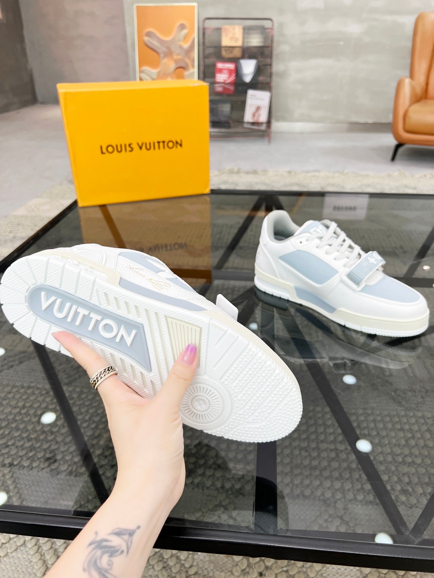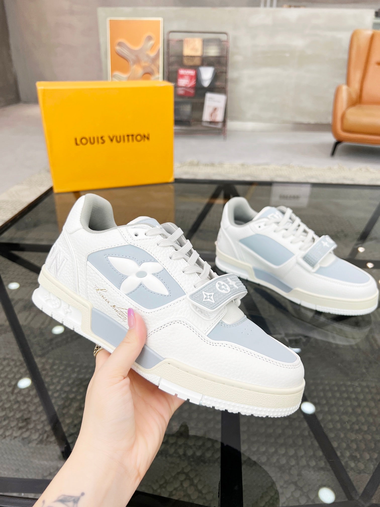 LV TRAINER SNEAKER WHITE CALFSKIN MIX LIGHT BLUE SUEDE