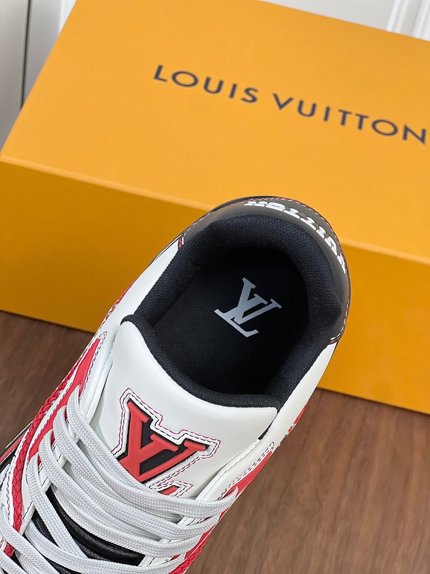 LV TRAINER WHITE MIX BLACK AND RED MONOGRAM CALFSKIN