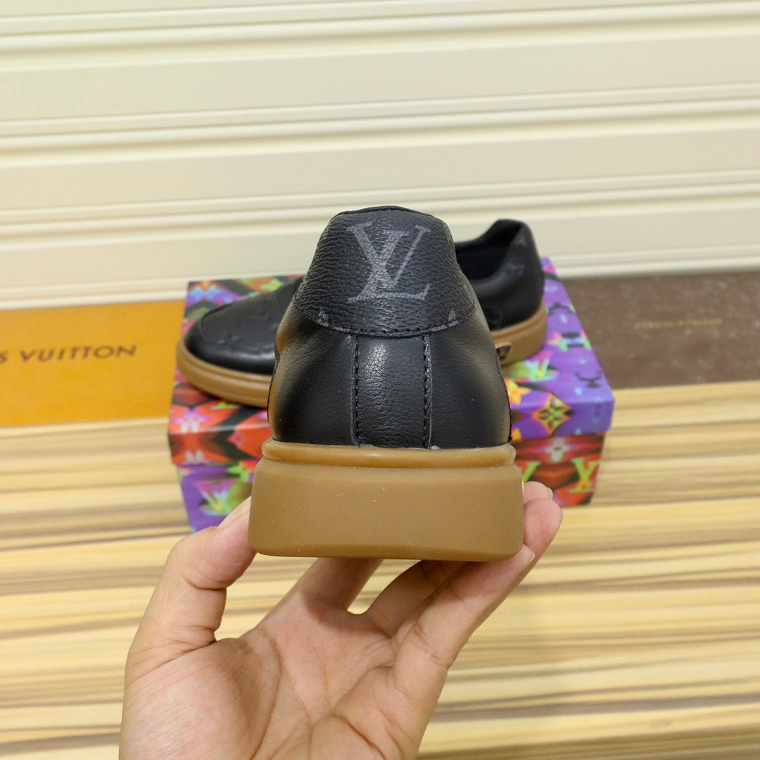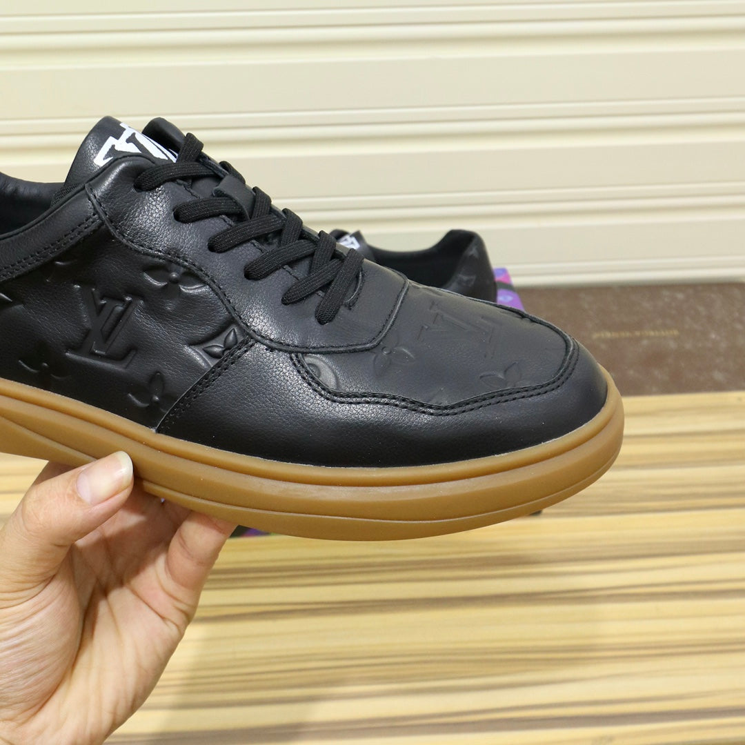 LV TRAINERS IN BLACK CALFSKIN AND BROWN RUBBER