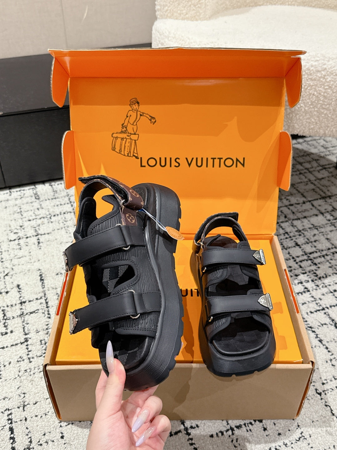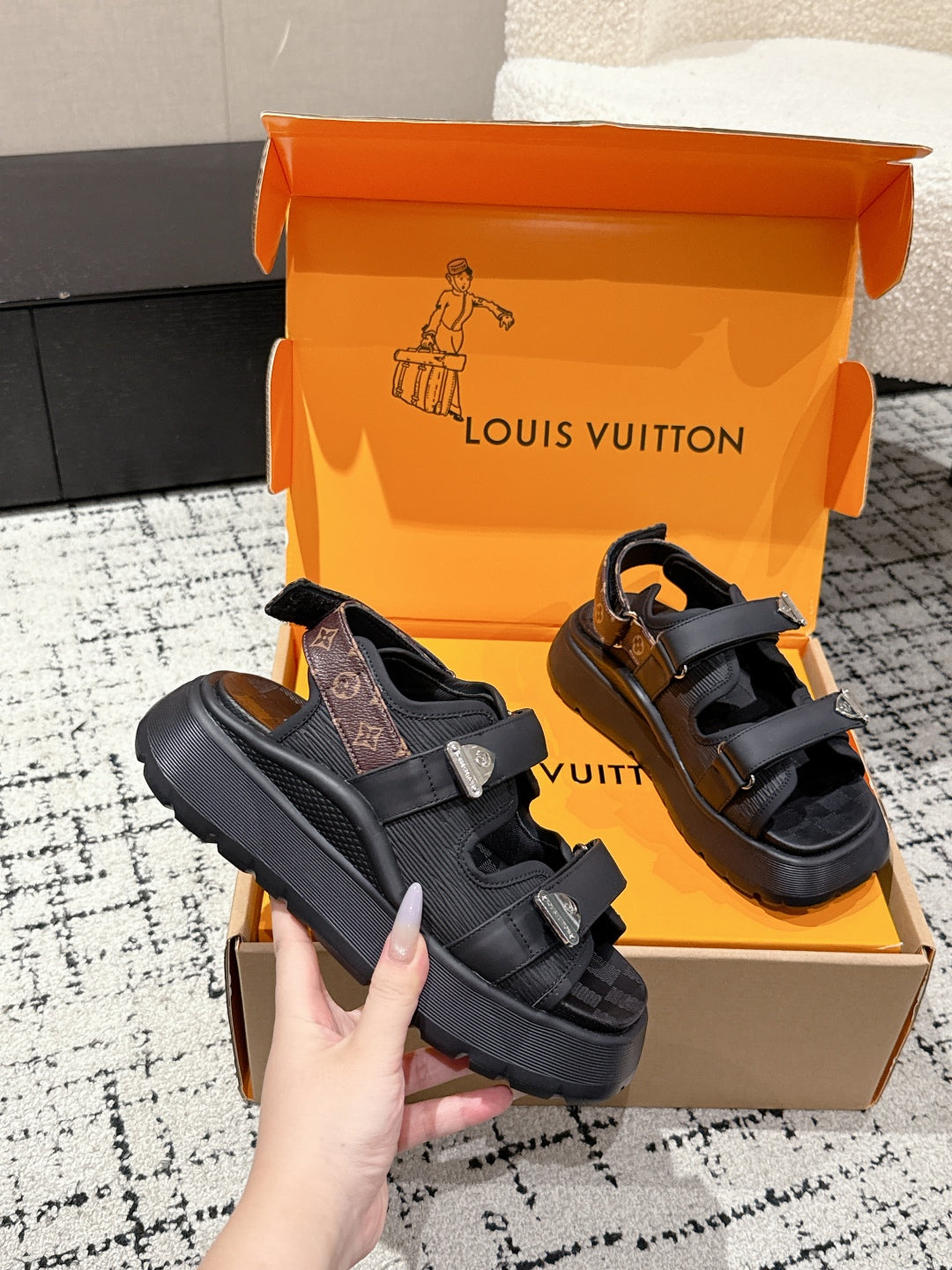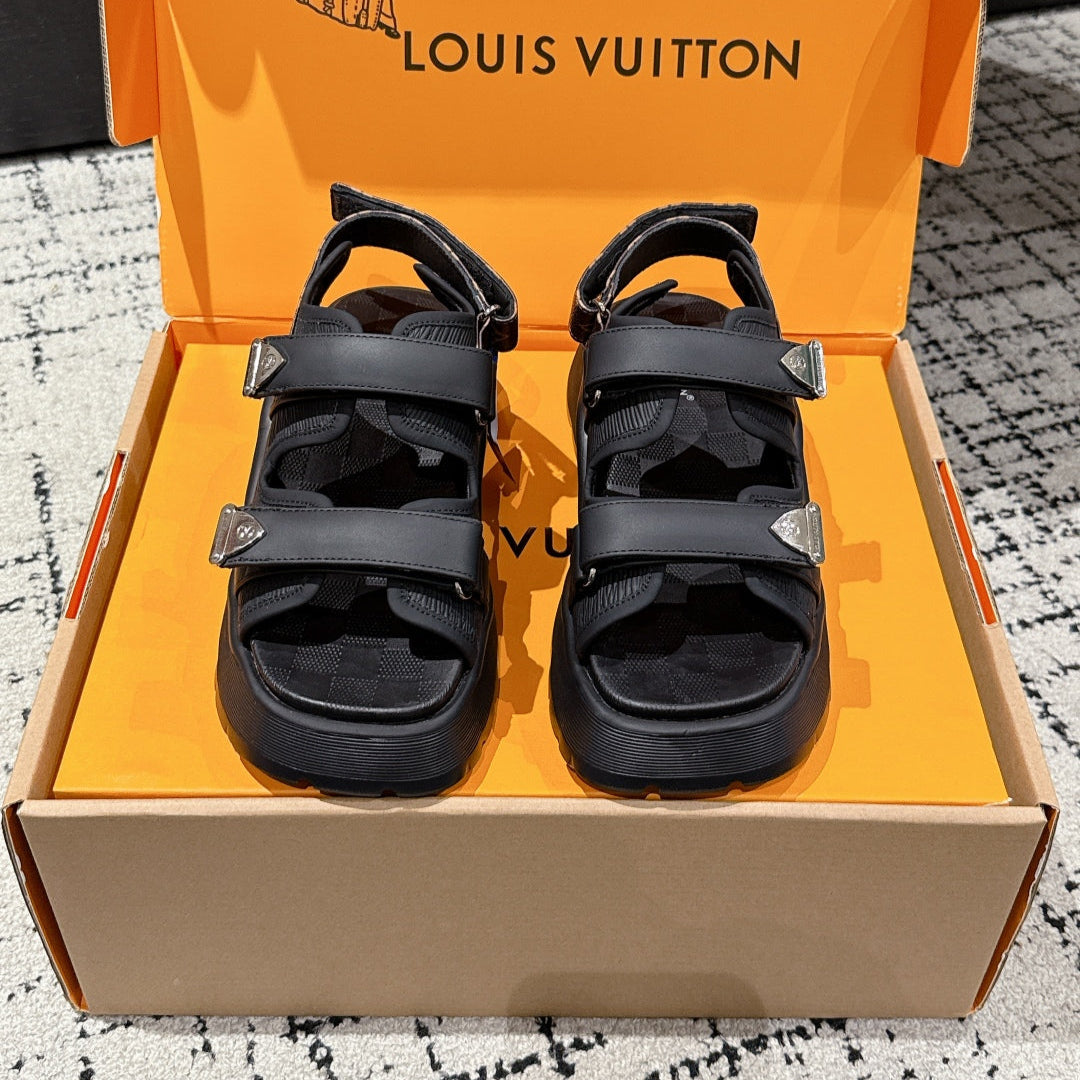 LV WEDGE SANDALS 25S 55 MM IN BLACK CALFSKIN
