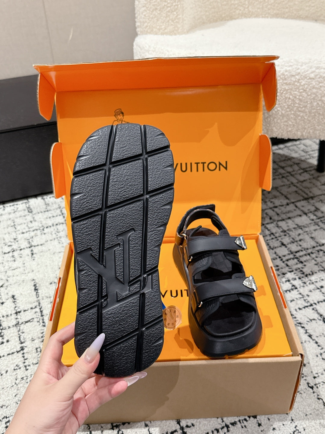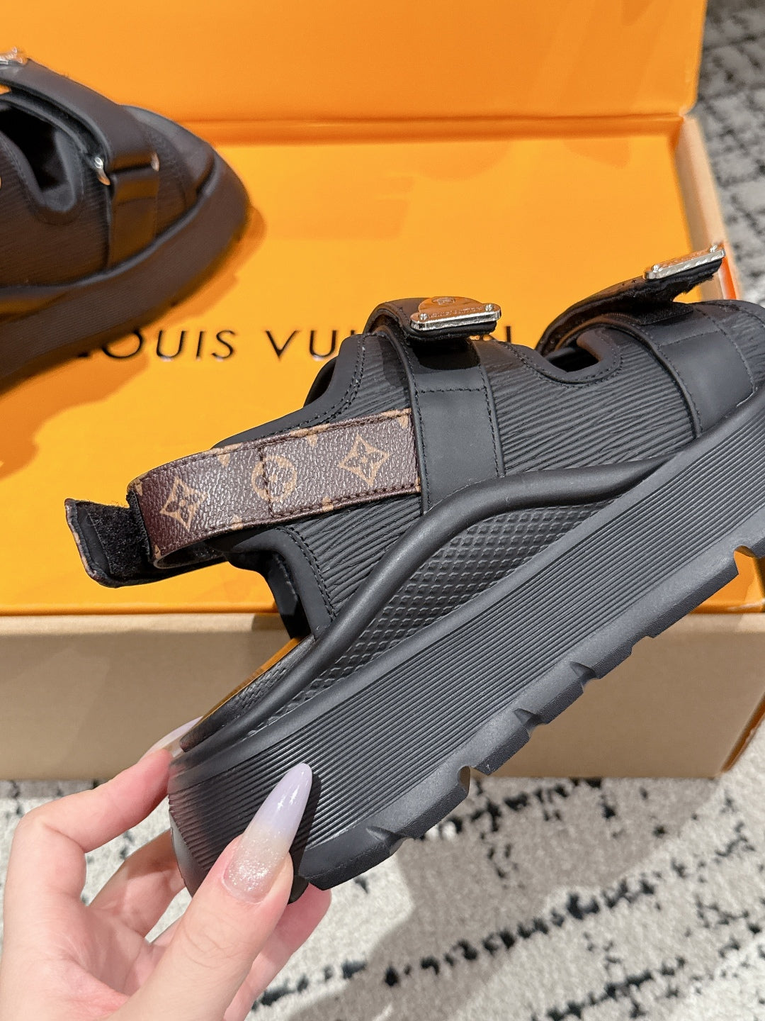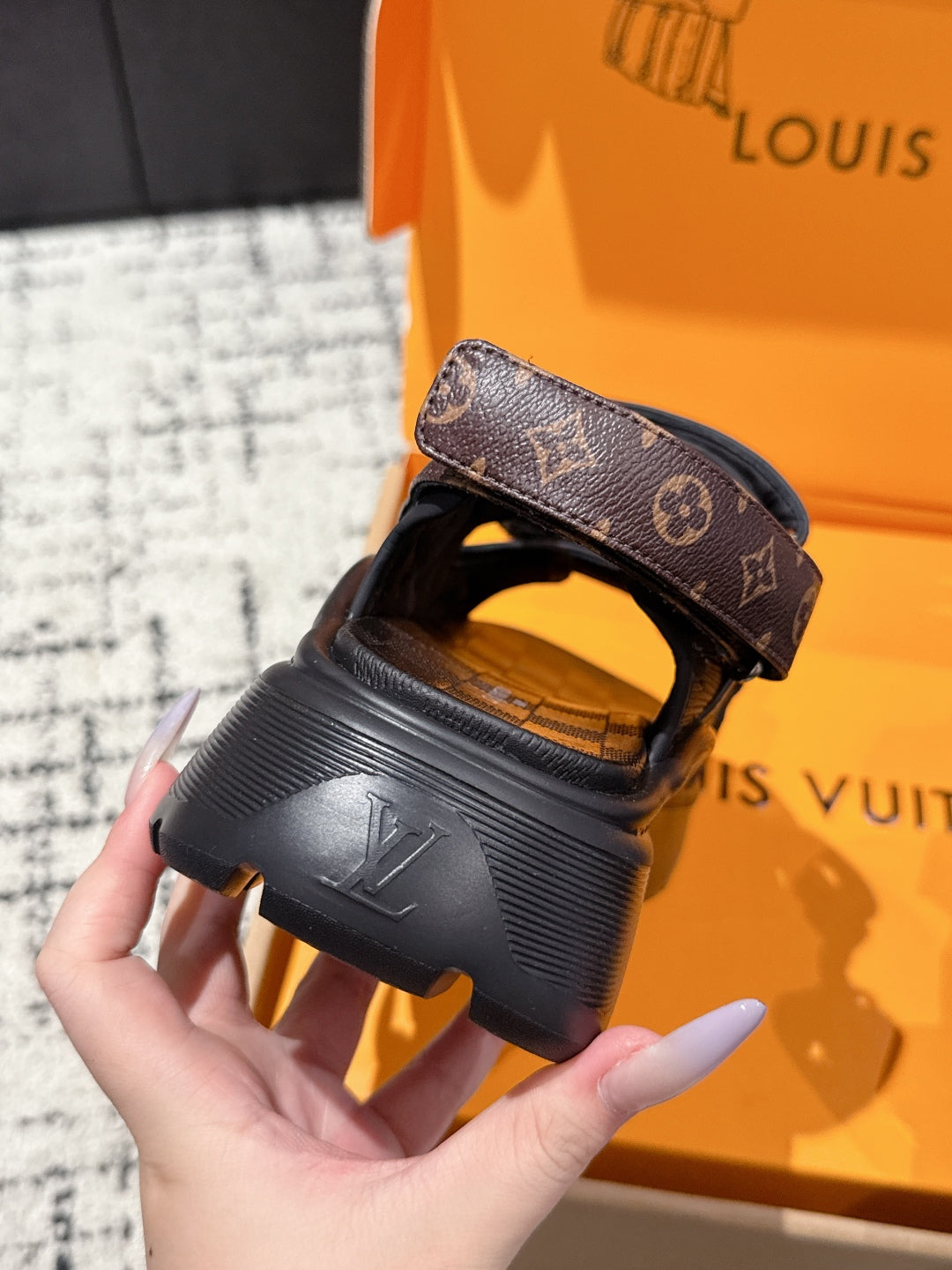 LV WEDGE SANDALS 25S 55 MM IN BLACK CALFSKIN