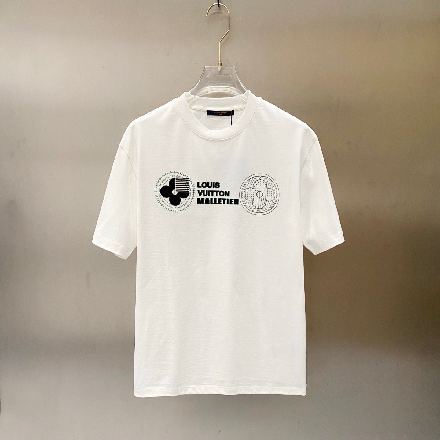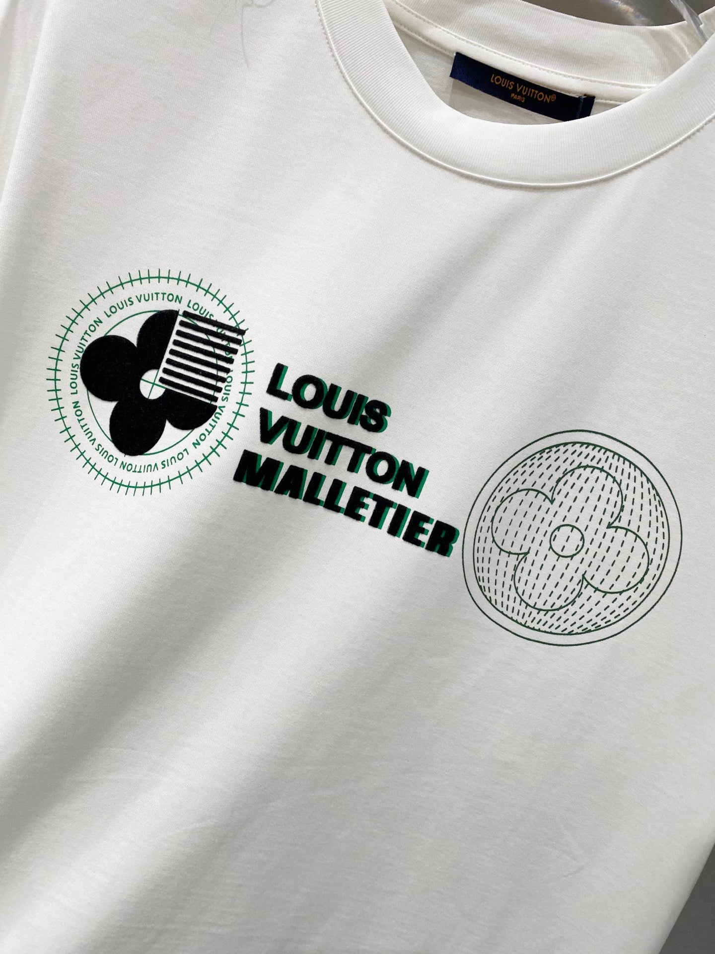 LV WHITE COTTON T-SHIRT GREEN LOGO PRINT 238843