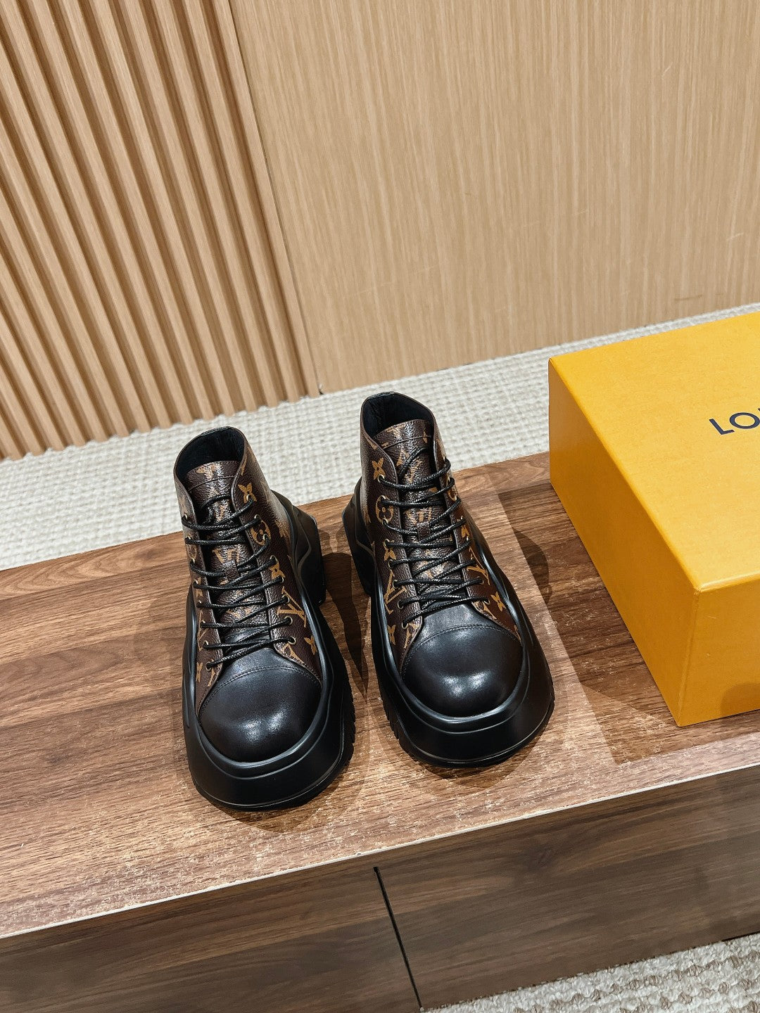 LV WOMEN CHELSEA BOOT IN BLACK MIX CHOCOLATE BROWN MONOGRAM CALFSKIN